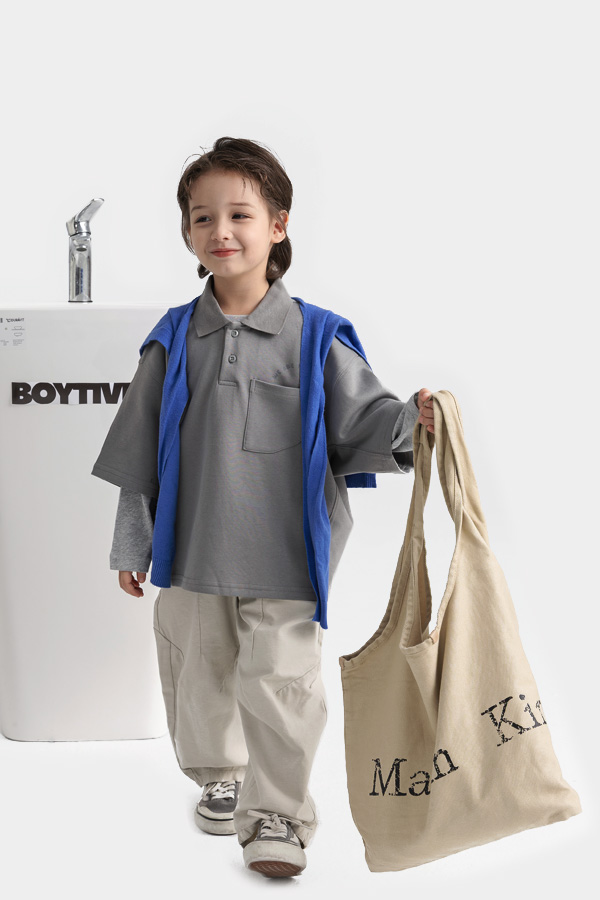 단추 여밈의 카라티셔츠로, 작은 포켓이 담백한 실용성을 더합니다.
