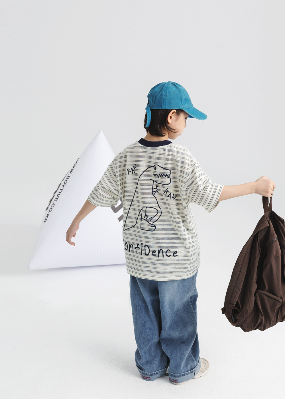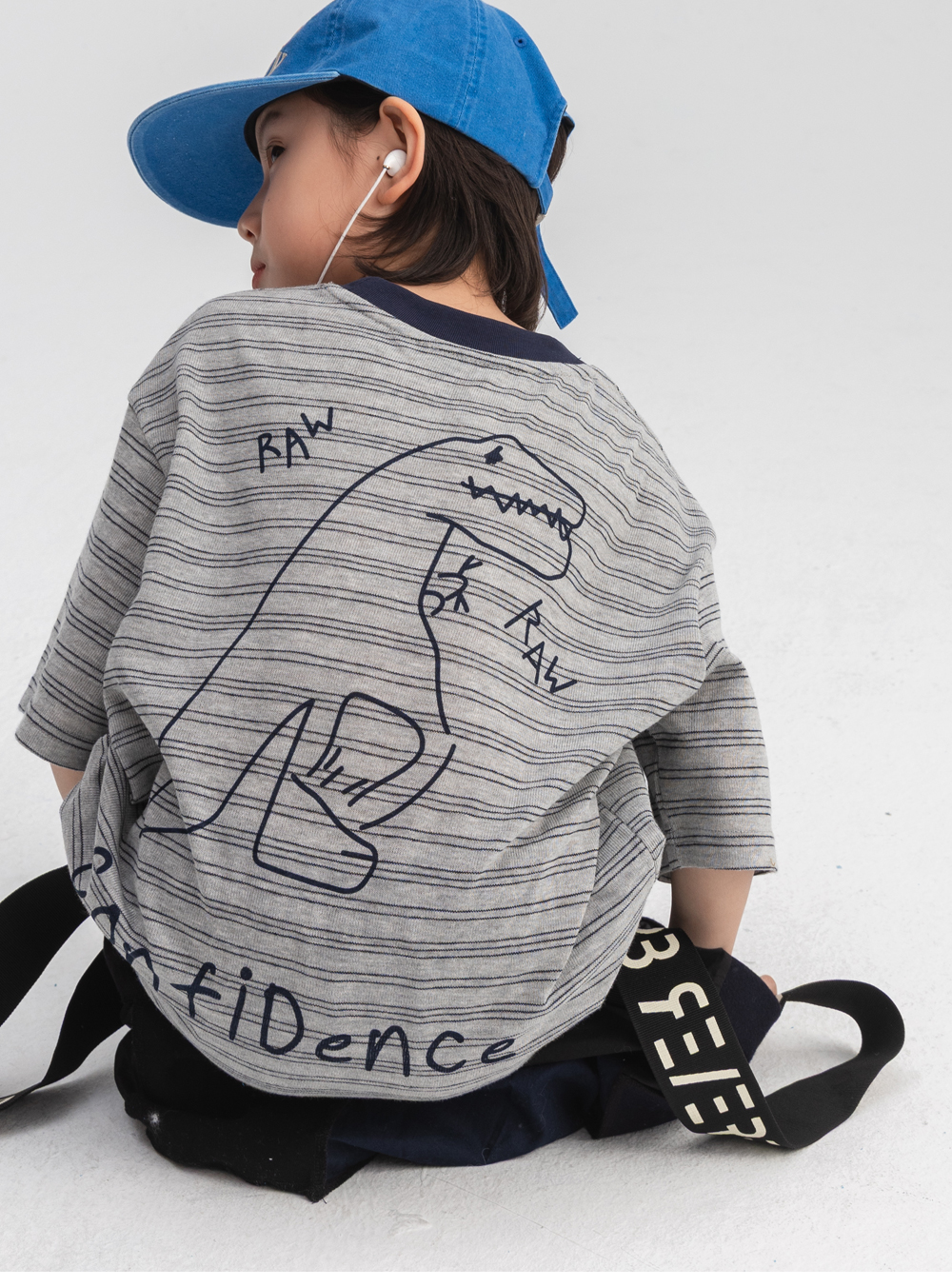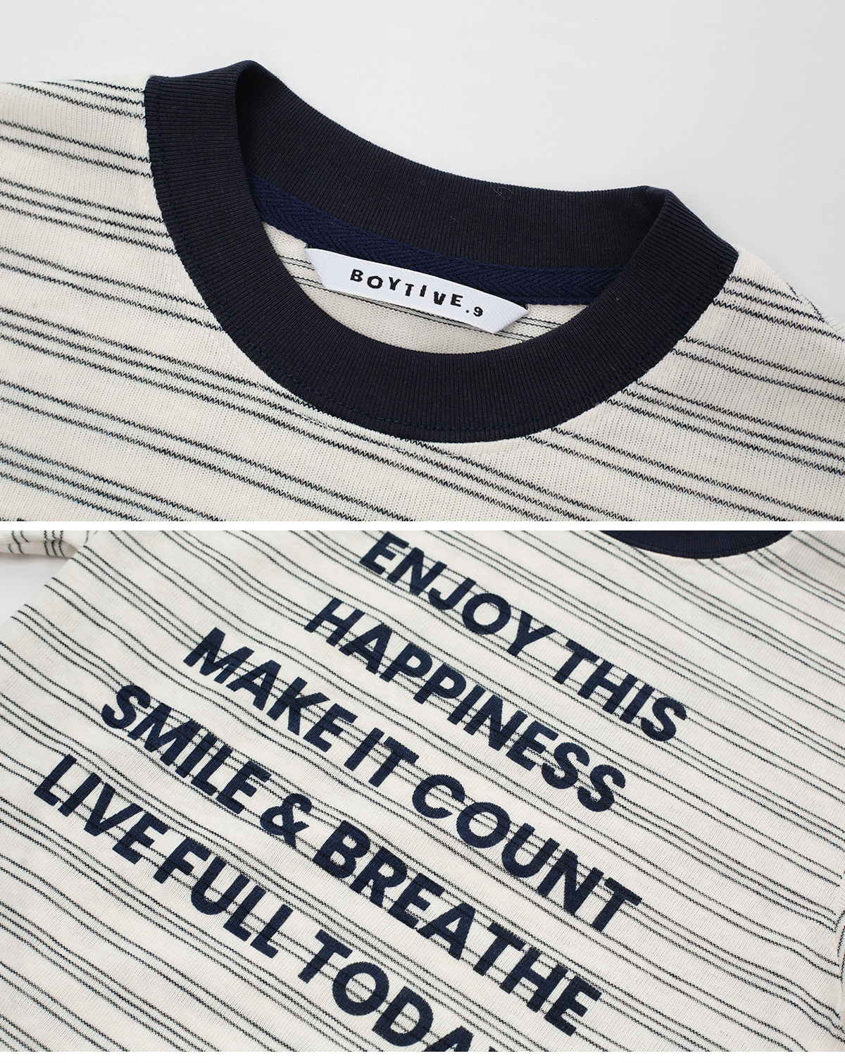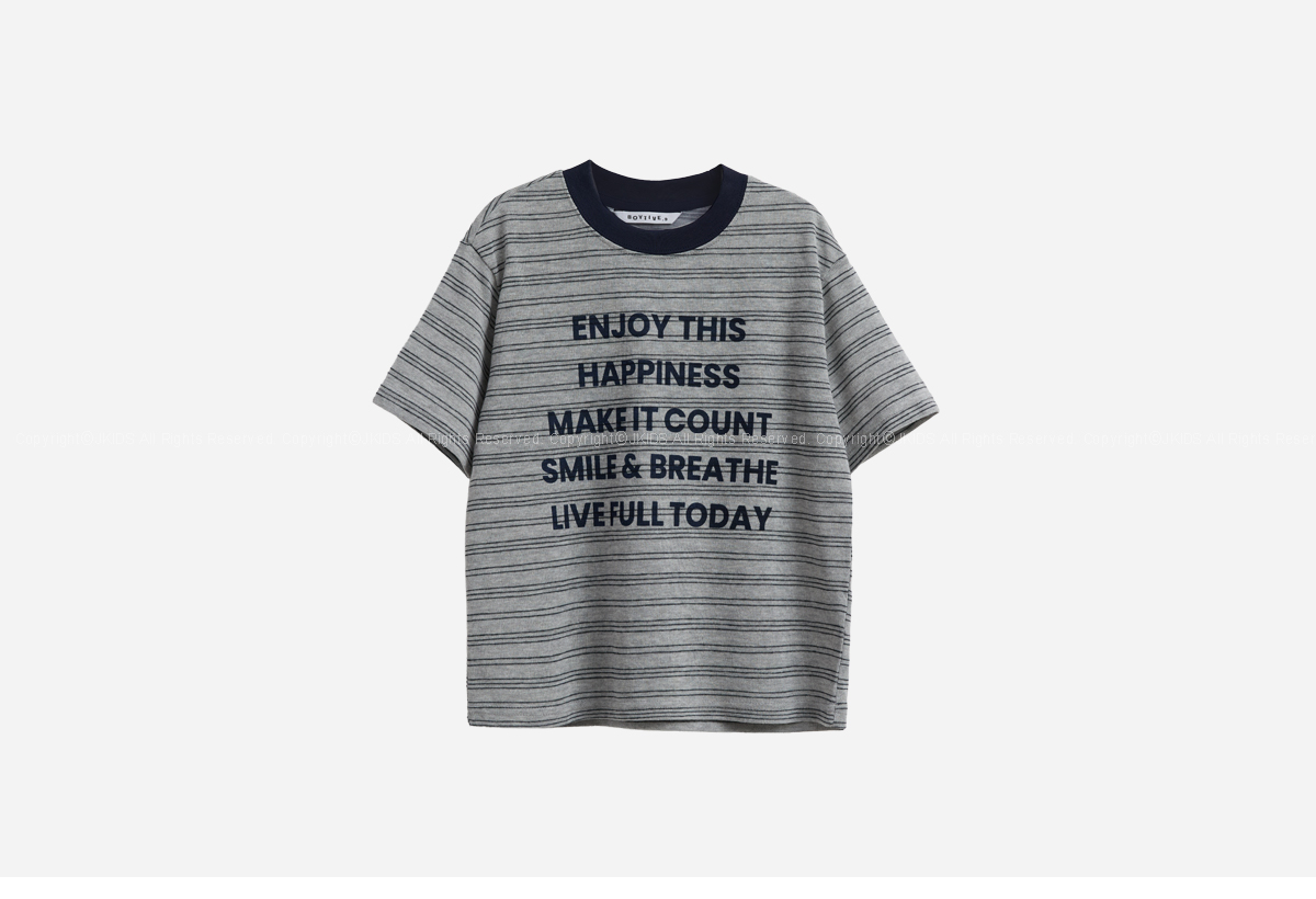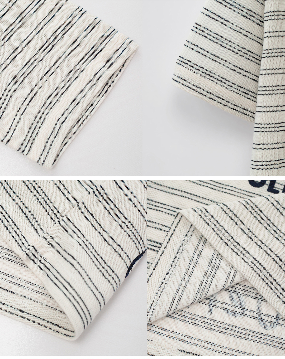 스트라이프 패턴을 더해 감각적인 분위기를 연출해준 티셔츠입니다.