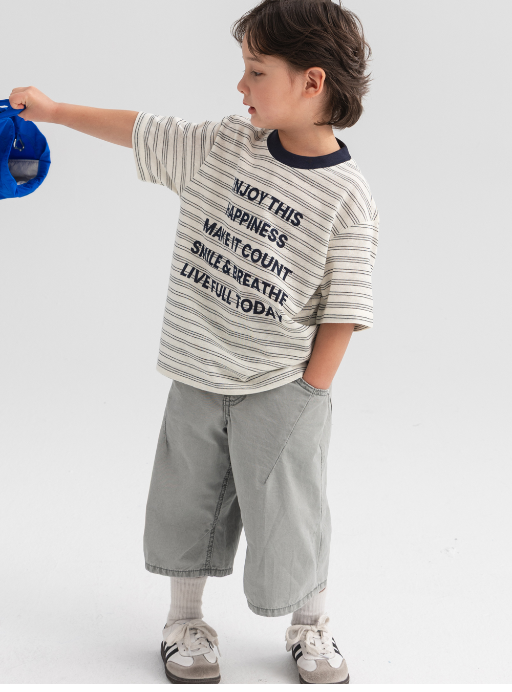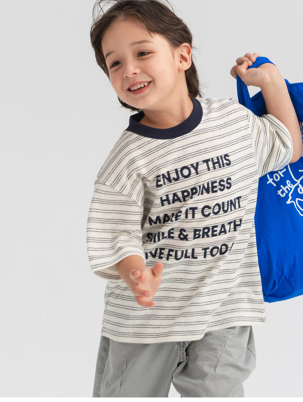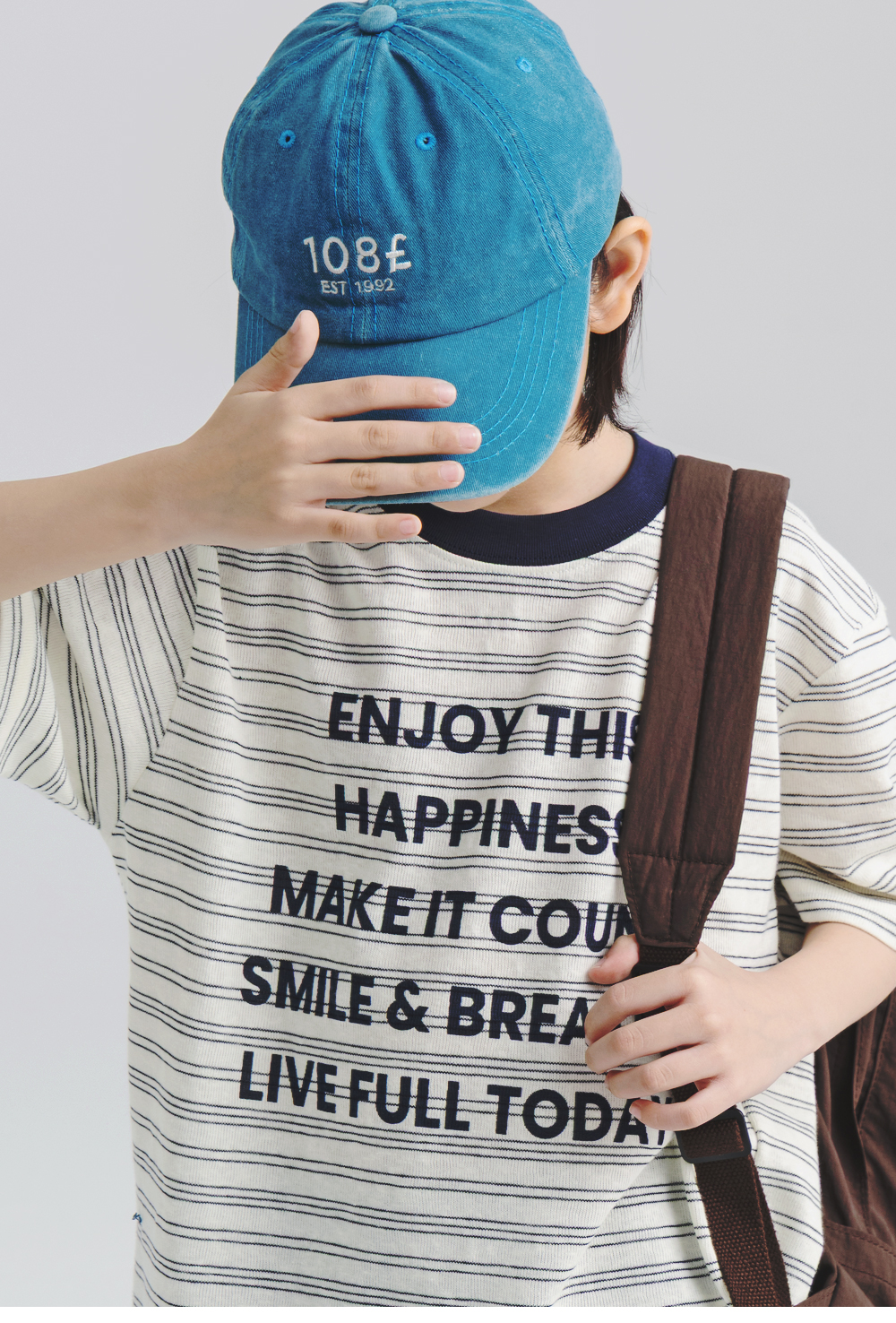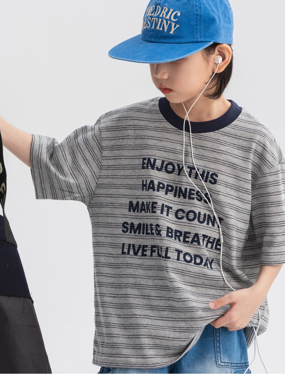 스트라이프 패턴을 더해 감각적인 분위기를 연출해준 티셔츠입니다.