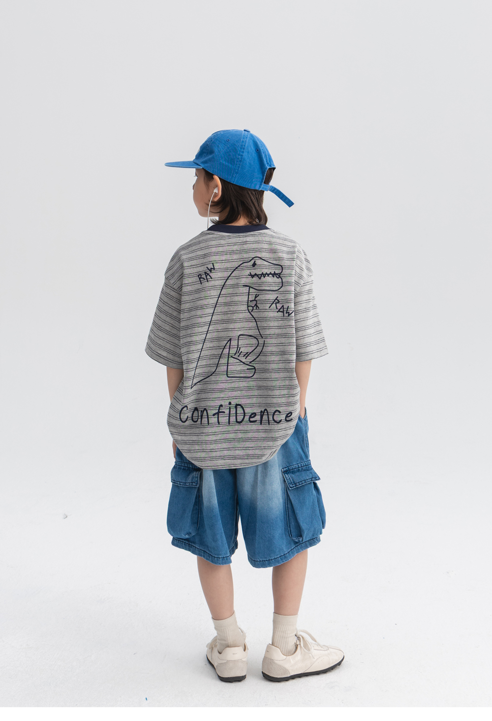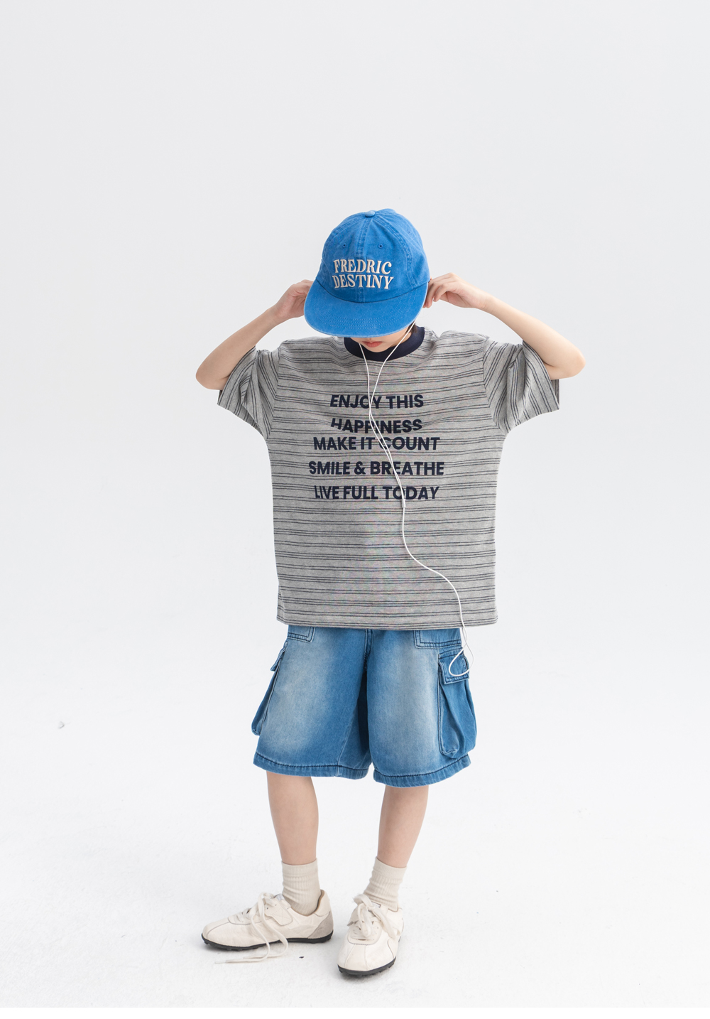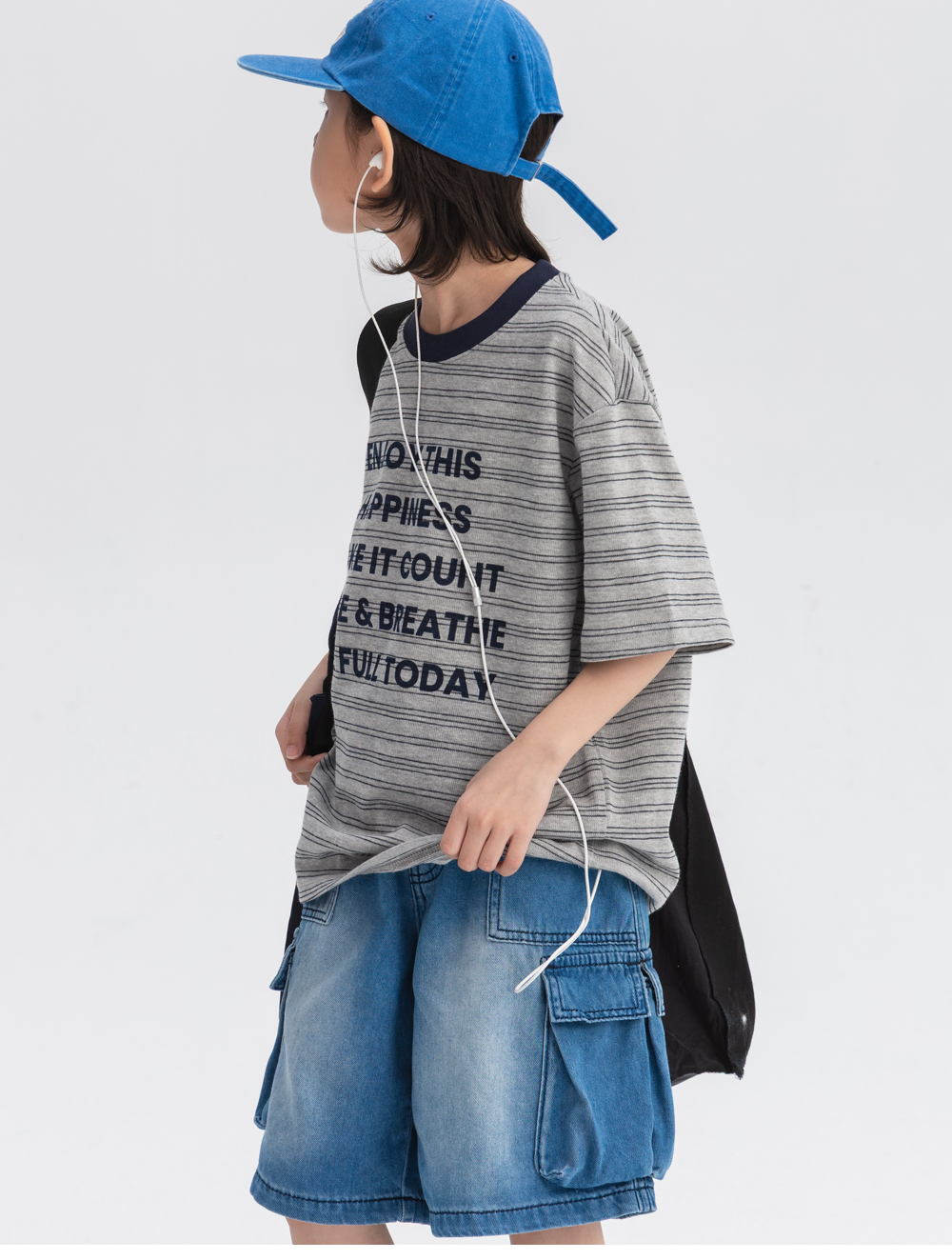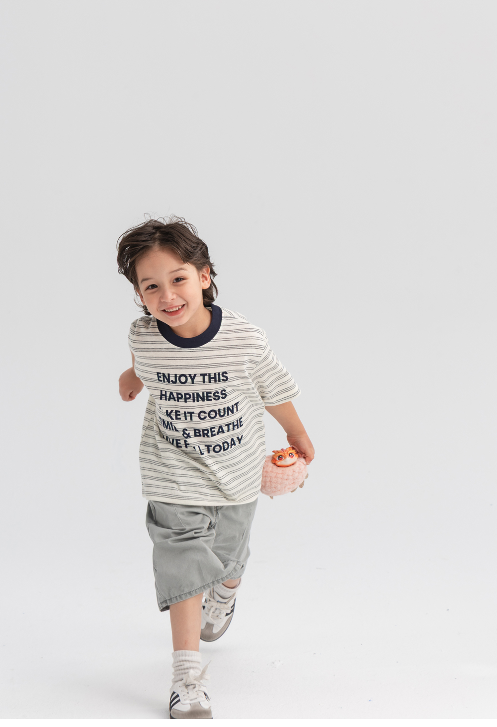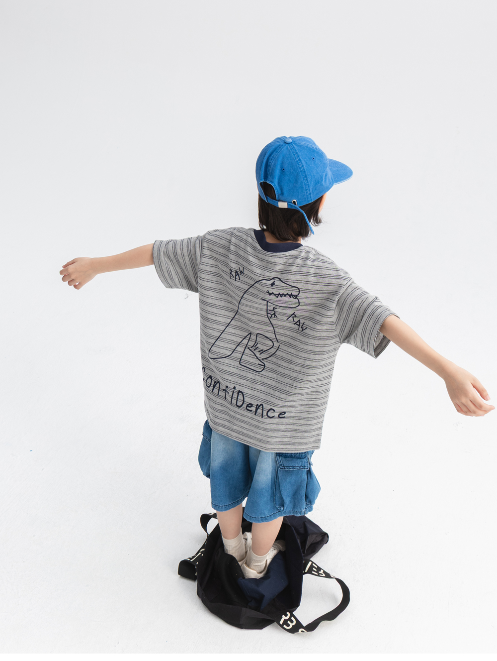 스트라이프 패턴을 더해 감각적인 분위기를 연출해준 티셔츠입니다.