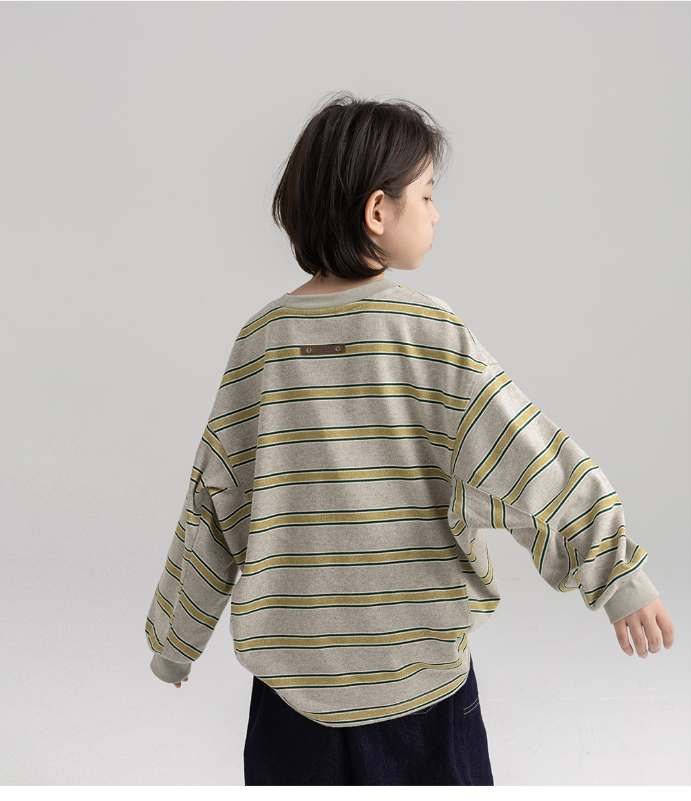 이중 스트라이프가 담백하게 더해진 긴팔 티셔츠입니다