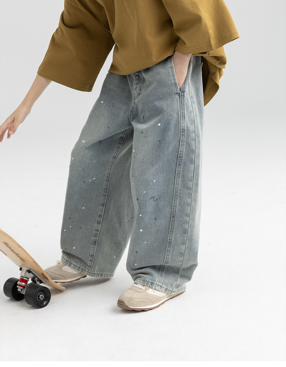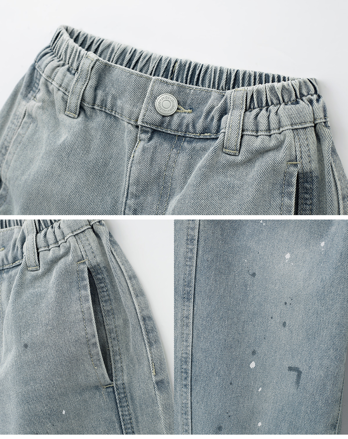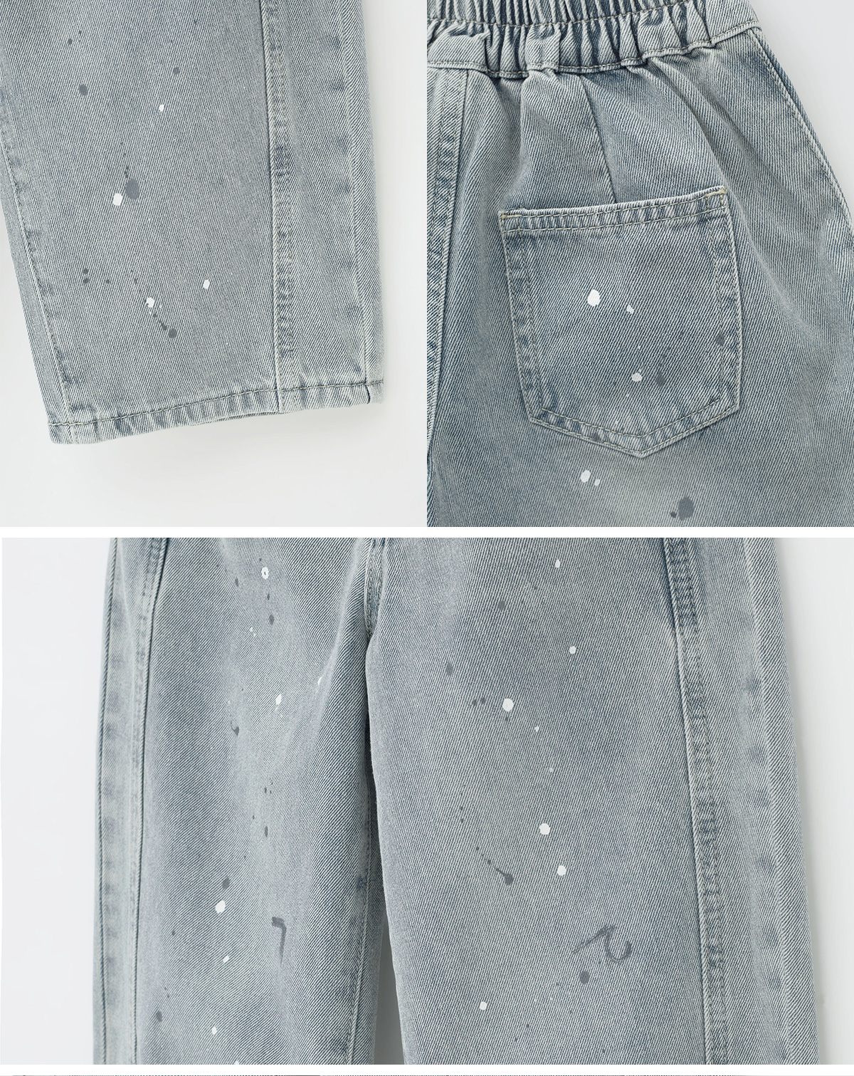 탄탄한 데님 원단에 잔잔한 페인트 포인트를 더한