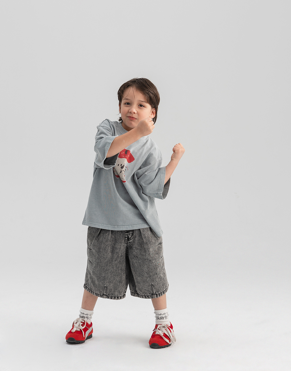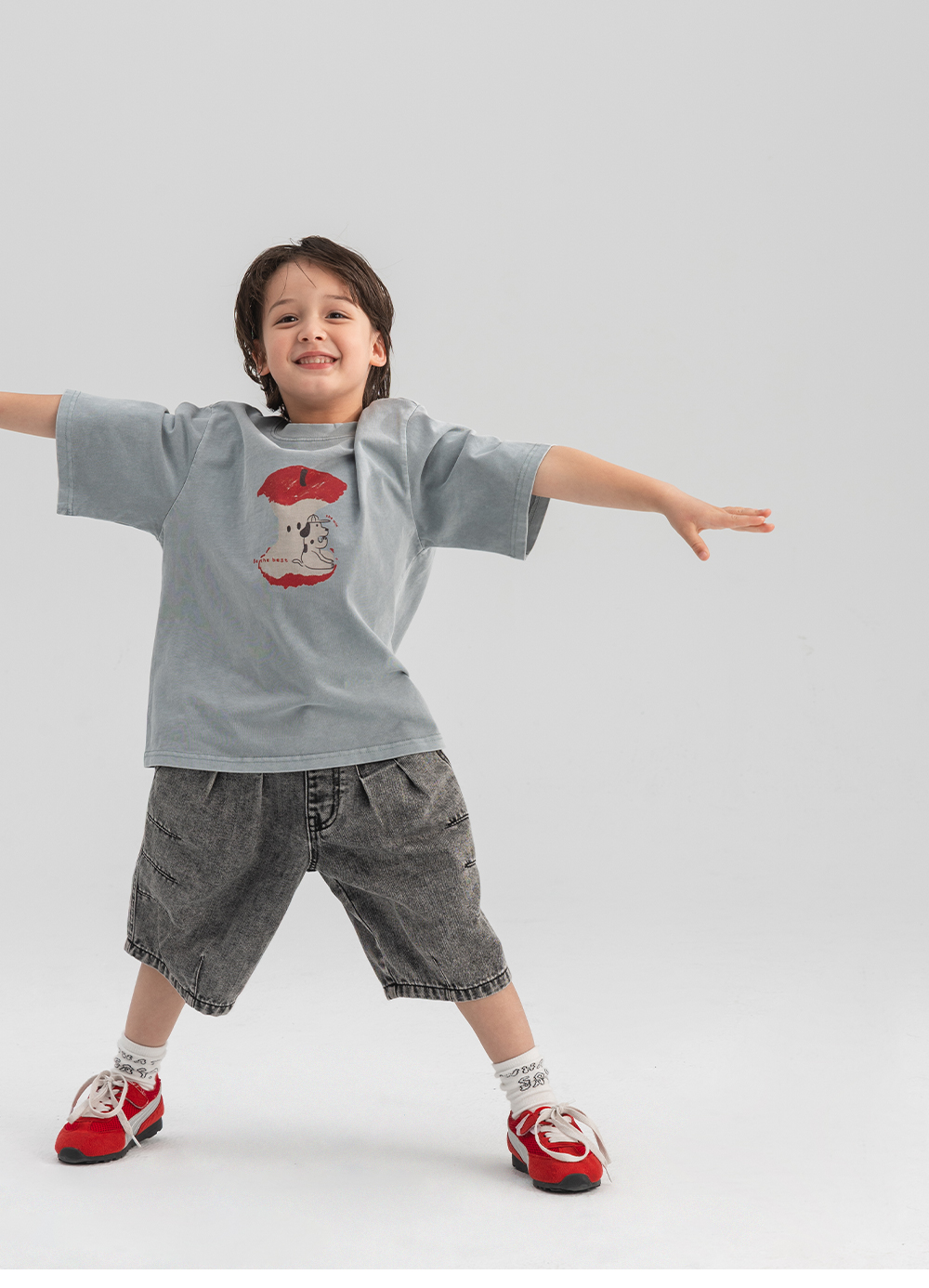 워싱감이 느껴지는 소재에 위트 있는 그래픽을 더한 티셔츠입니다.