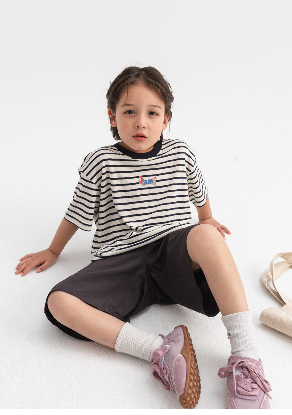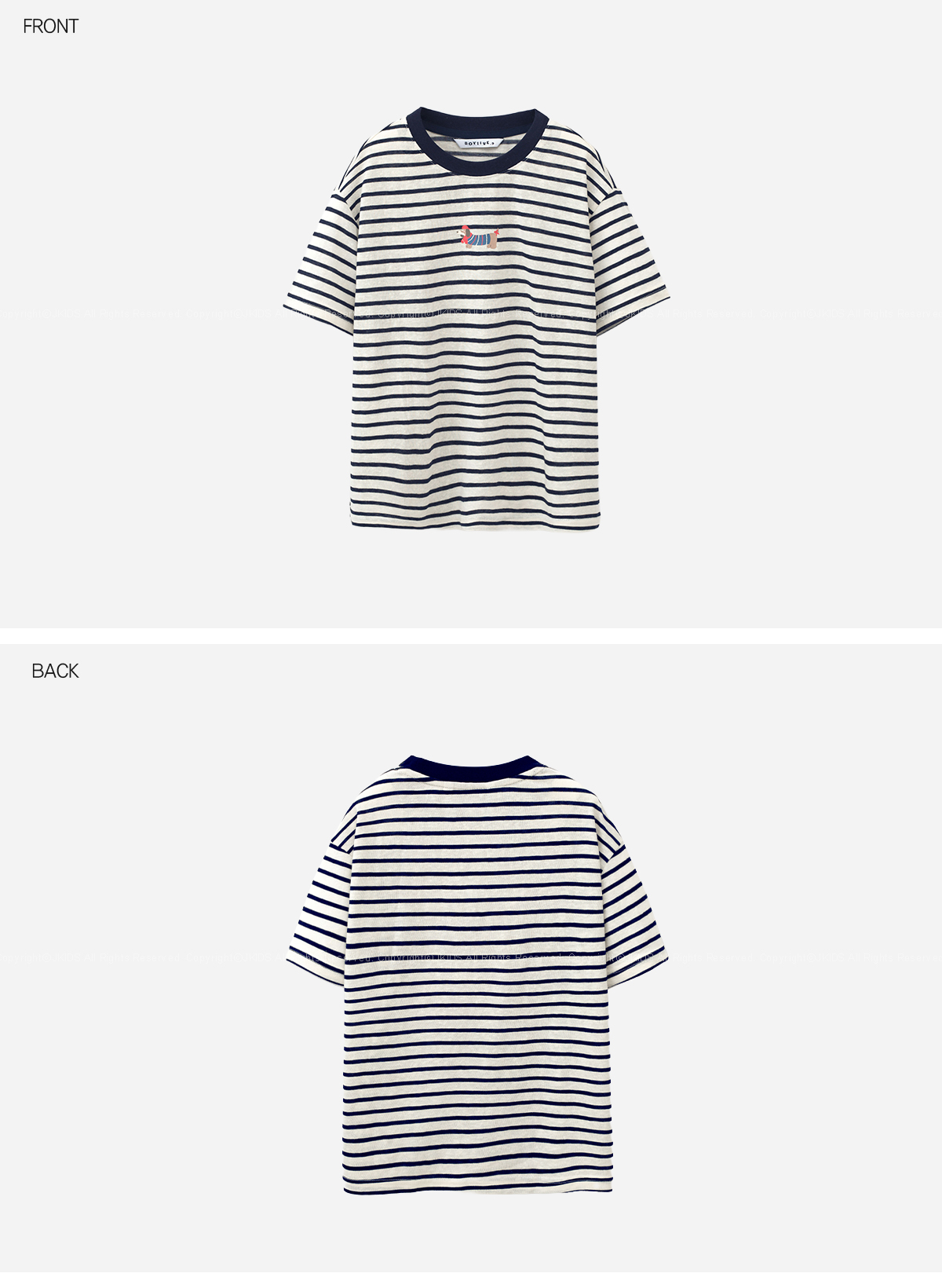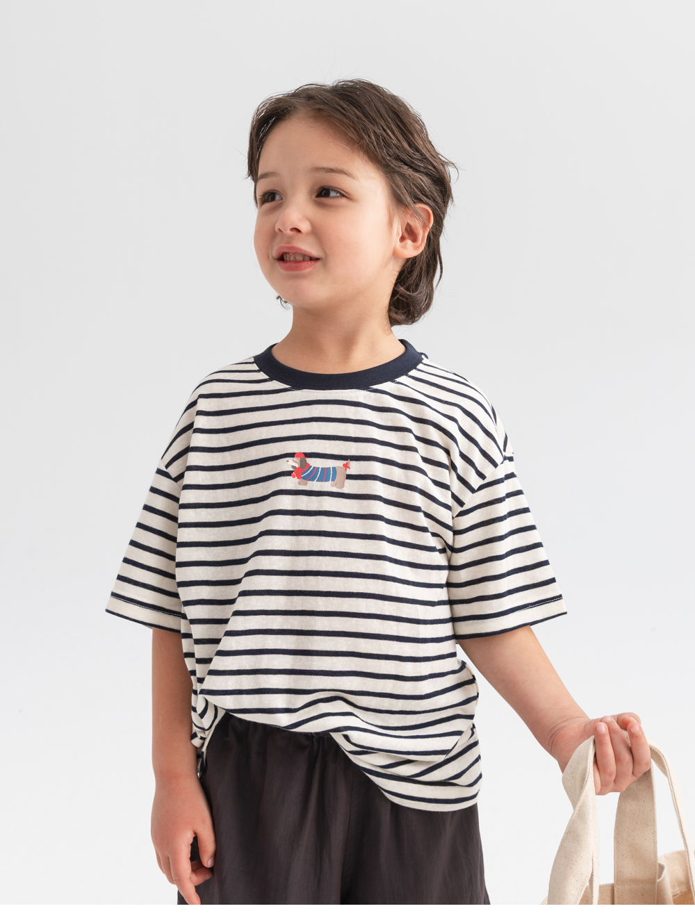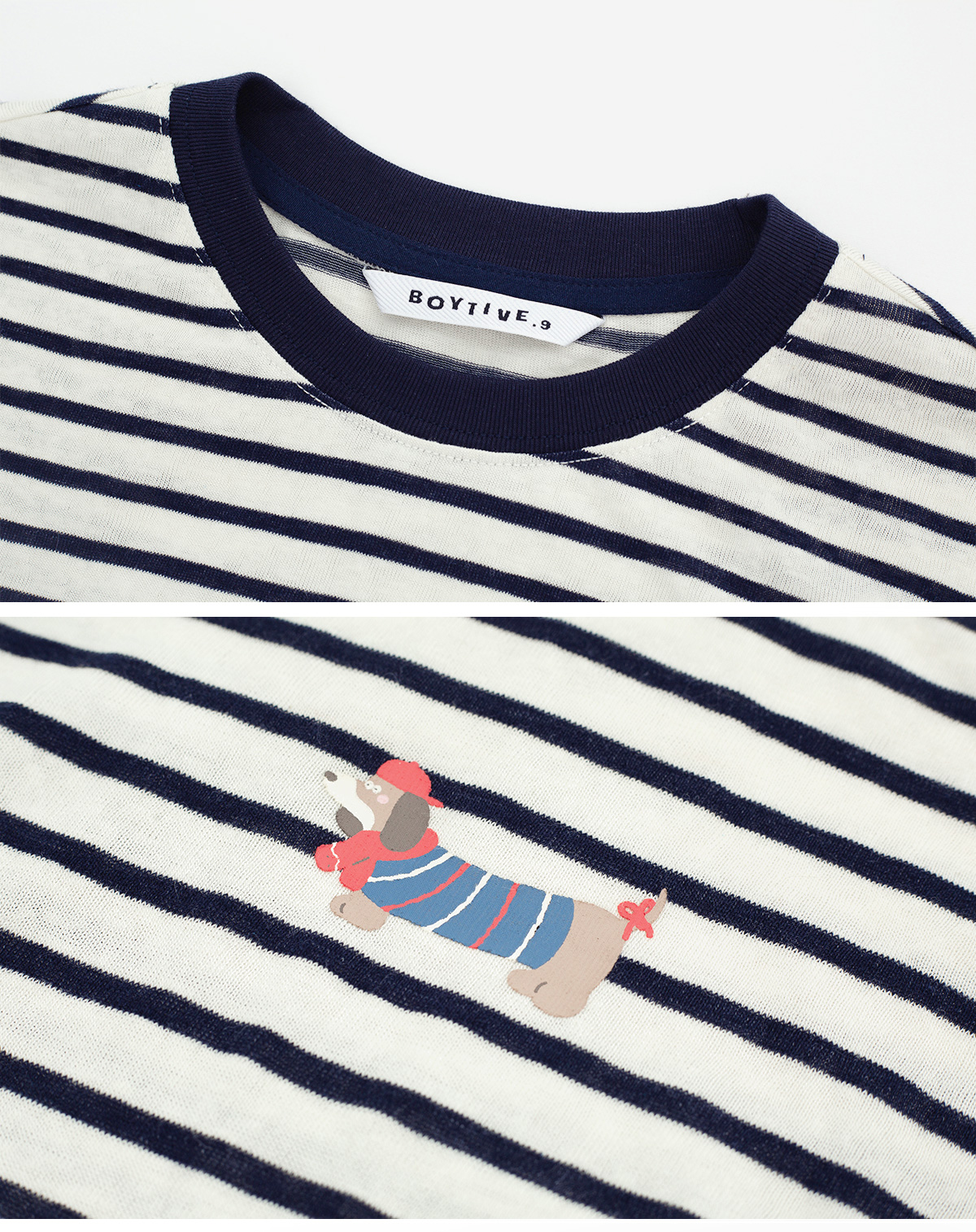 클래식한 스트라이프 패턴에 귀여운 그래픽을 더한 티셔츠입니다.
