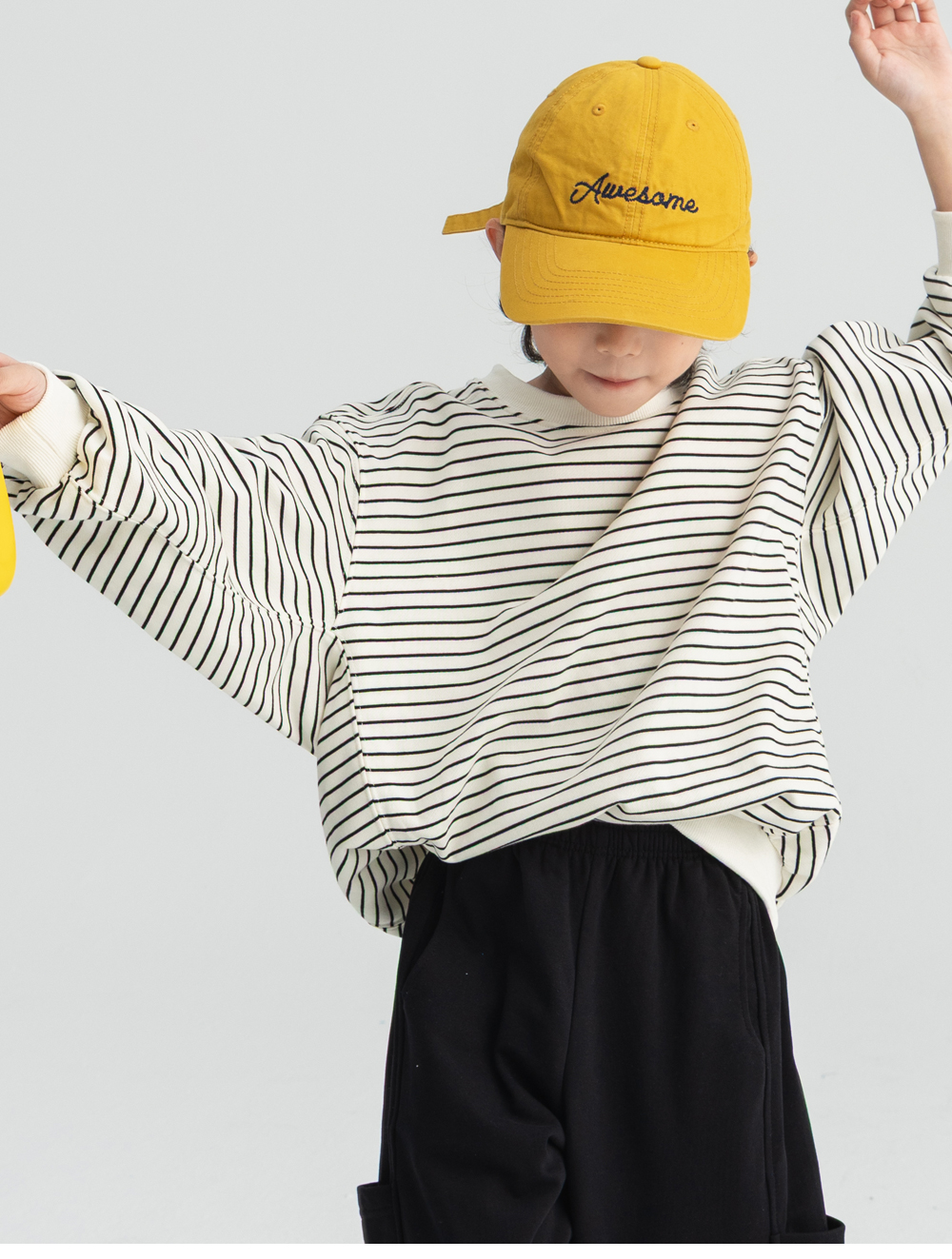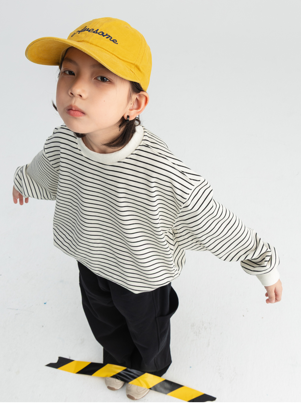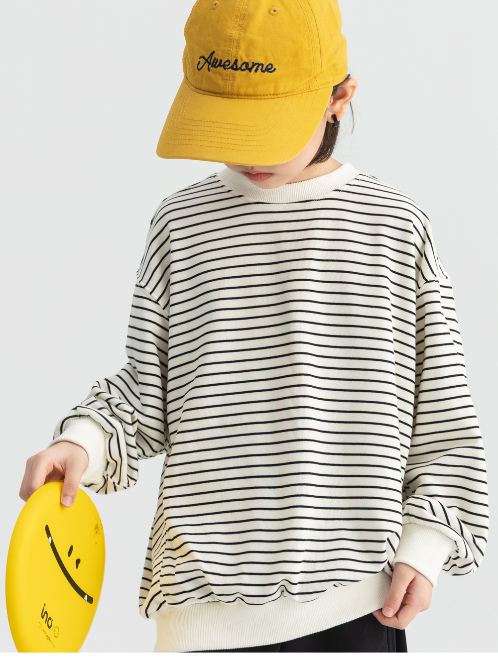 감각적인 스트라이프 패턴을 사용해 트랜디한 맨투맨입니다.