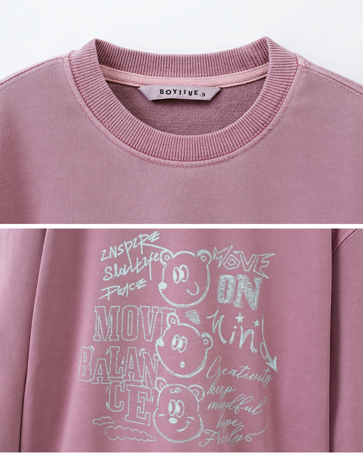 사랑스러운 컬러에 위트 있는 그래픽이 더해진 맨투맨입니다.