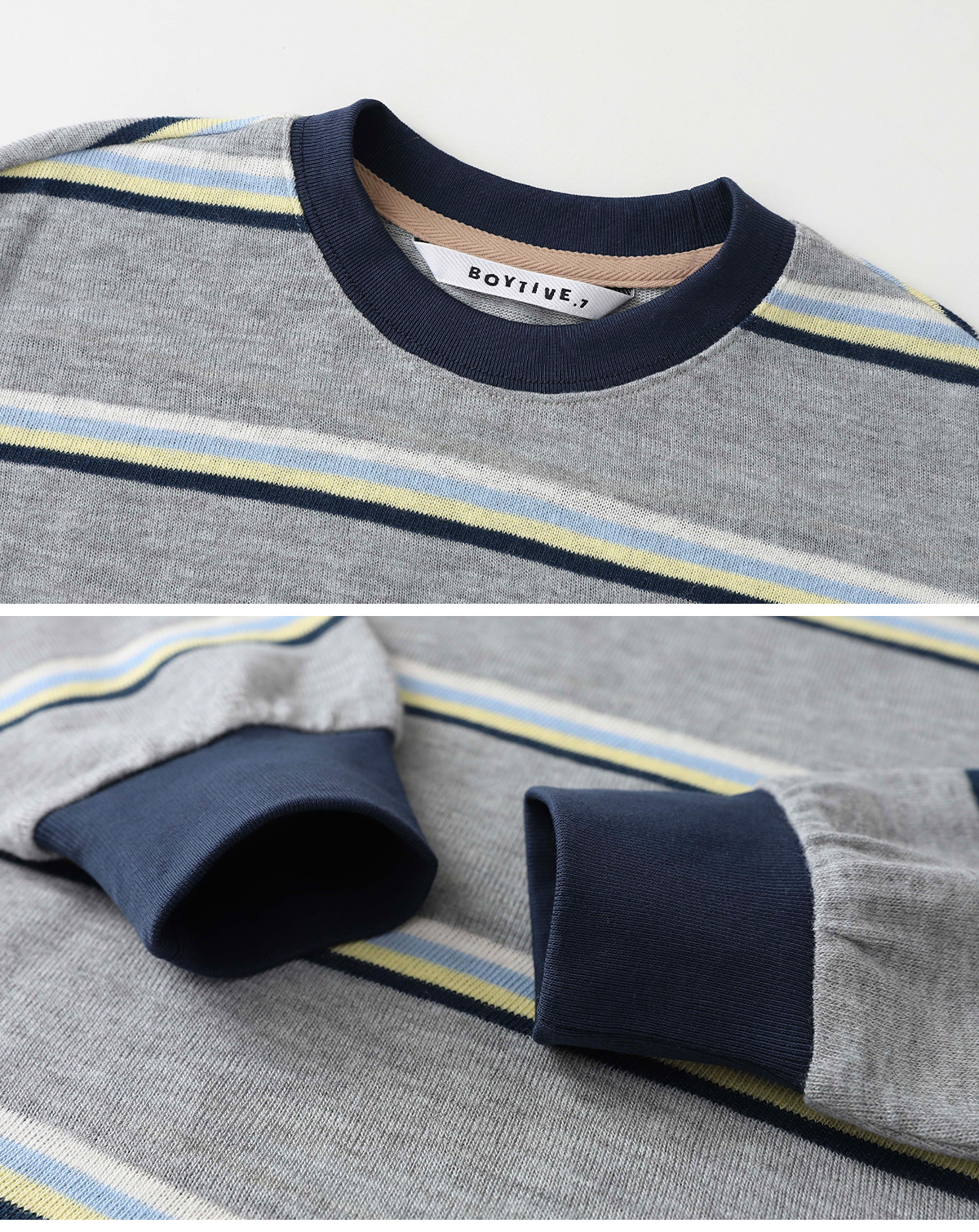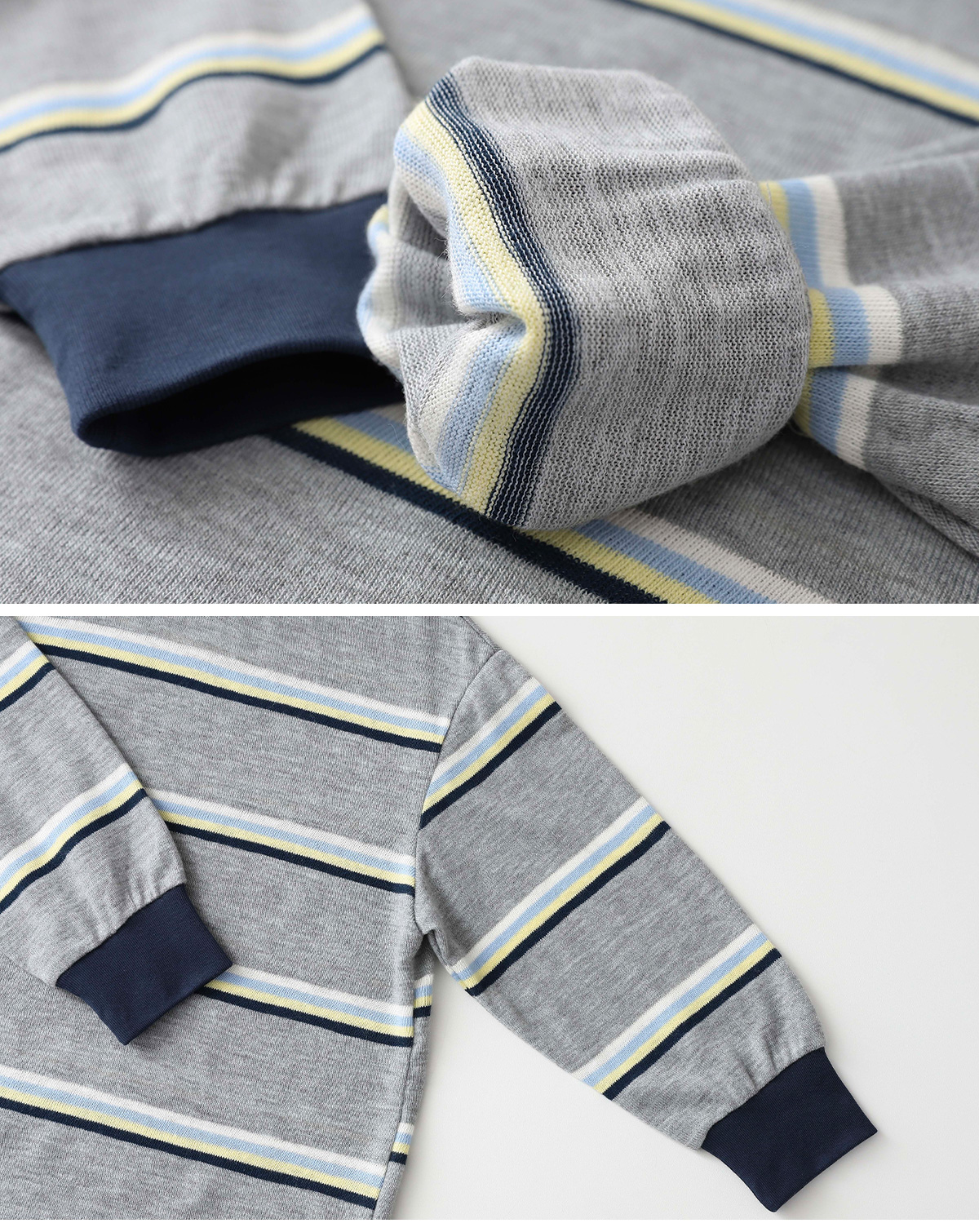 소매와 넥 라인은 탄탄한 시보리로 마감해 안정감 있게 착용되며,