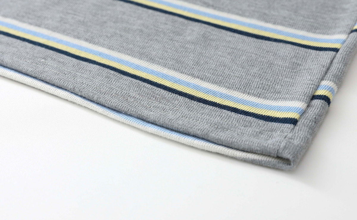 컬러 스트라이프 패턴이 경쾌한 무드를 더해주는 티셔츠입니다.