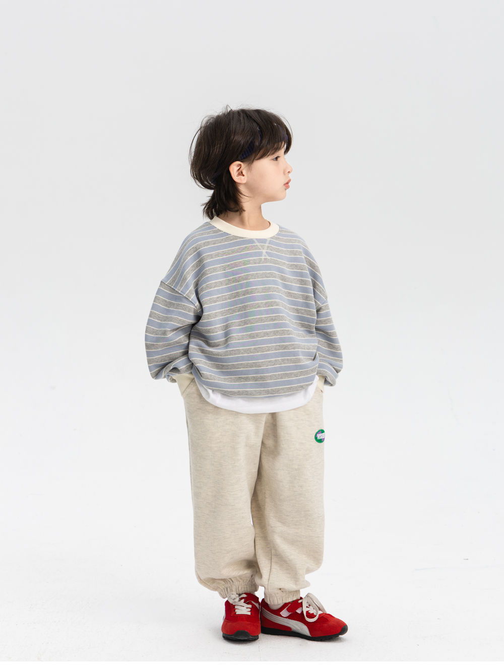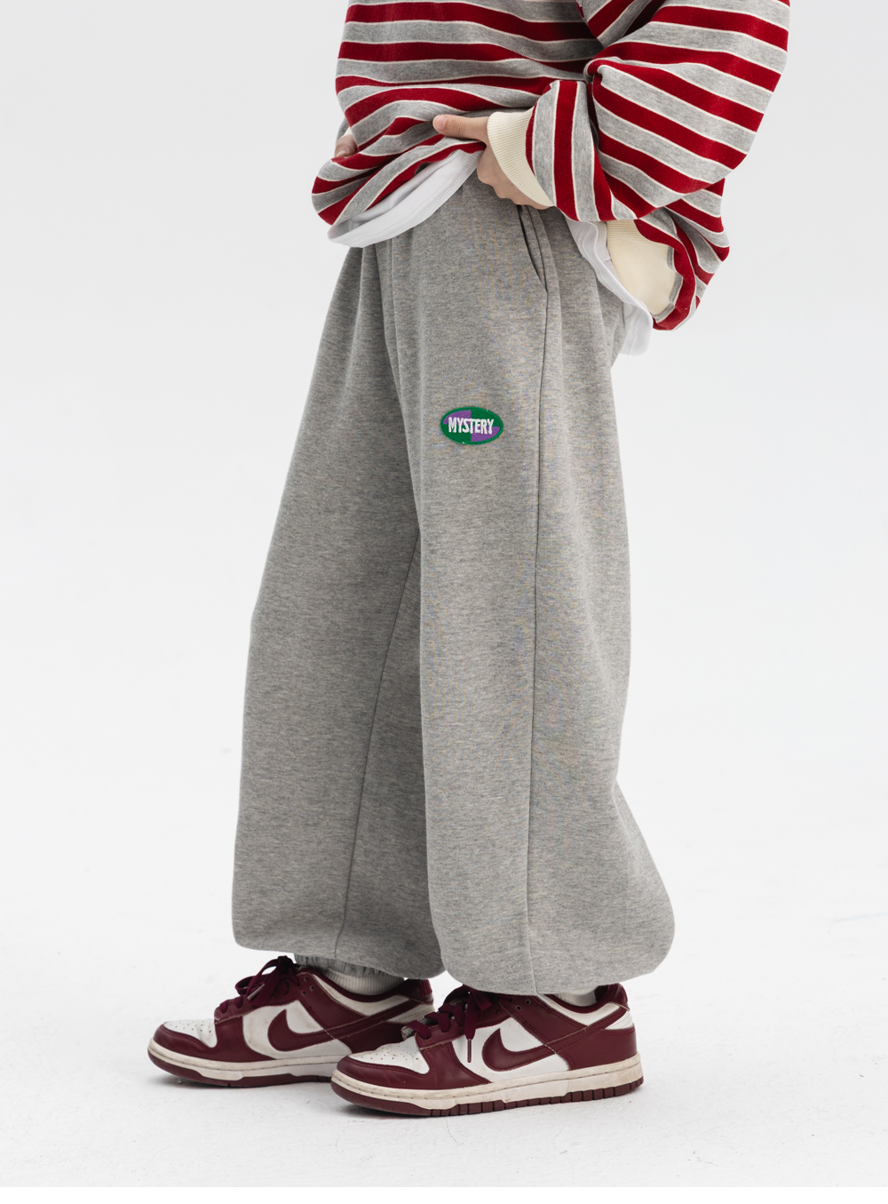 자수 패치 디테일이 돋보이는 조거 팬츠입니다.