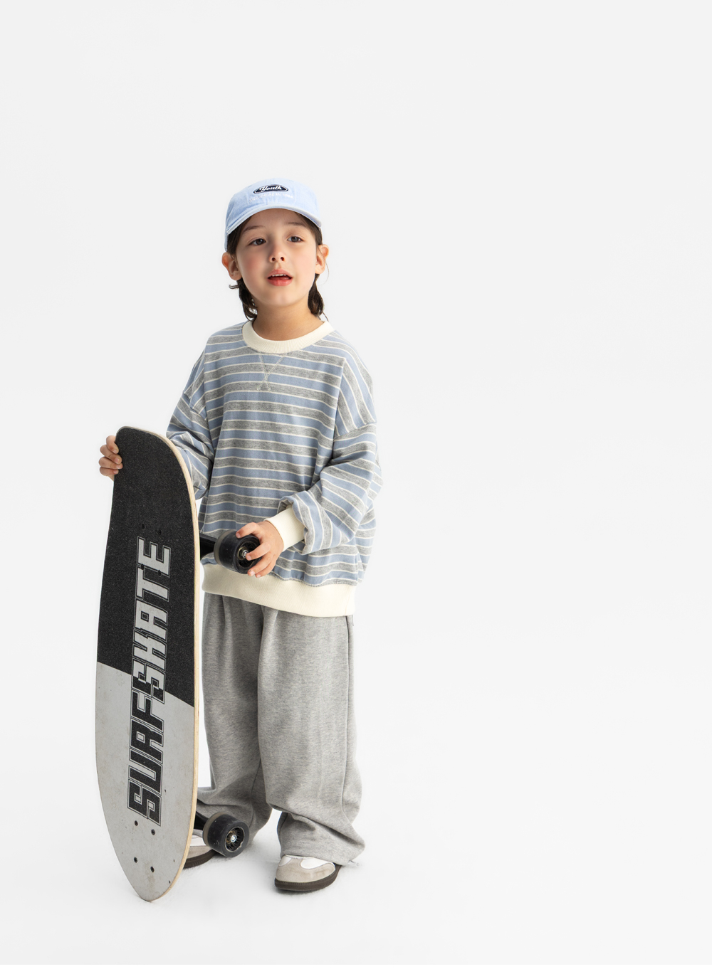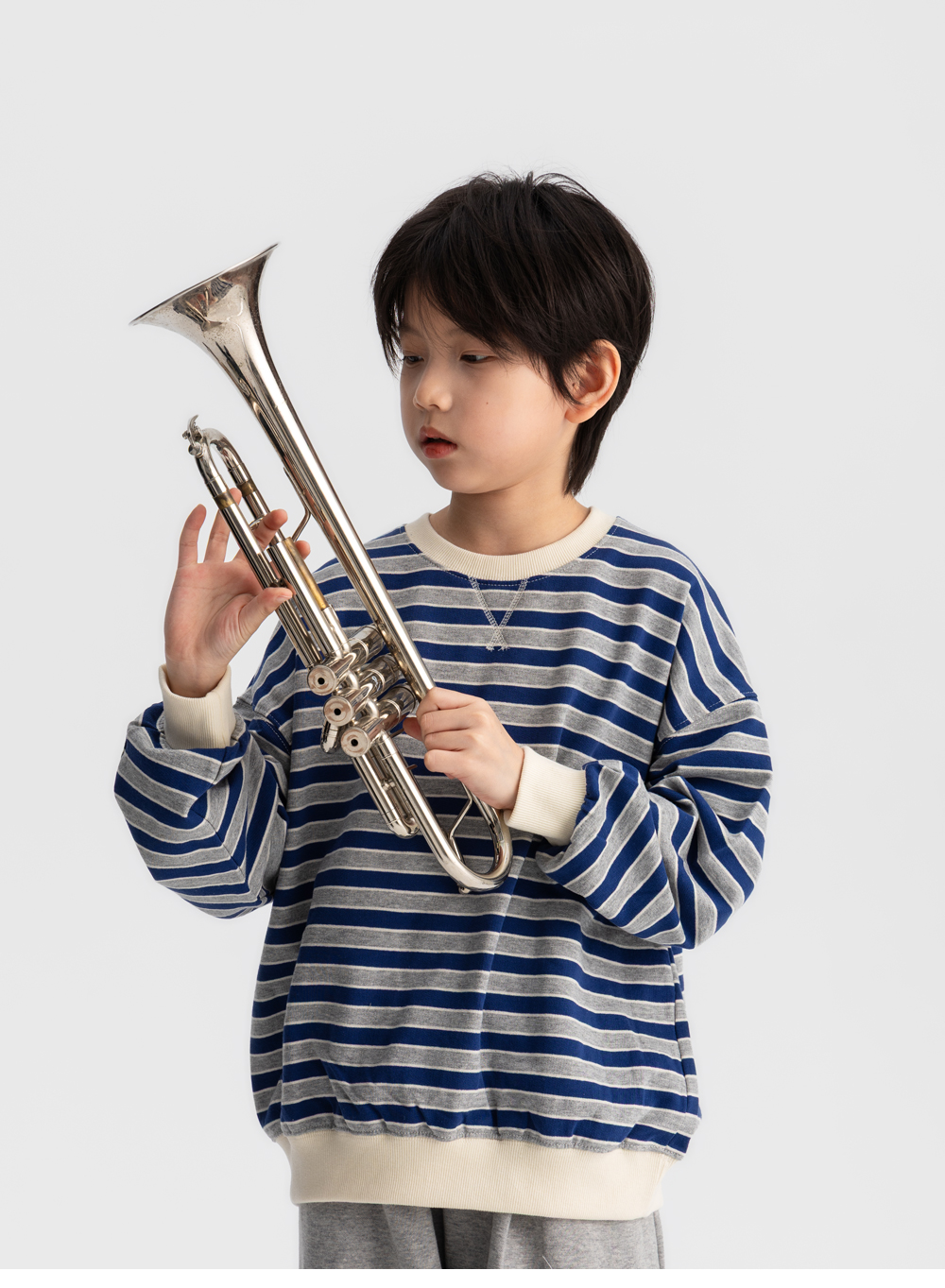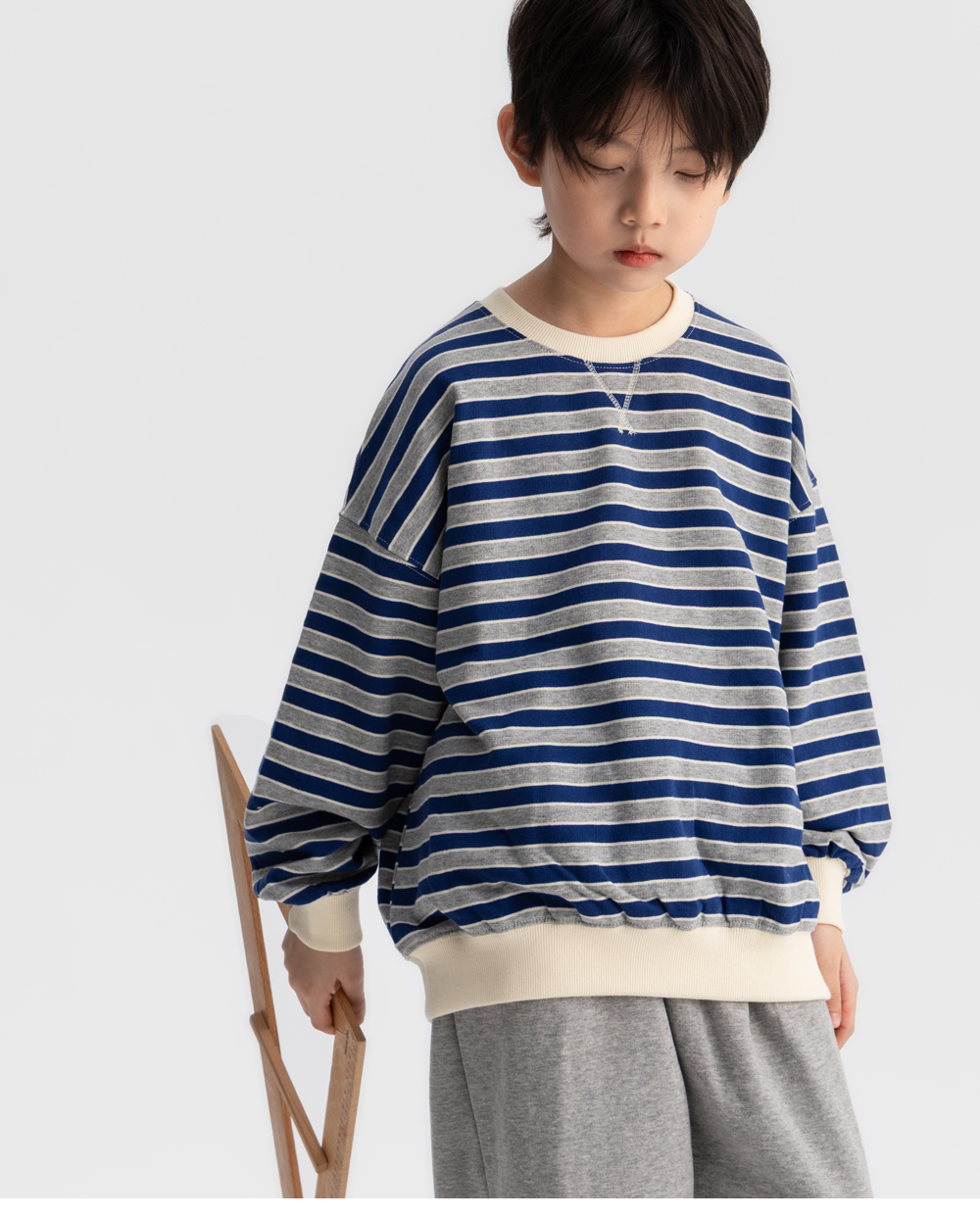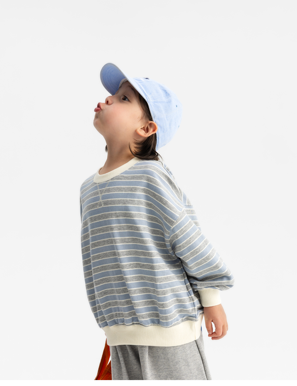 잔잔한 스트라이프 패턴으로 경쾌한 분위기가 느껴지는 맨투맨입니다.