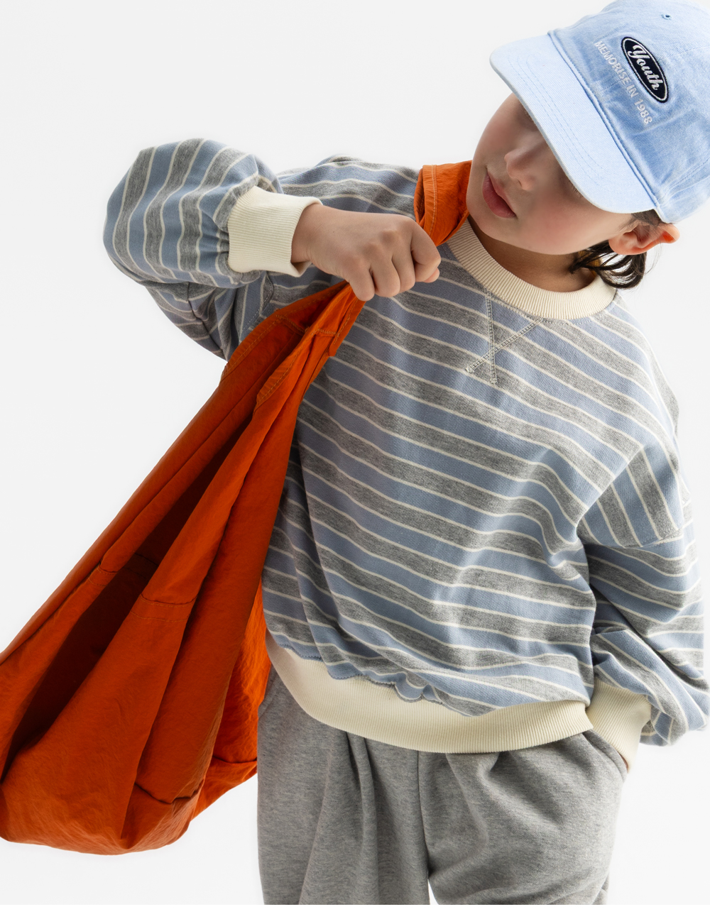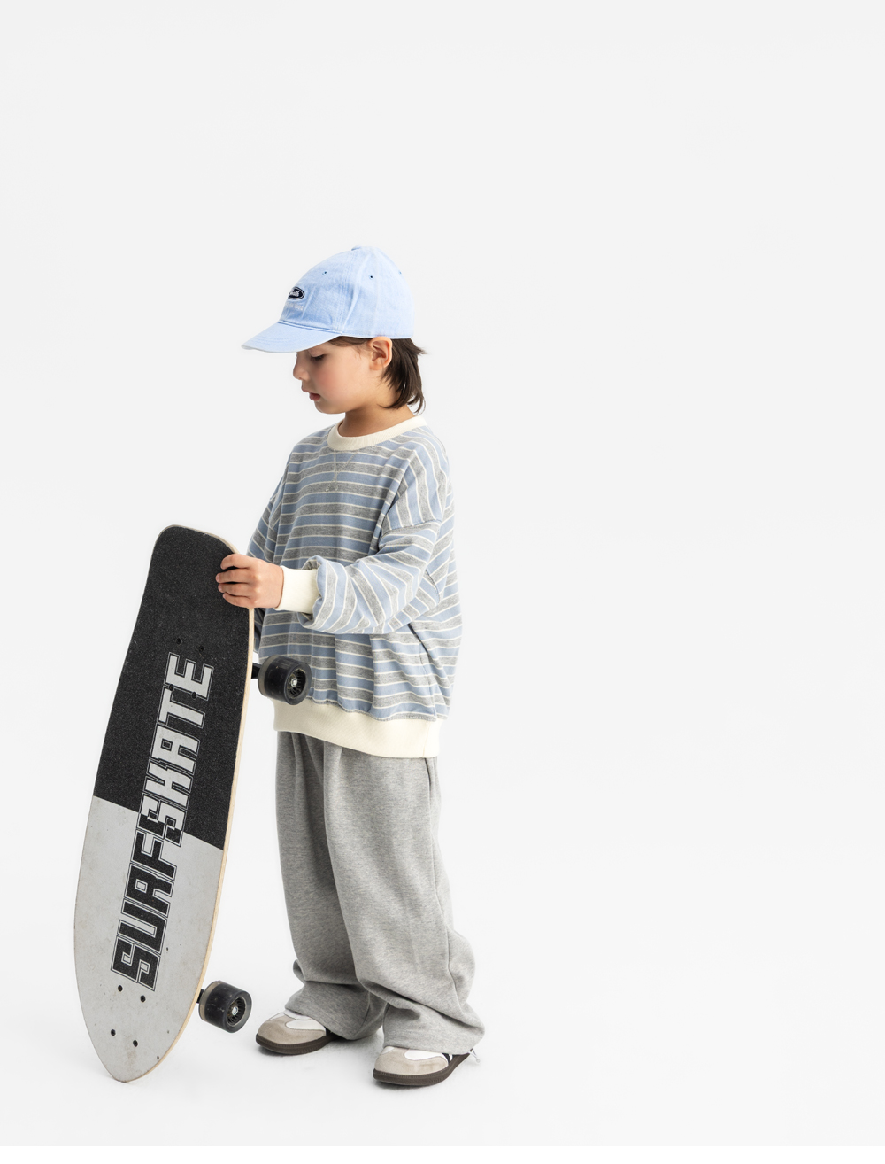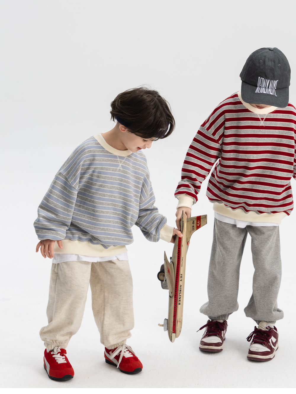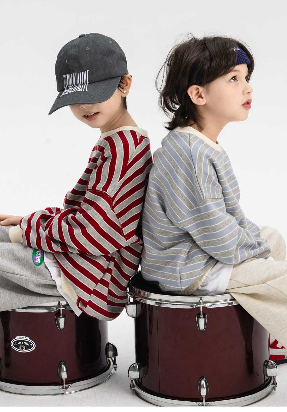 잔잔한 스트라이프 패턴으로 경쾌한 분위기가 느껴지는 맨투맨입니다.