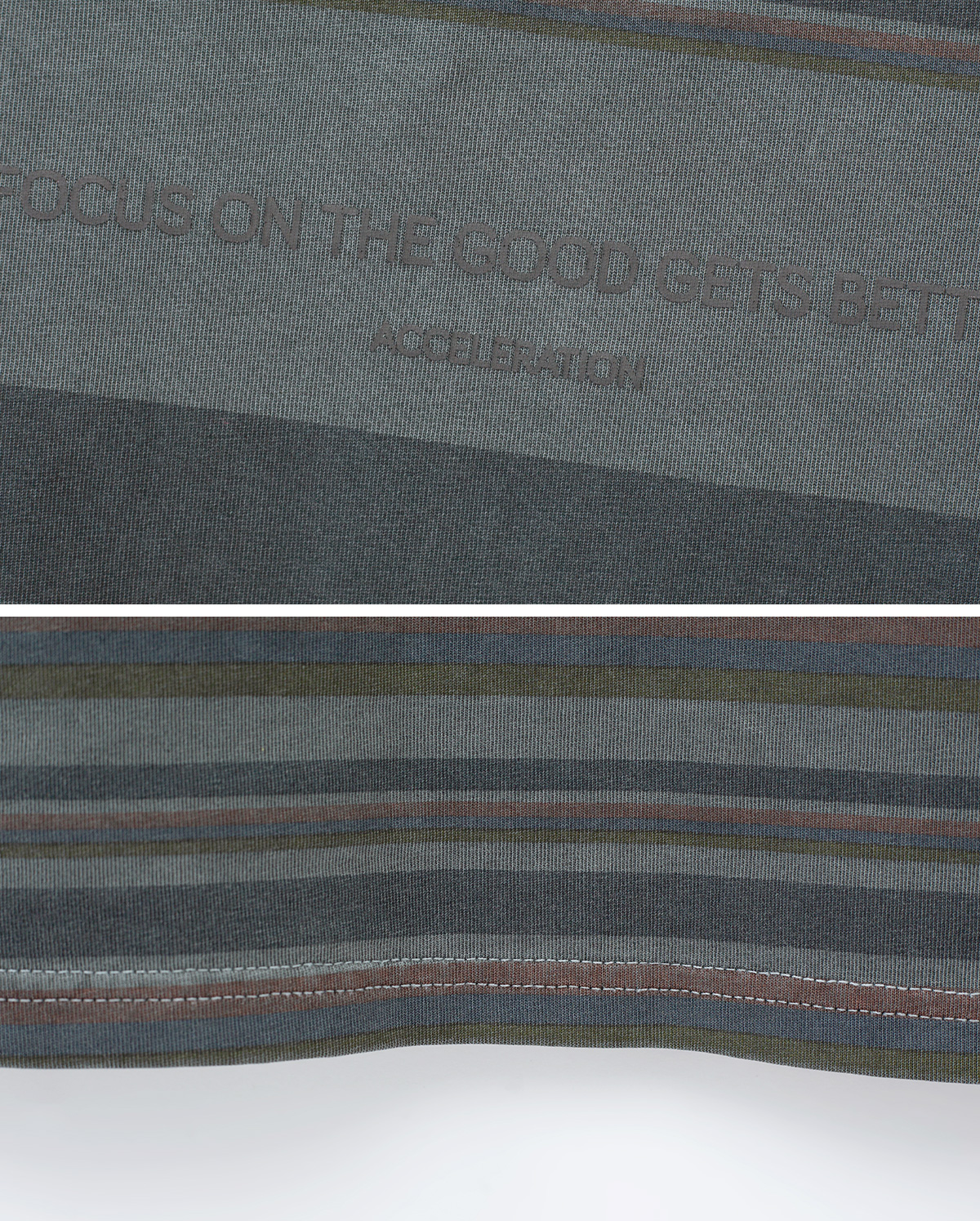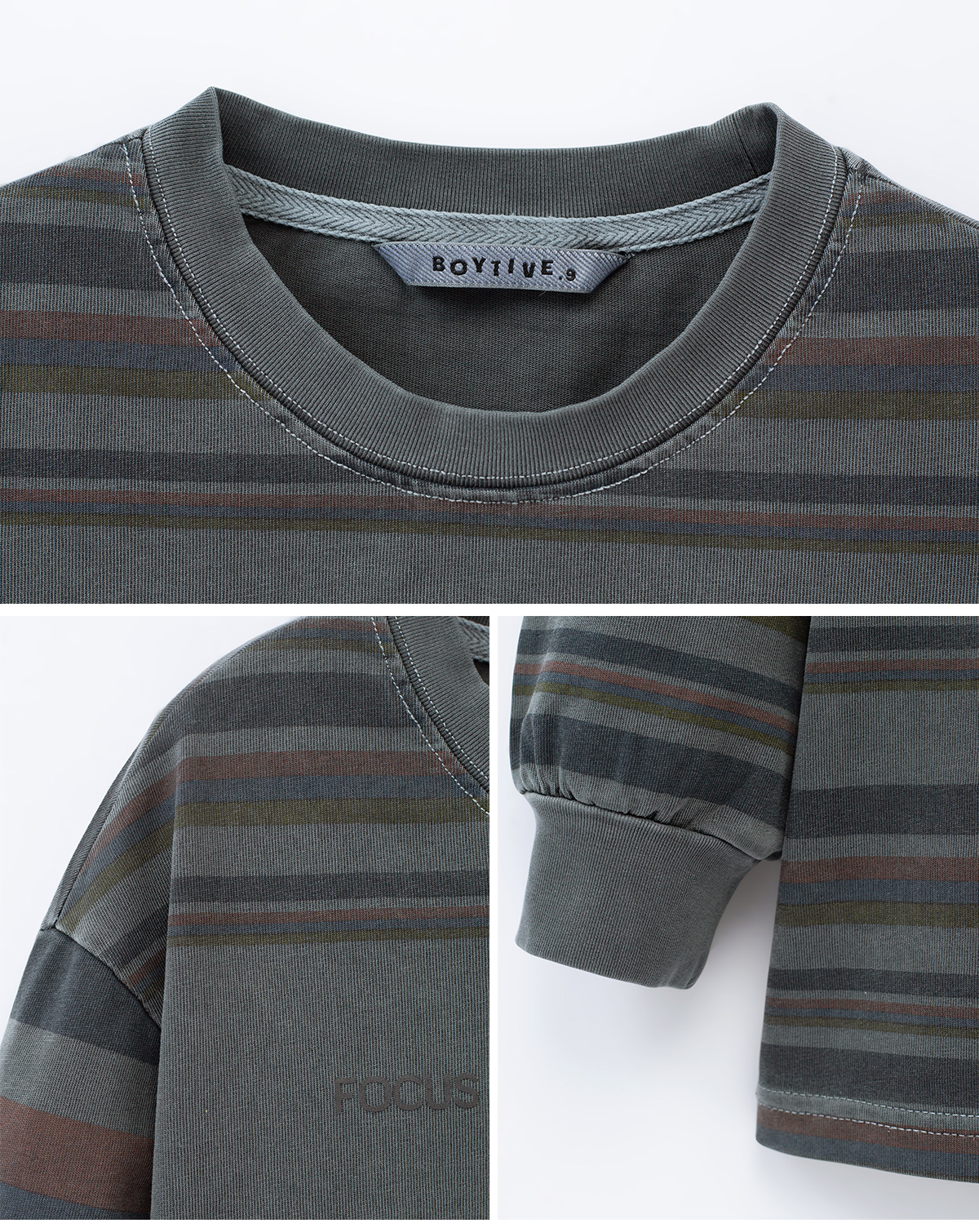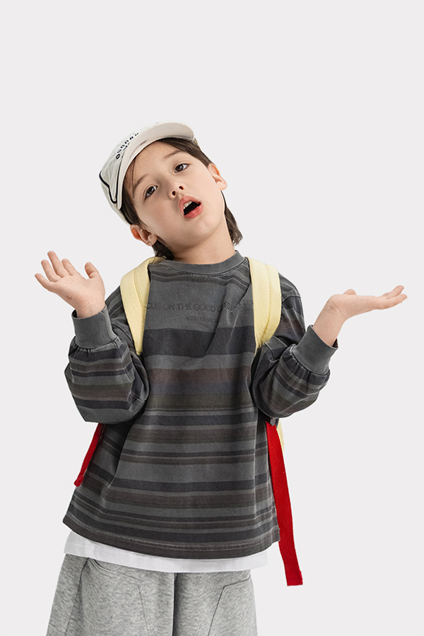 잔잔한 스트라이프 패턴이 돋보이는 티셔츠입니다.