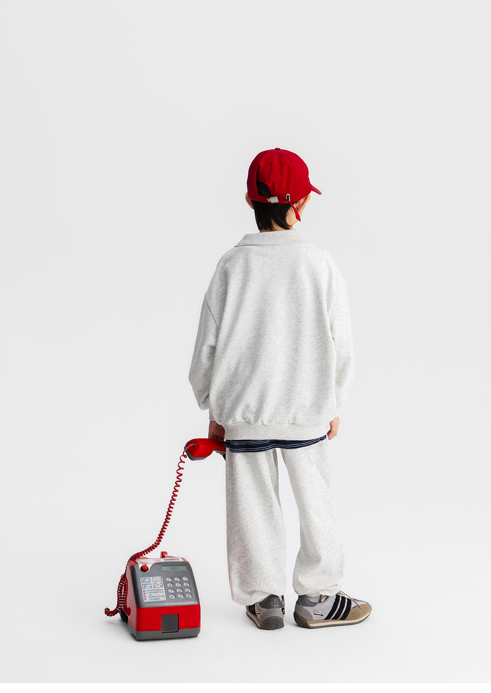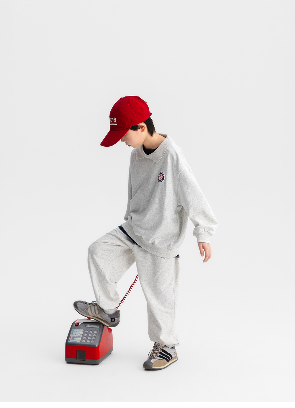 카라 디테일과 심플한 로고가 더해진 상의는 세련된 분위기를 내고,