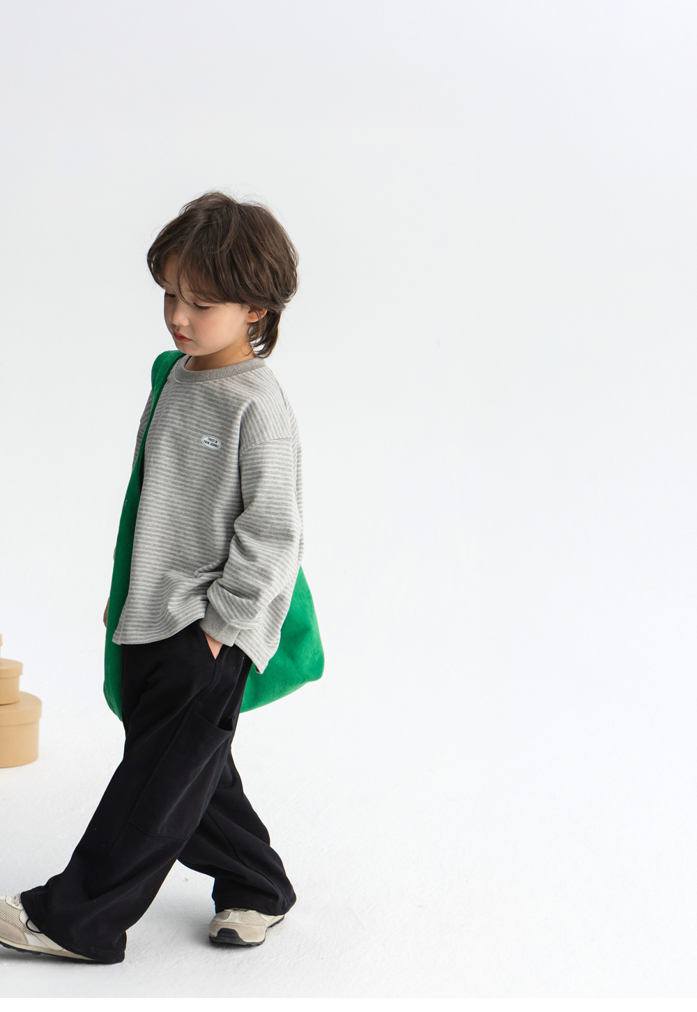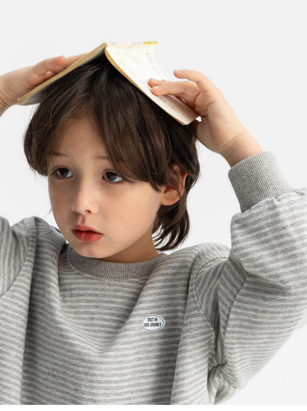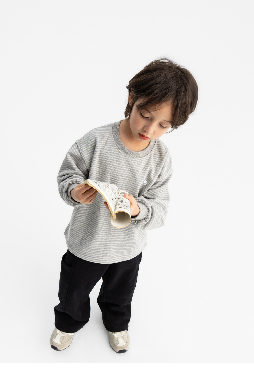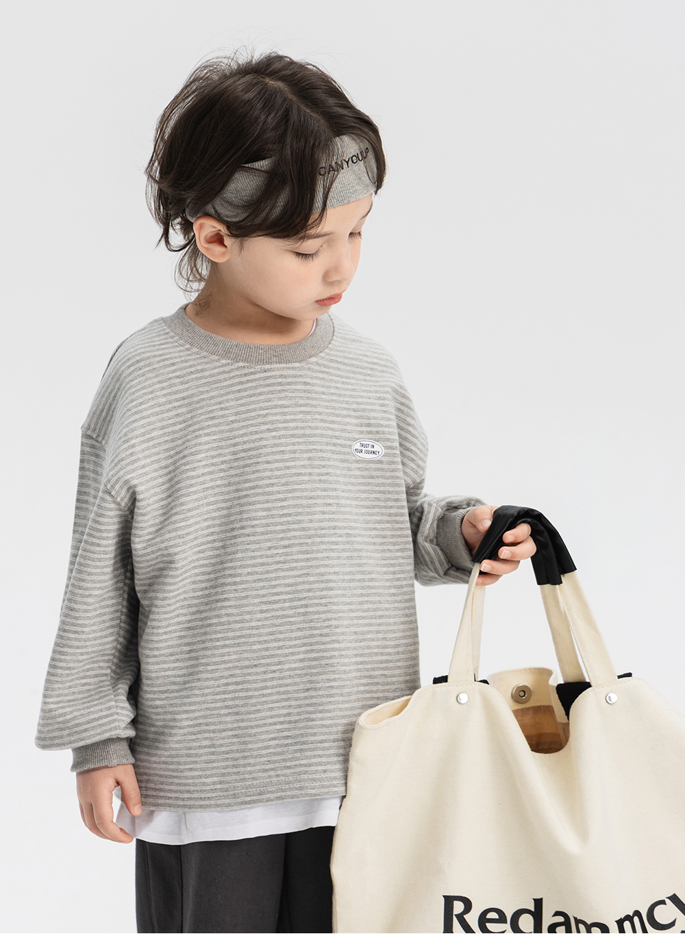 잔잔한 스트라이프에 작은 라벨 포인트를 더한 티셔츠입니다.