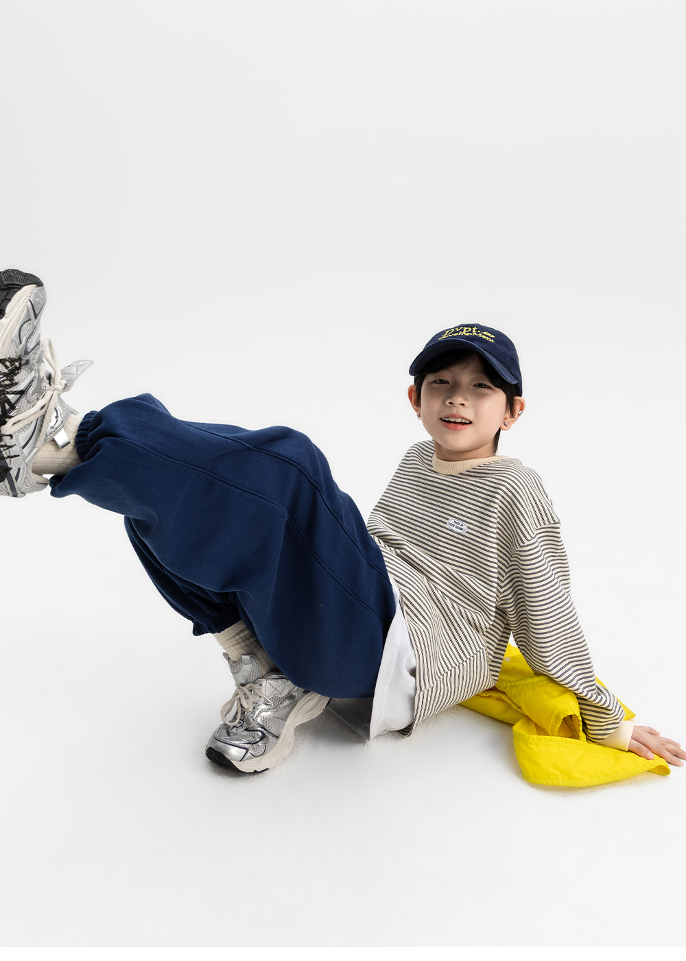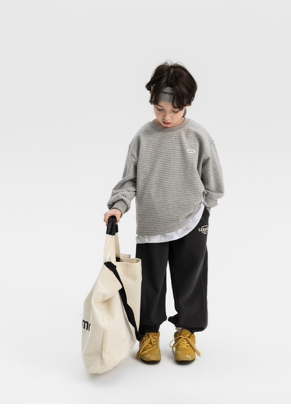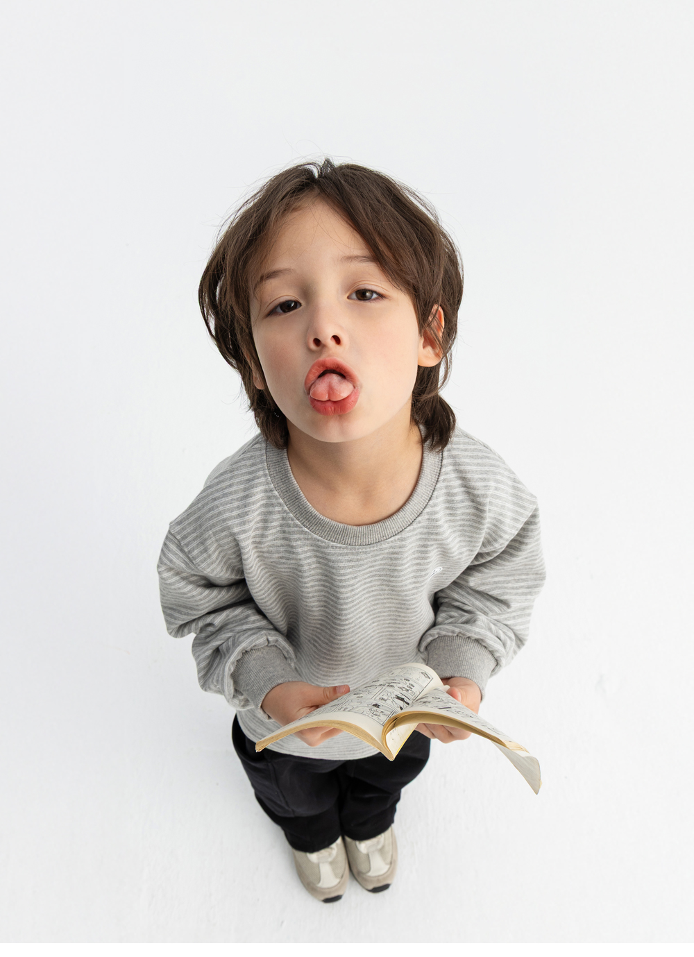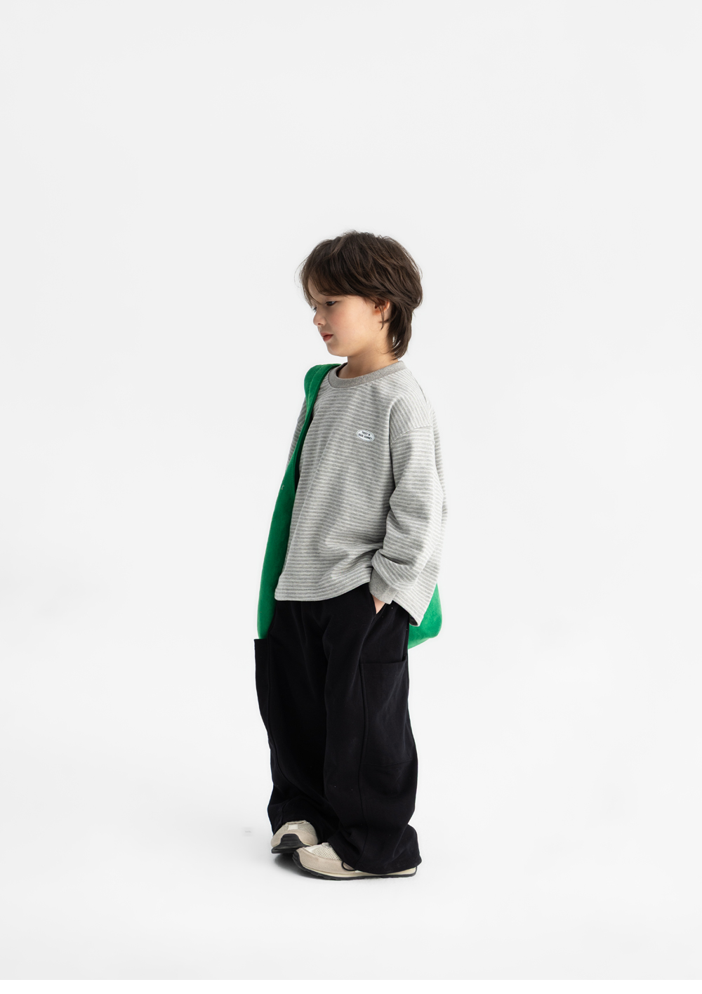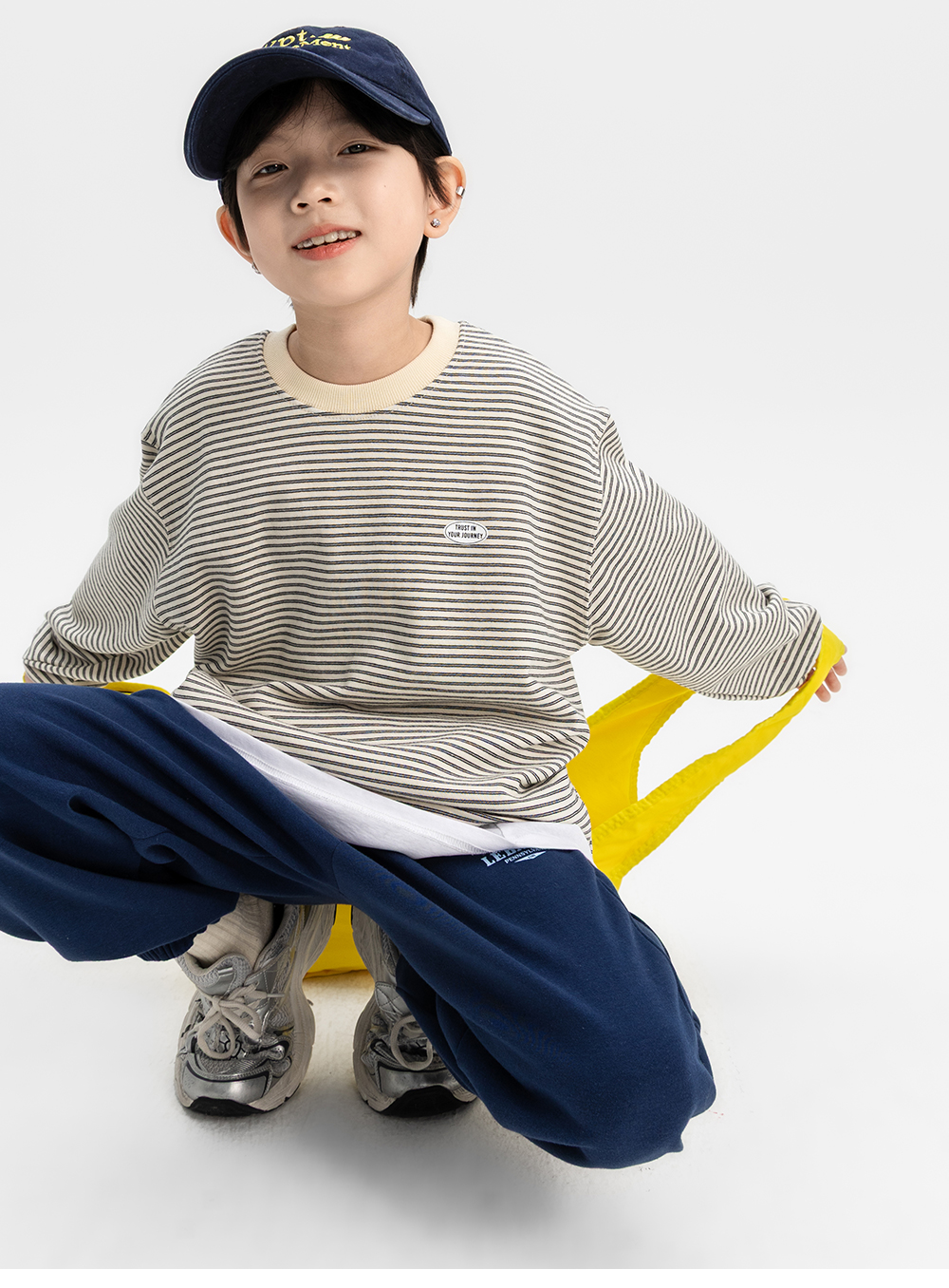 잔잔한 스트라이프에 작은 라벨 포인트를 더한 티셔츠입니다.
