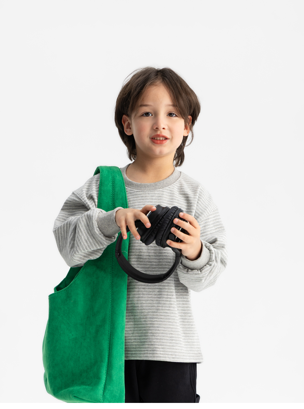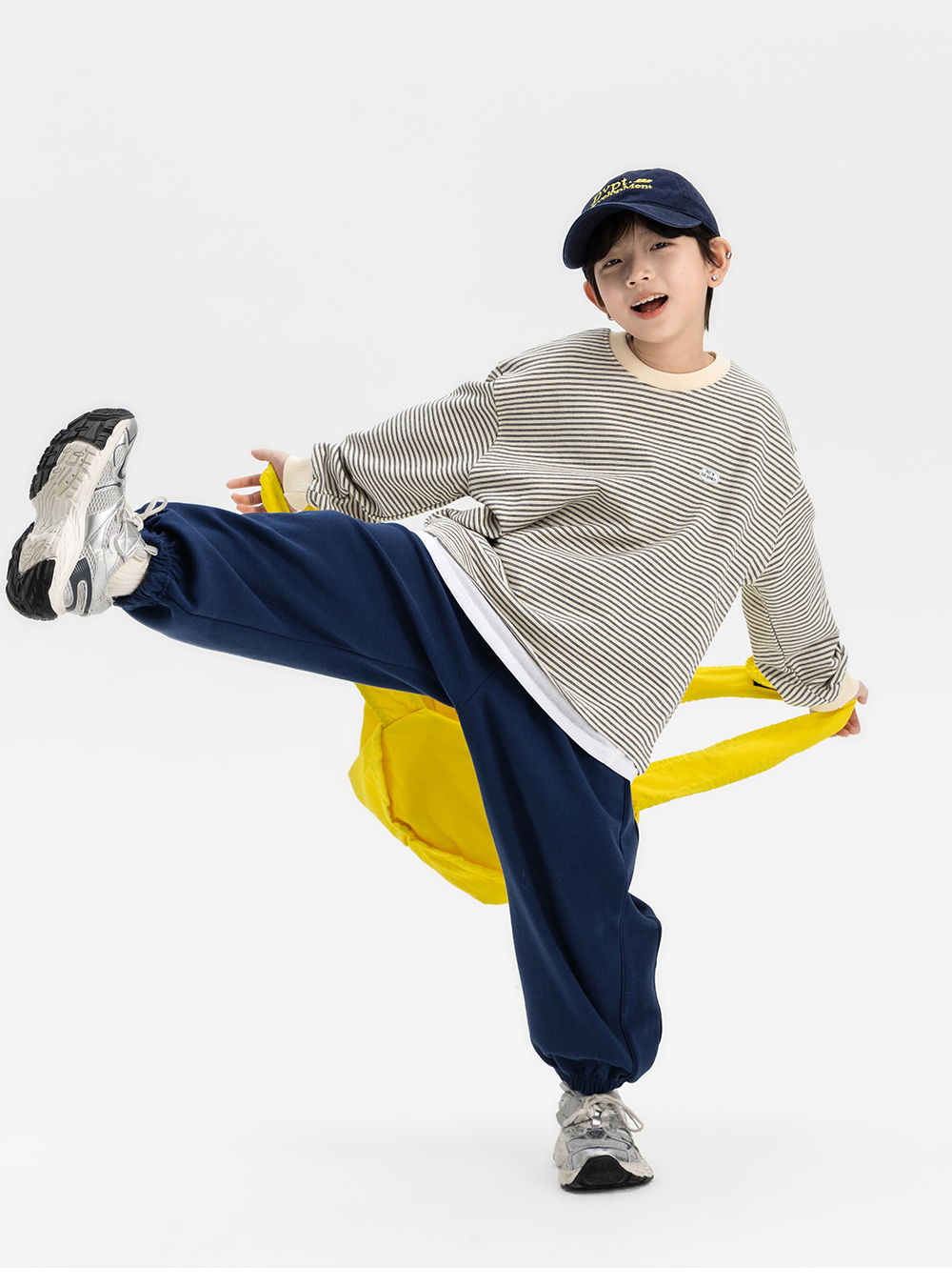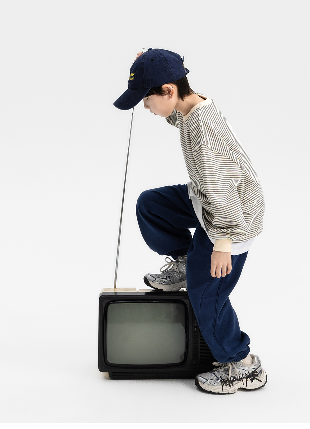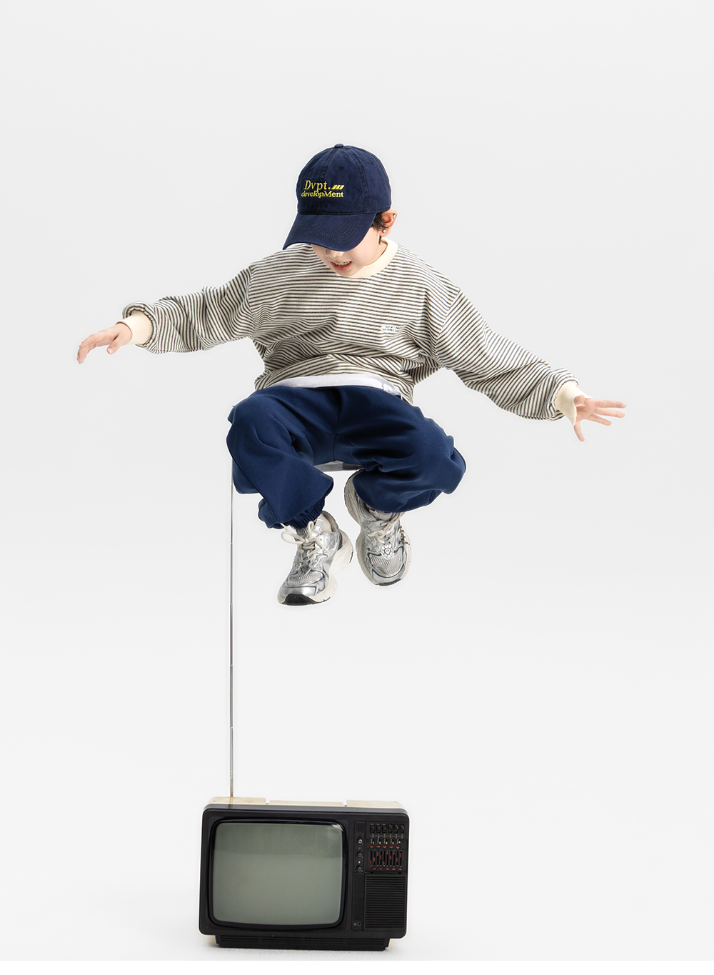 잔잔한 스트라이프에 작은 라벨 포인트를 더한 티셔츠입니다.