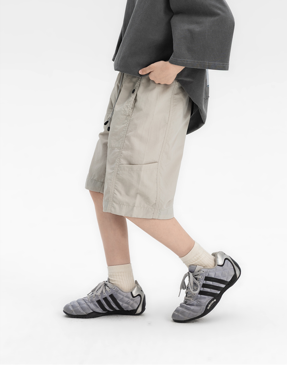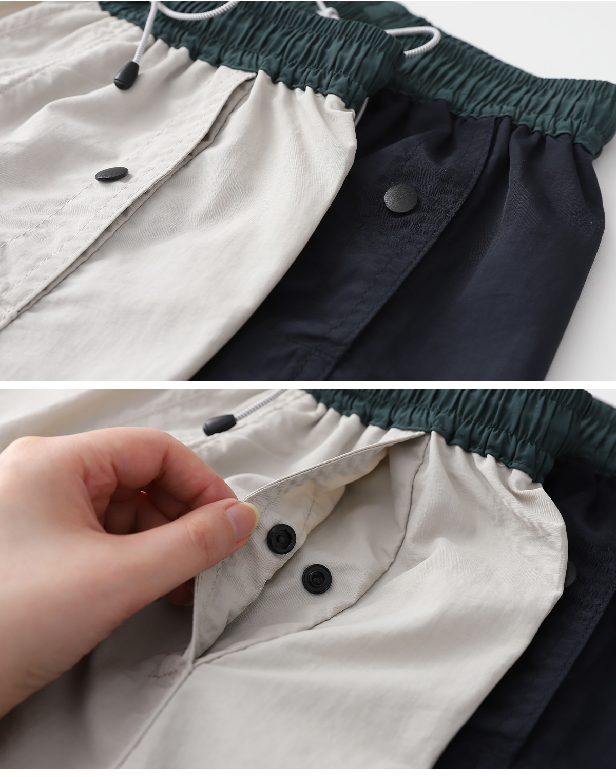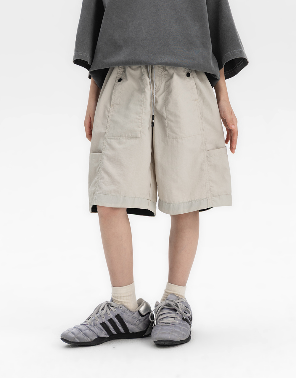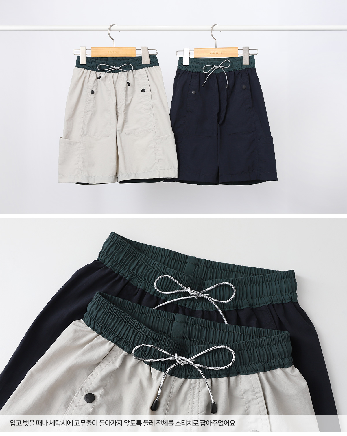 가볍고 바스락한 터치가 돋보이는 하프팬츠입니다.