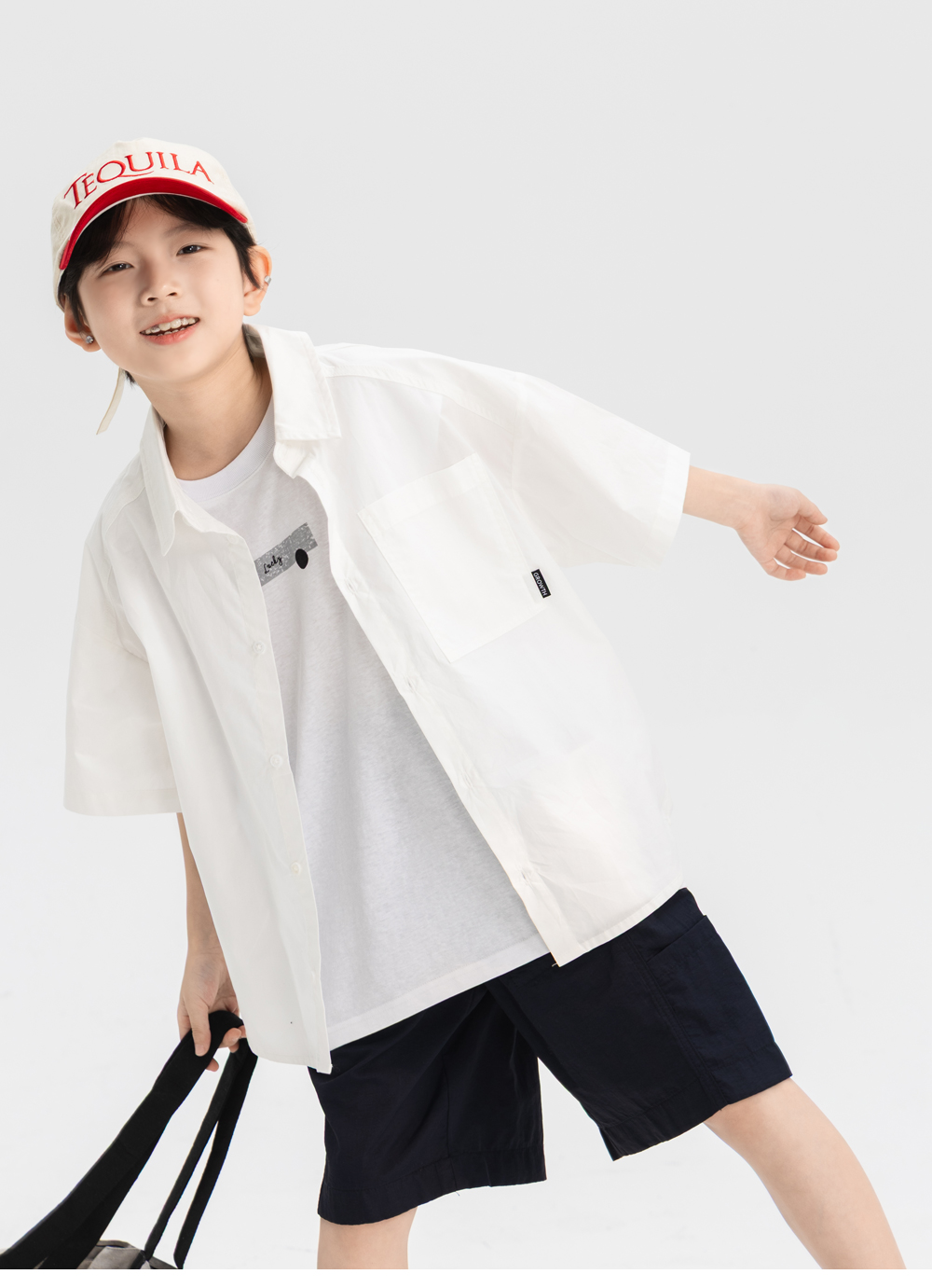 여유 있게 떨어지는 실루엣에 큼직한 아웃포켓과 스트링을 더해