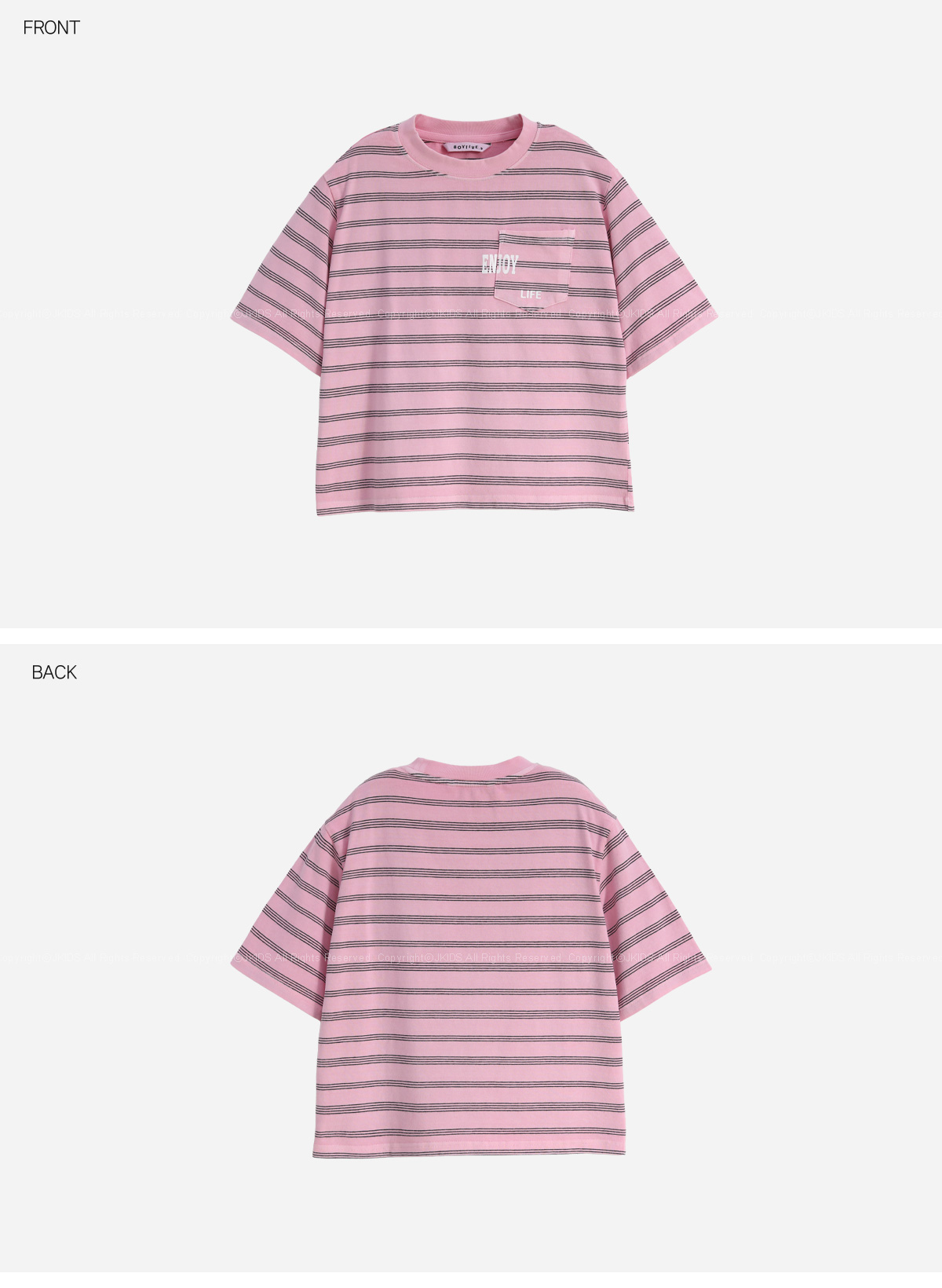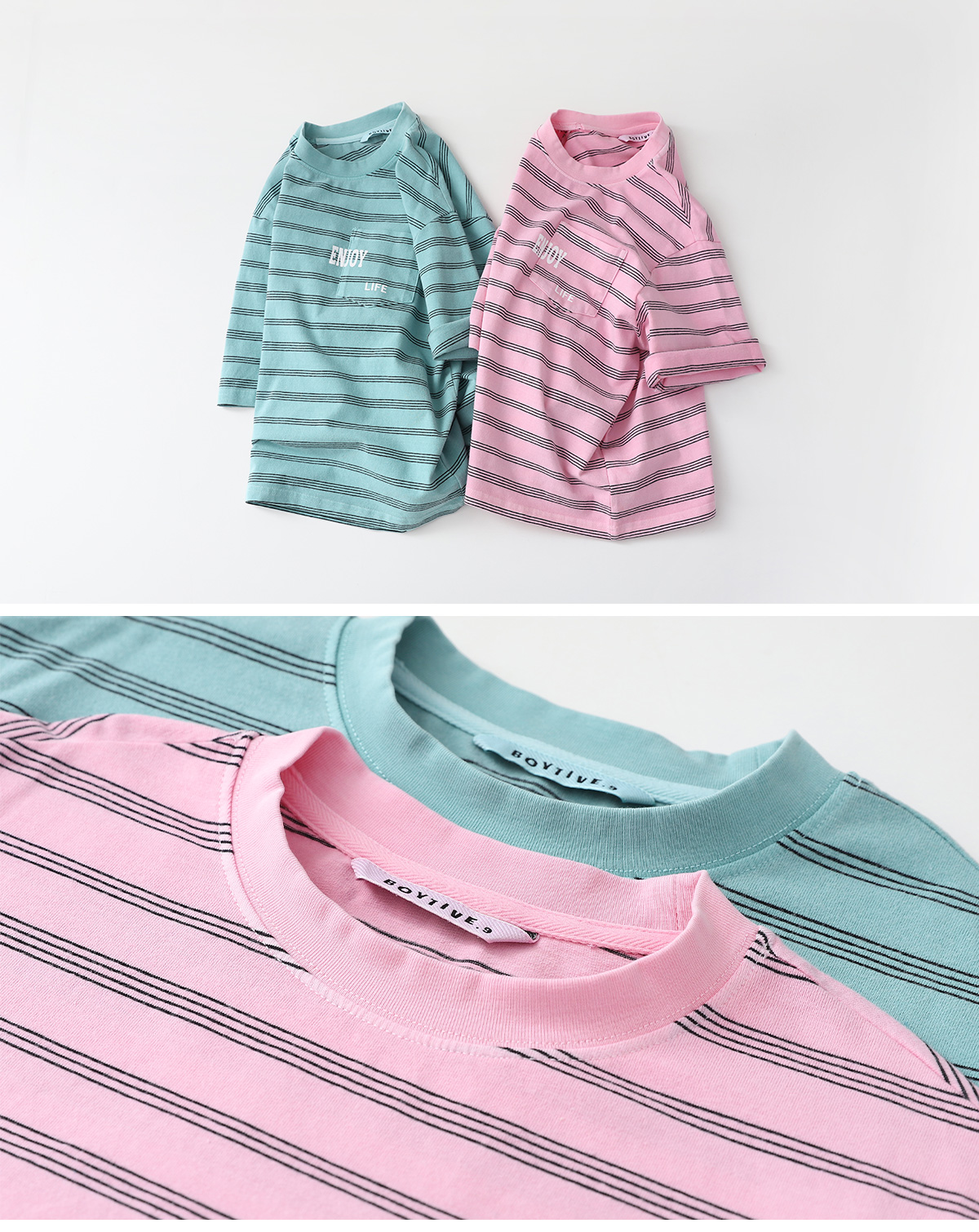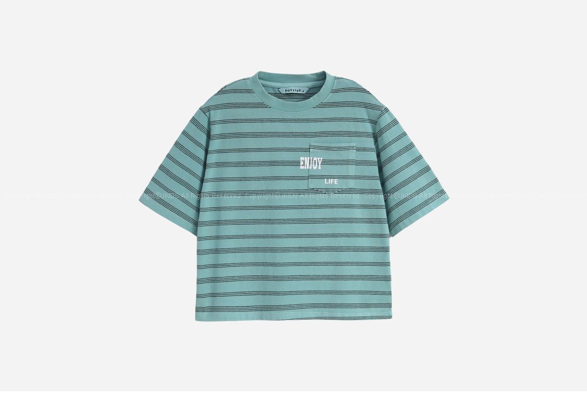 스트라이프 위에 더해진 레터링 포켓이 포인트가 되는 티셔츠입니다.