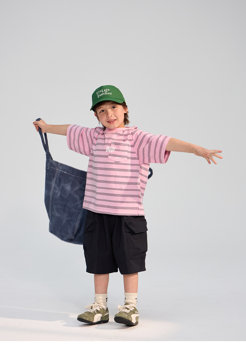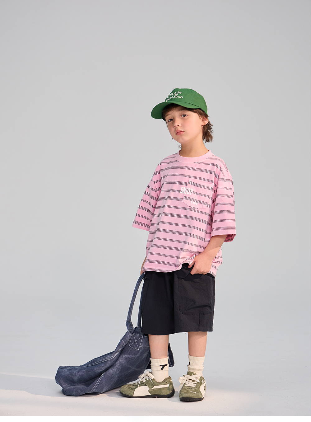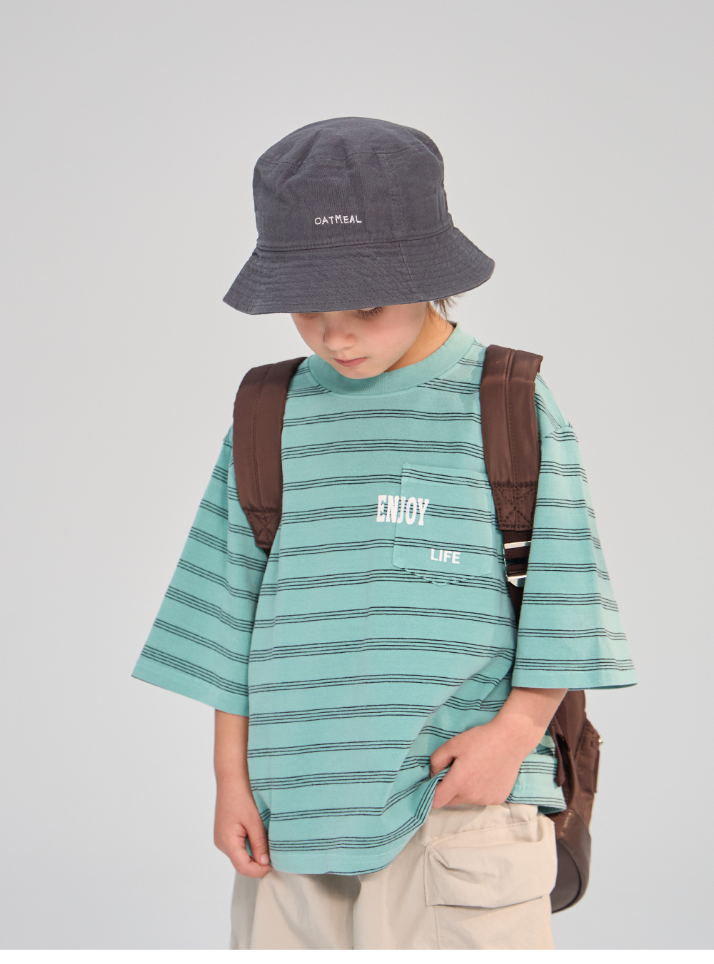 스트라이프 위에 더해진 레터링 포켓이 포인트가 되는 티셔츠입니다.