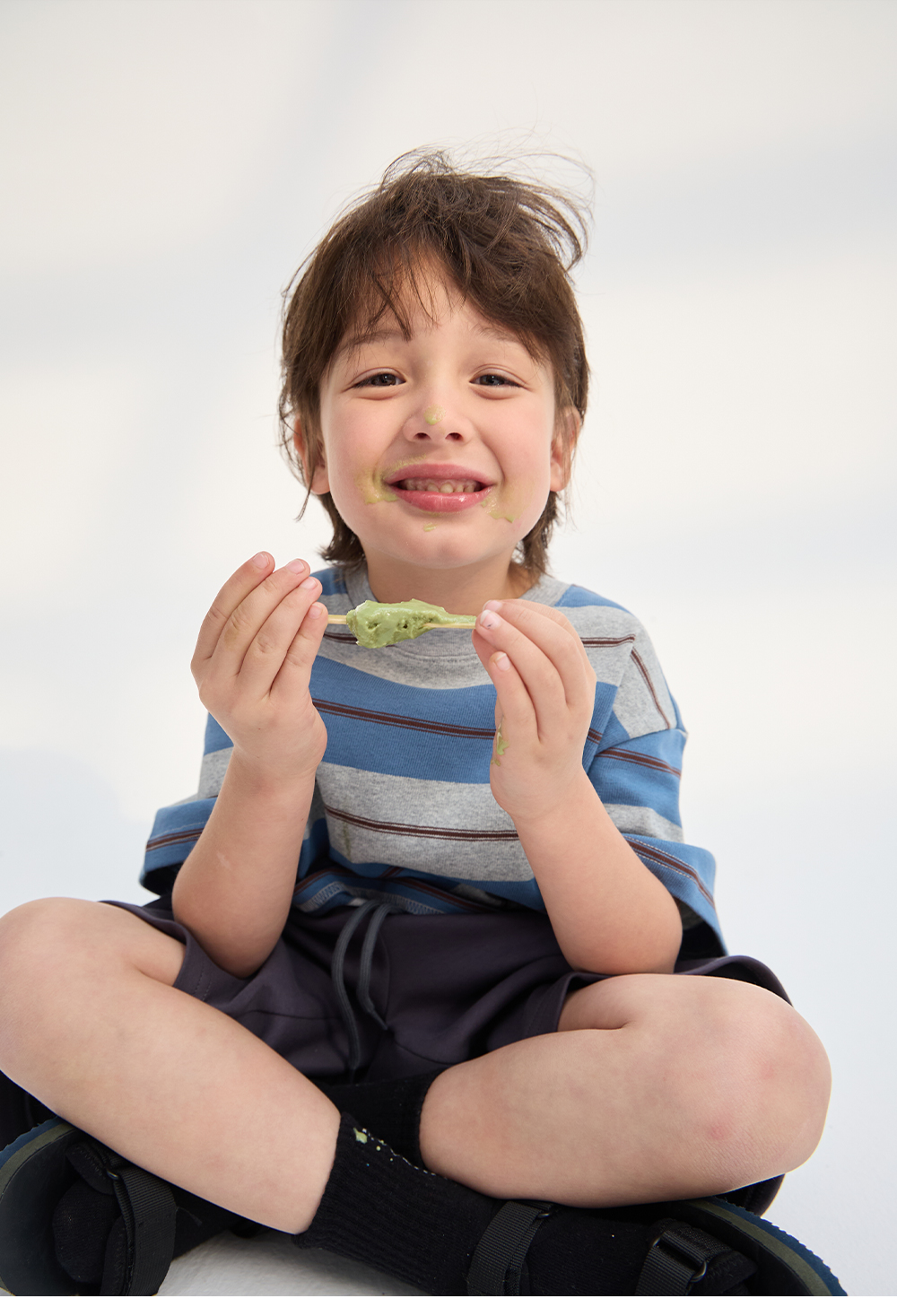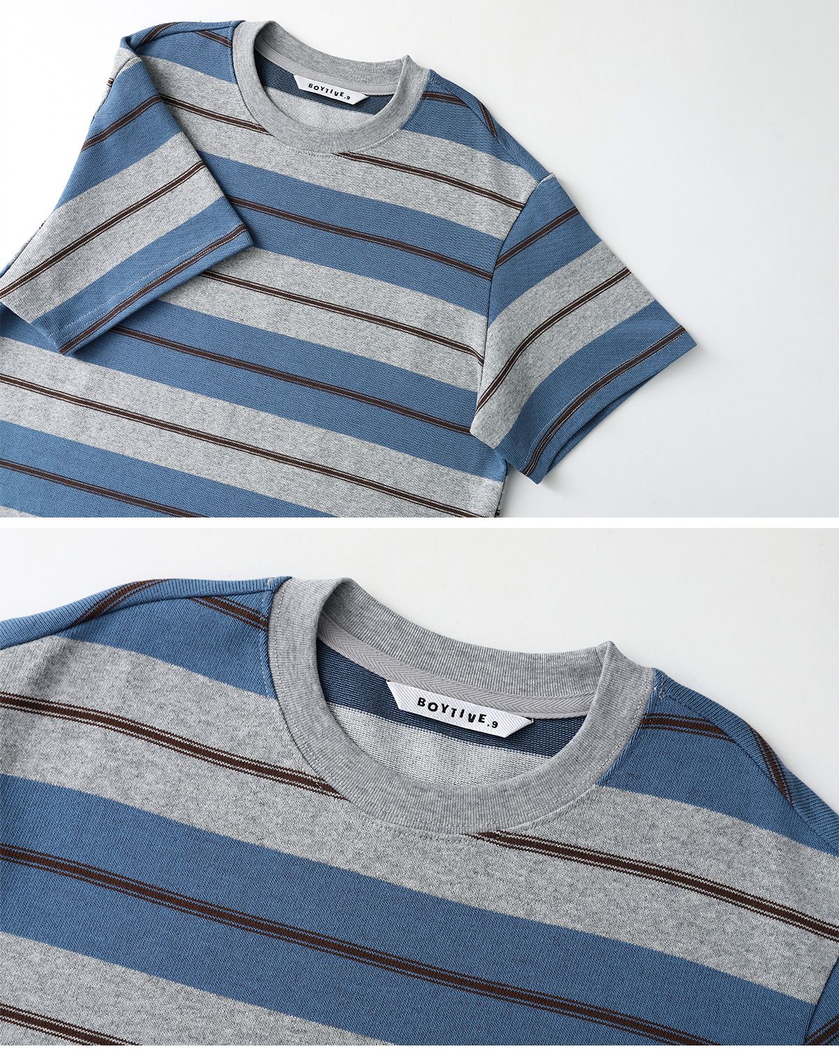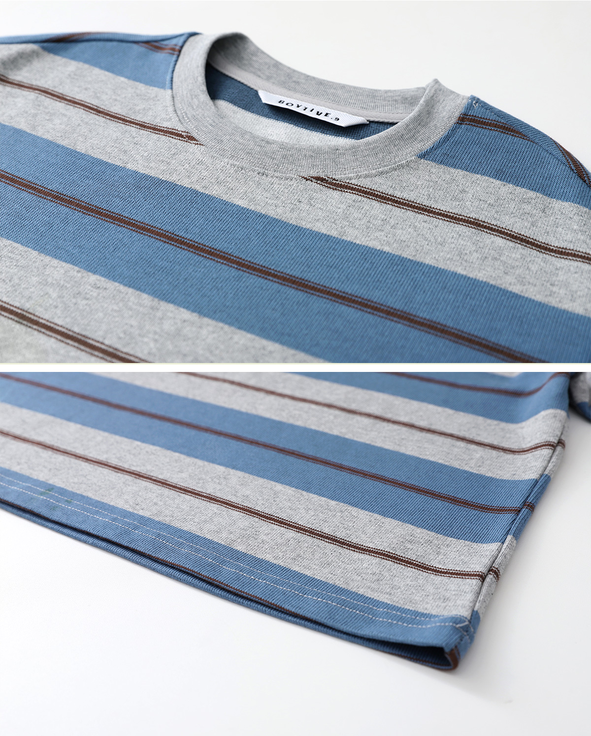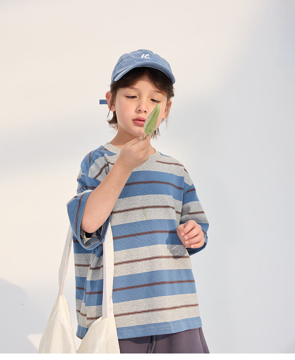 잔잔한 컬러 스트라이프가 어우러진 티셔츠입니다.