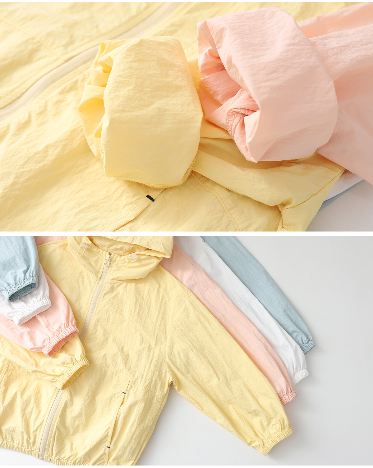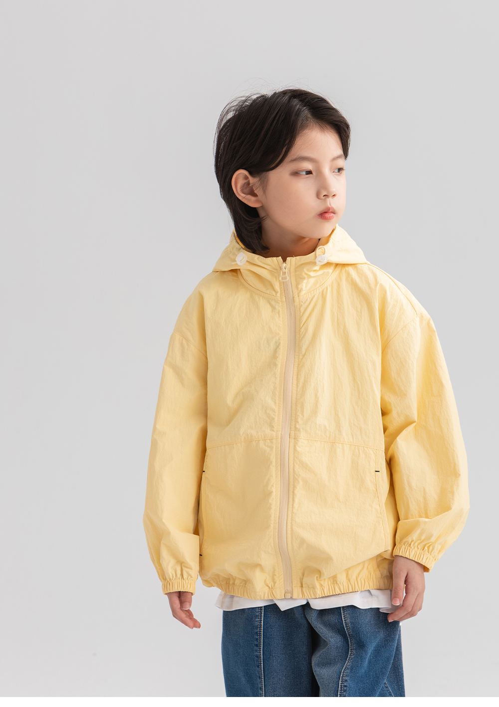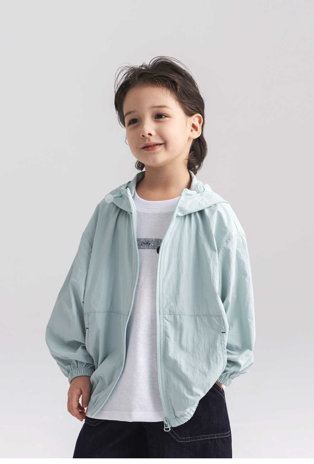 가벼운 소재로 제작해 활동이 많은 아이들도 편안하게 착용할 수 있는 바람막이예요.