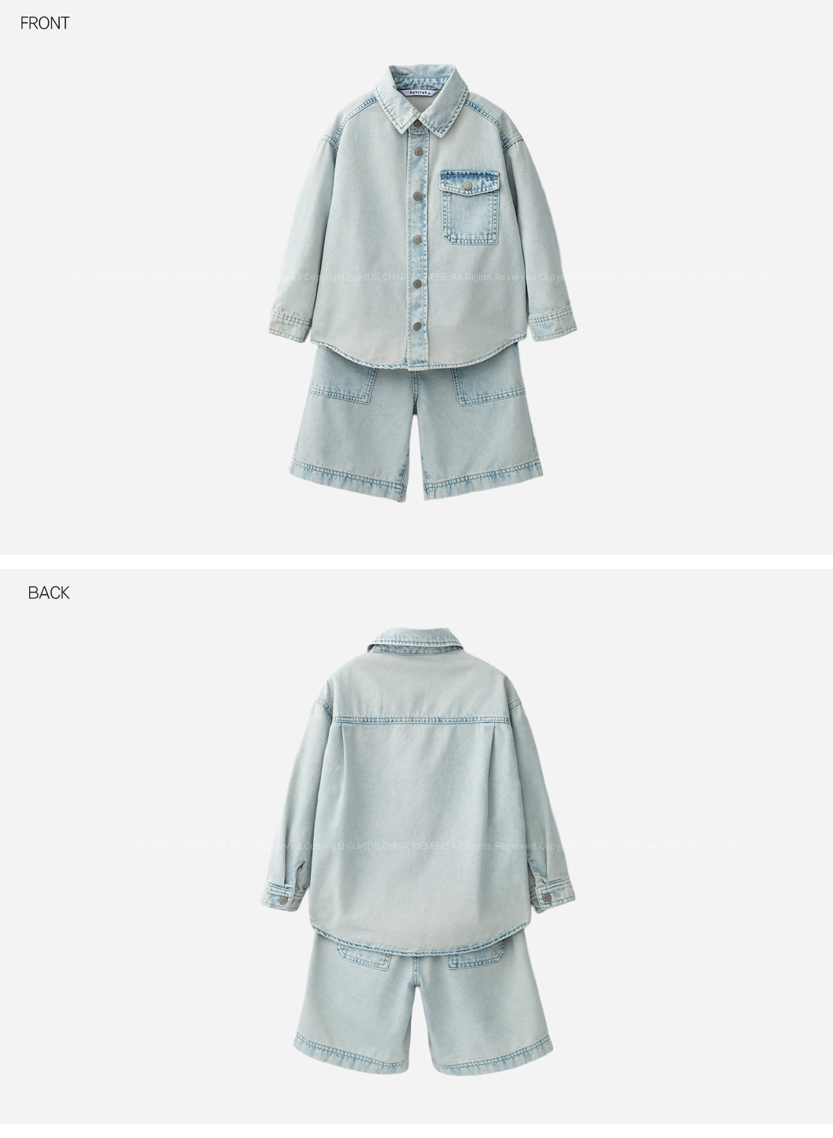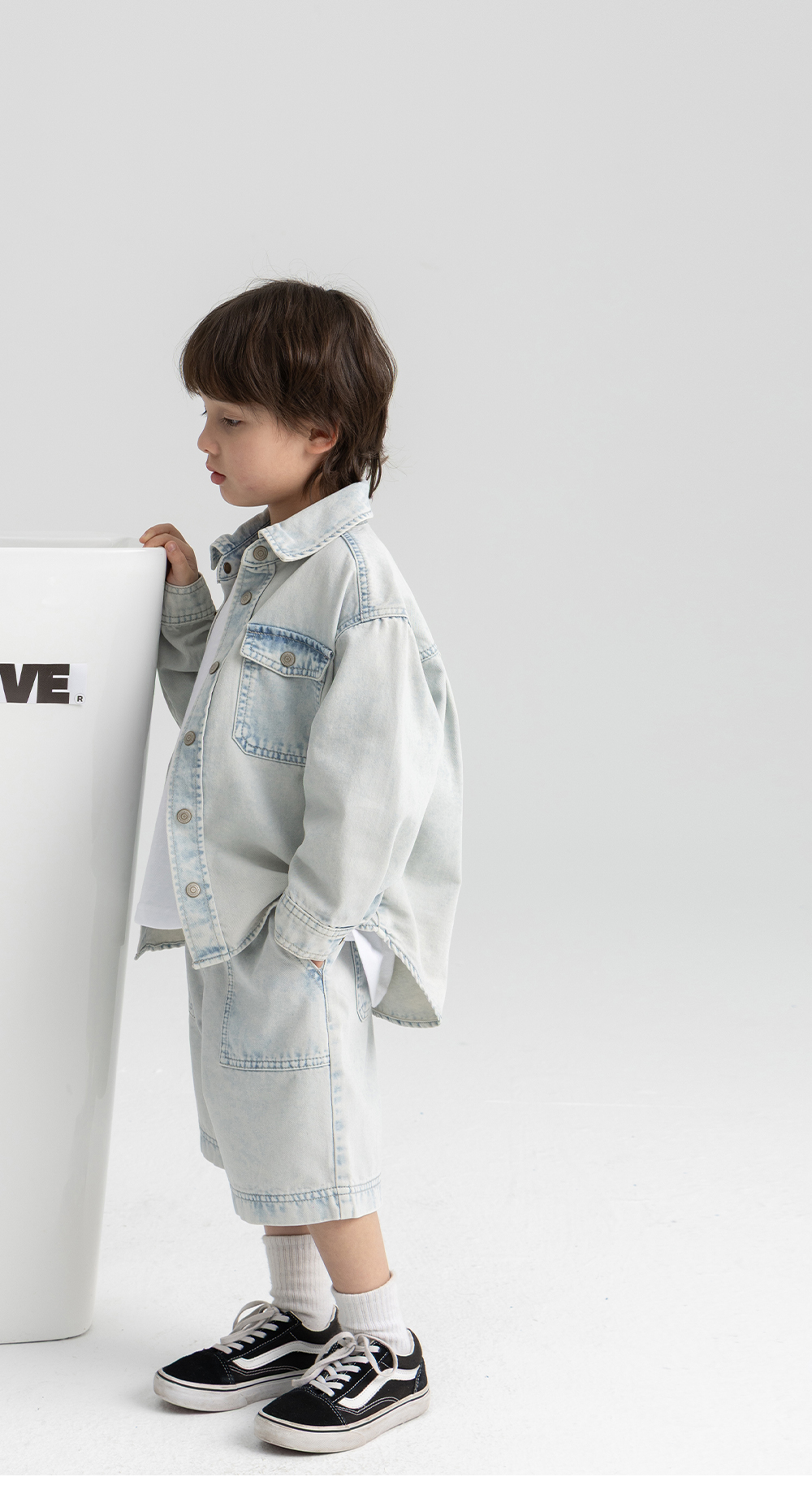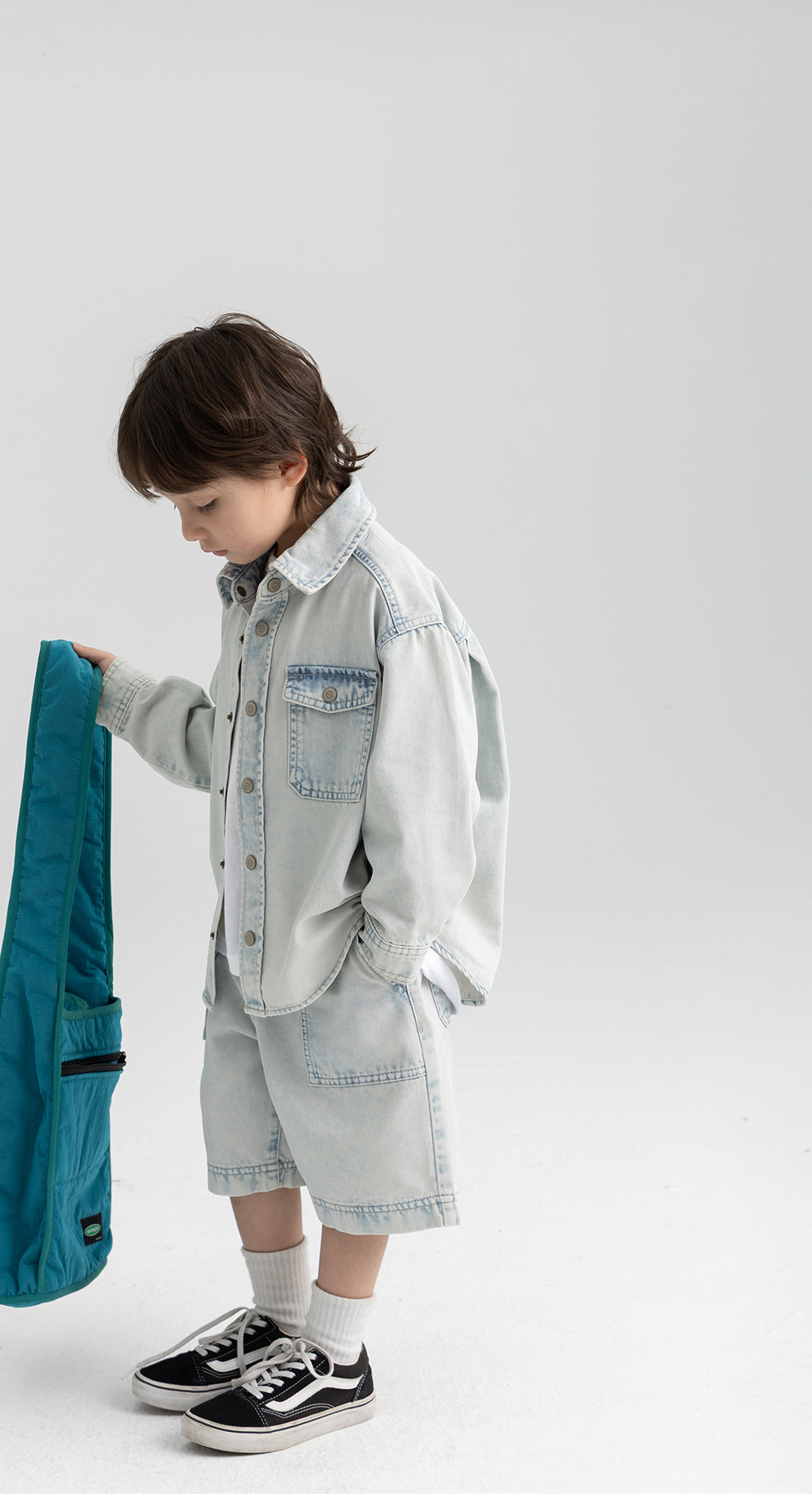 데님 자켓과 하프팬츠 구성의 상하셋업입니다.