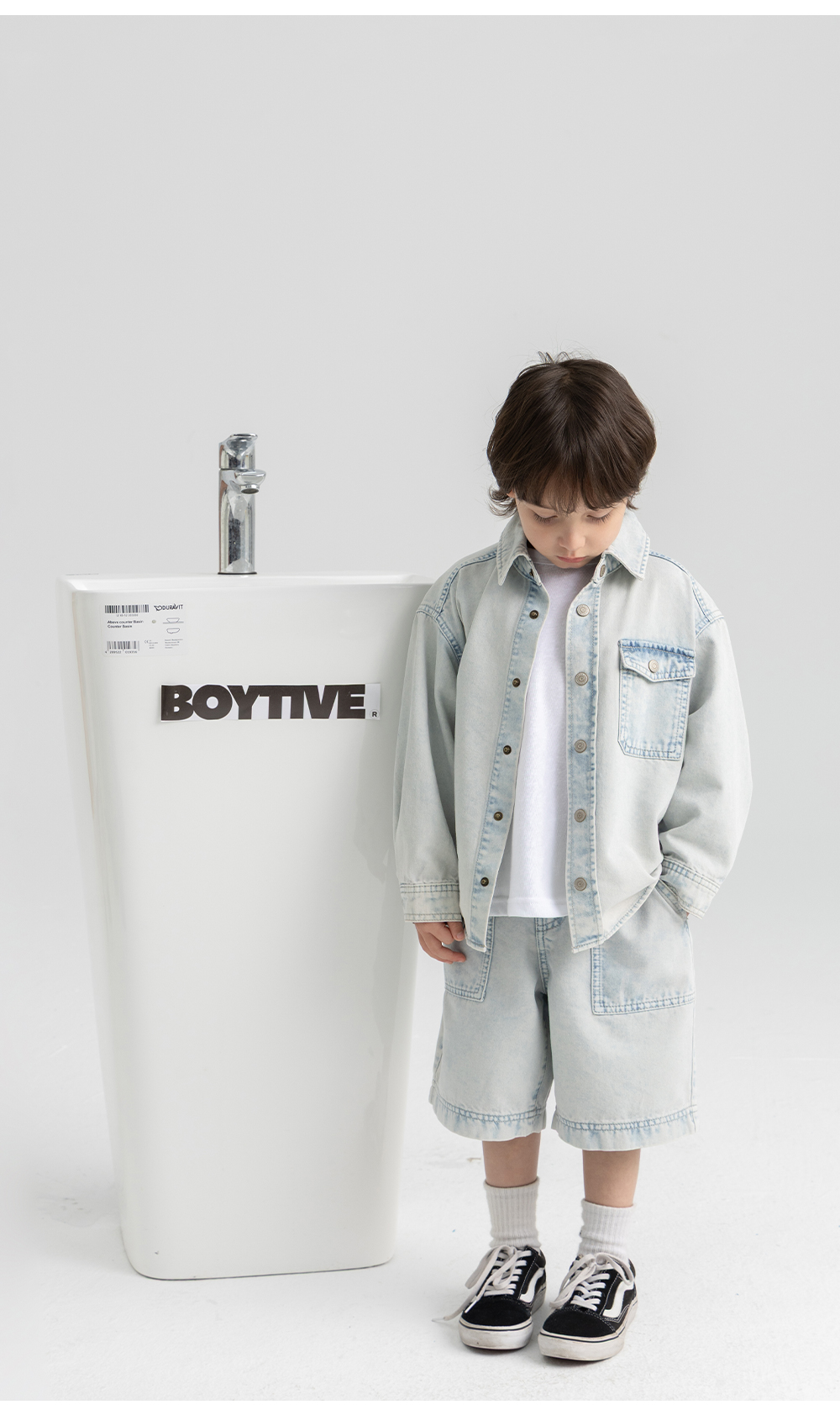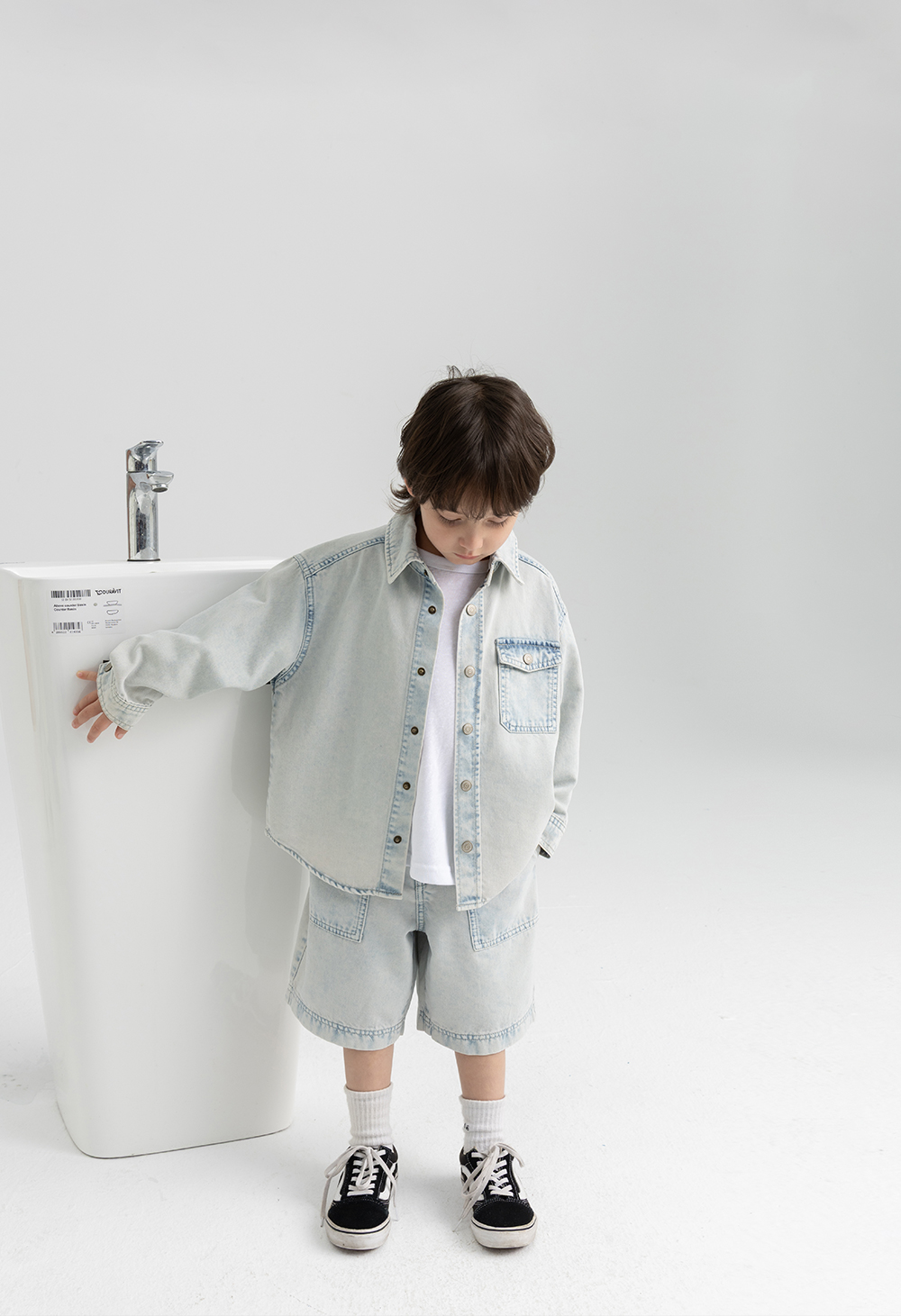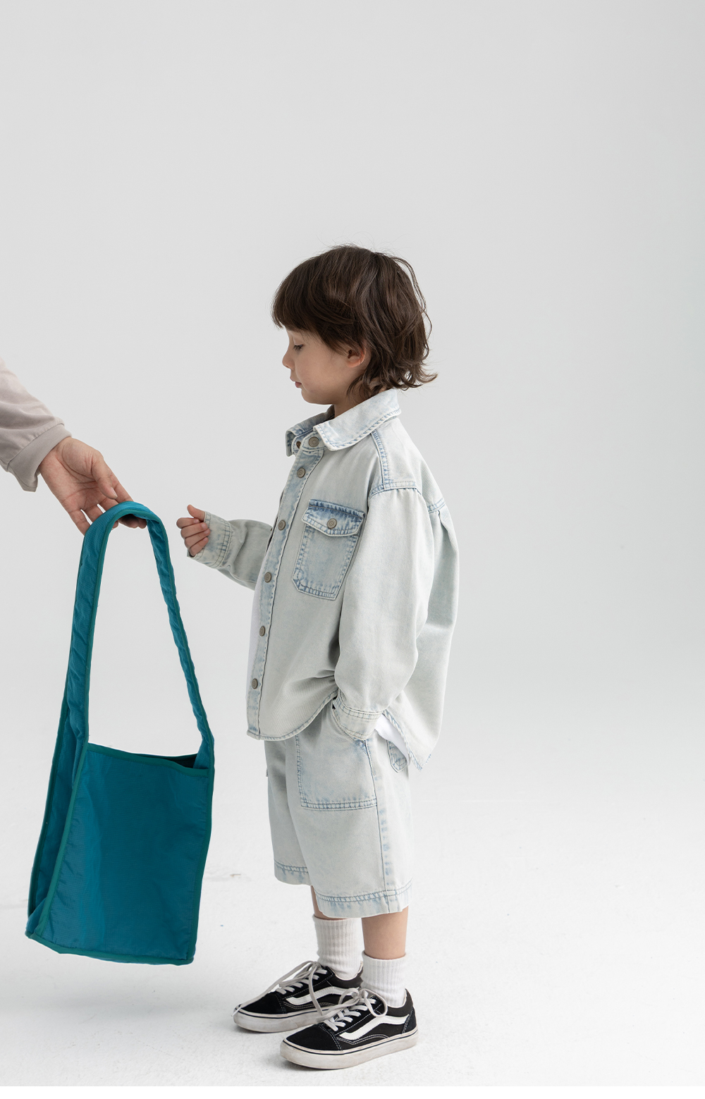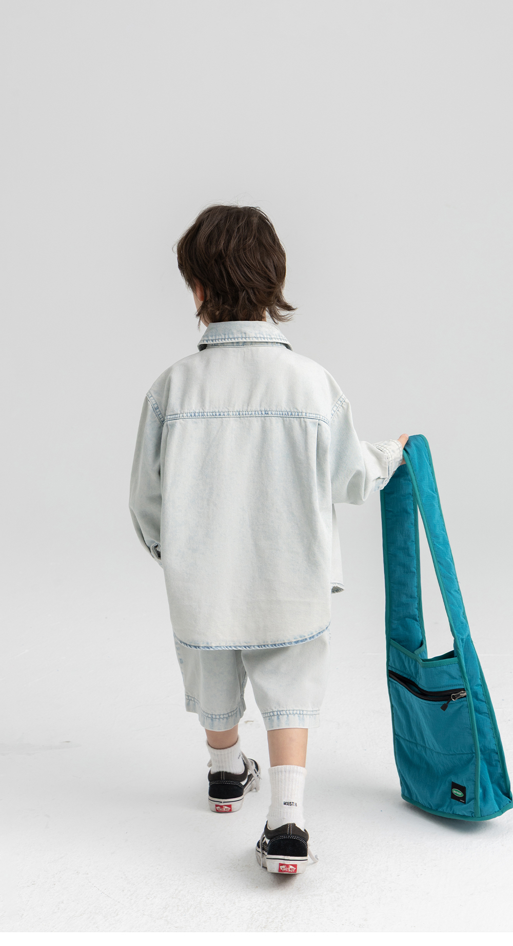 데님 자켓과 하프팬츠 구성의 상하셋업입니다.