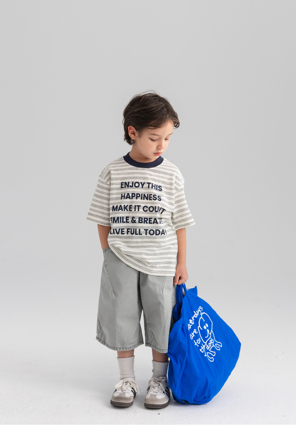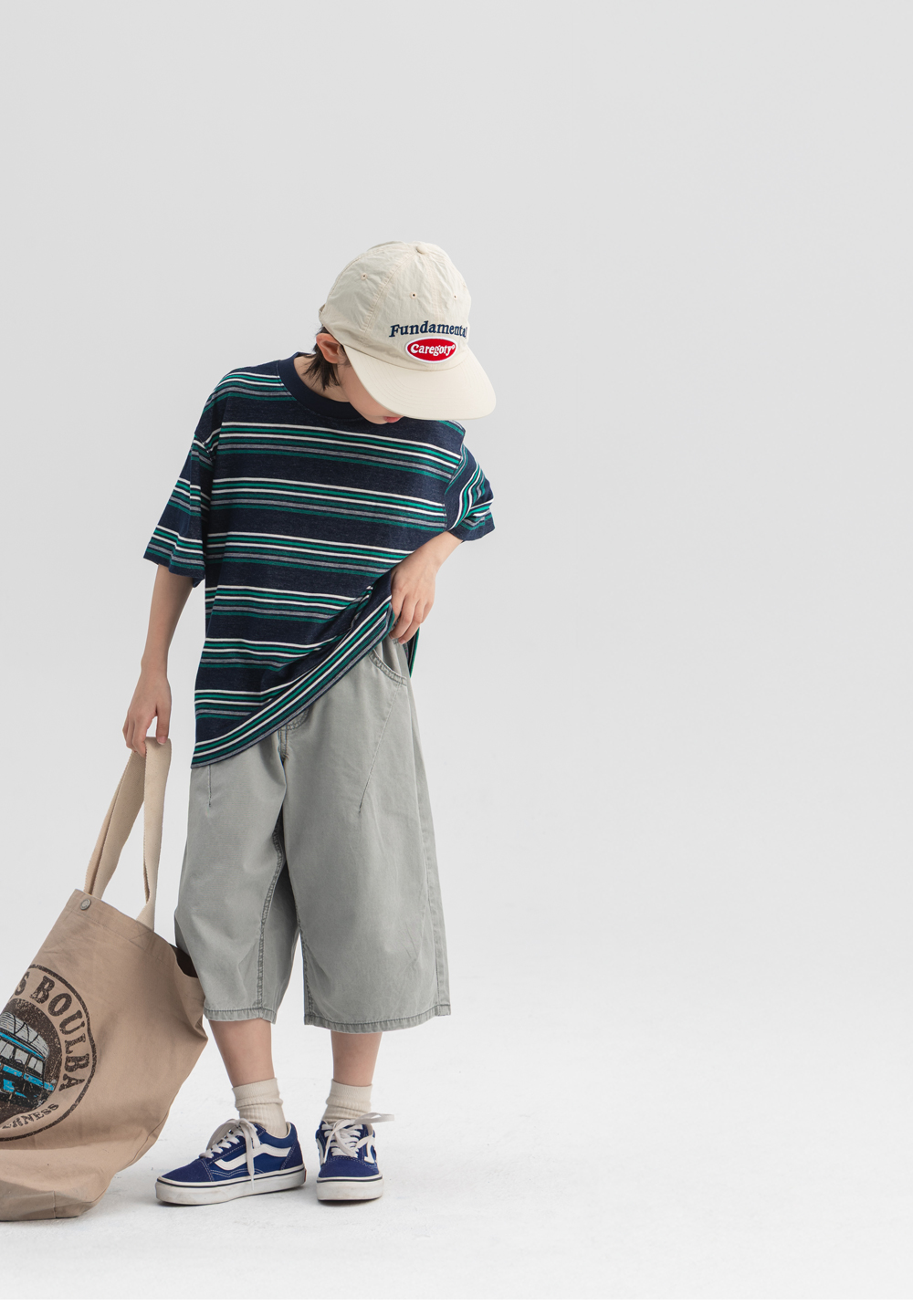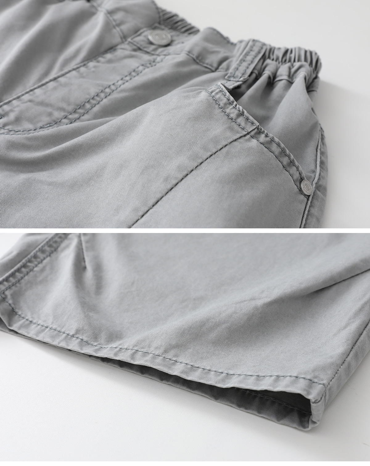 가볍고 부드러운 워싱원단을 사용한 버뮤다 팬츠입니다. 절개라인이 더해져 실루엣에 자연스러운 포인트를 주었으며 무릎을 덮는 안정적인 기장감으로 활동성이 뛰어납니다. 어디에나 잘 어우러지는 톤 다운된 컬러감의 데일리 팬츠입니다.