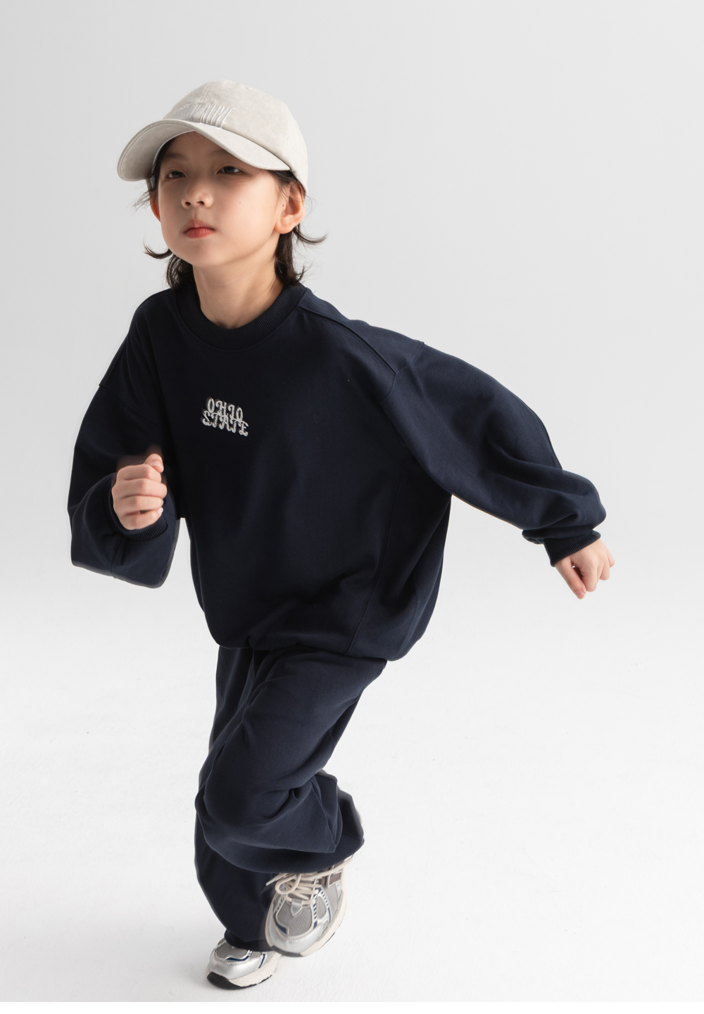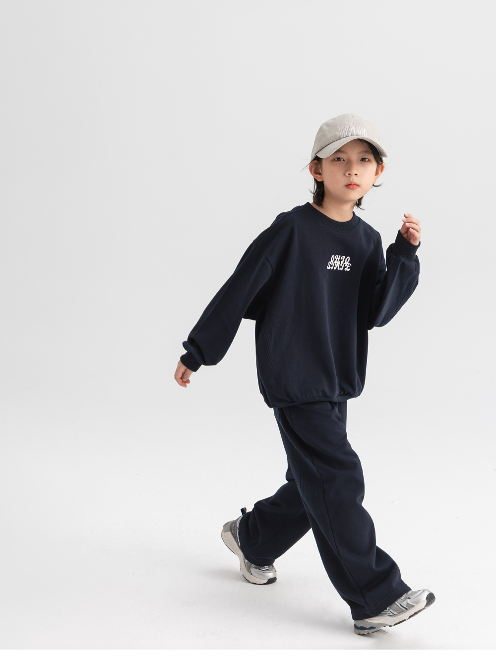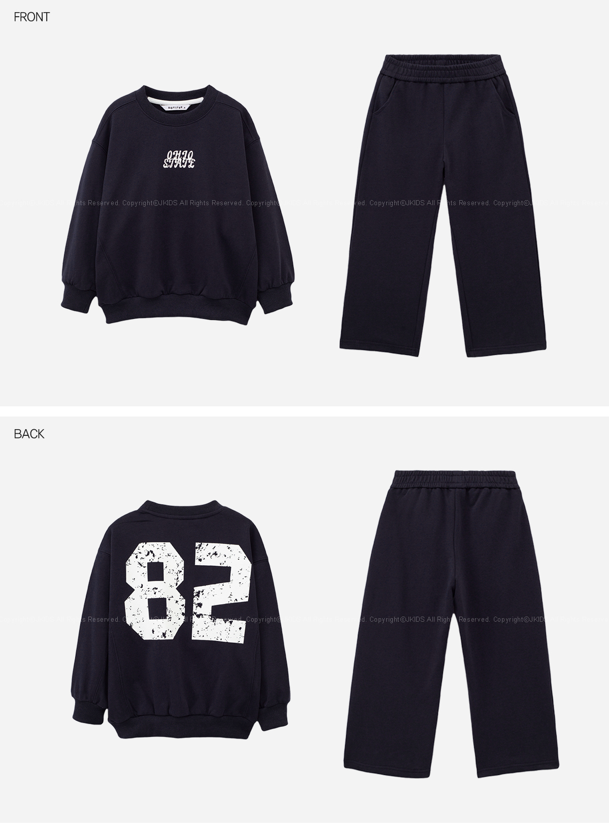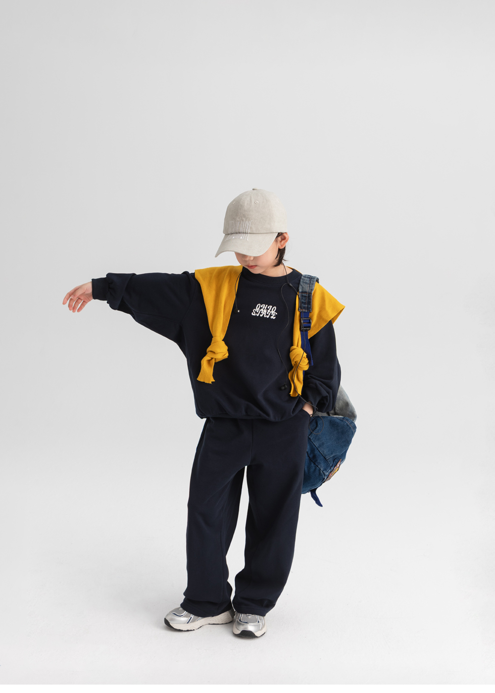 캐주얼한 분위기의 맨투맨 상하 세트입니다.