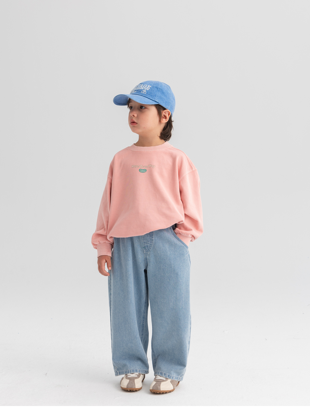 부드럽게 워싱된 컬러와 여유로운 실루엣의 데님 팬츠입니다.
