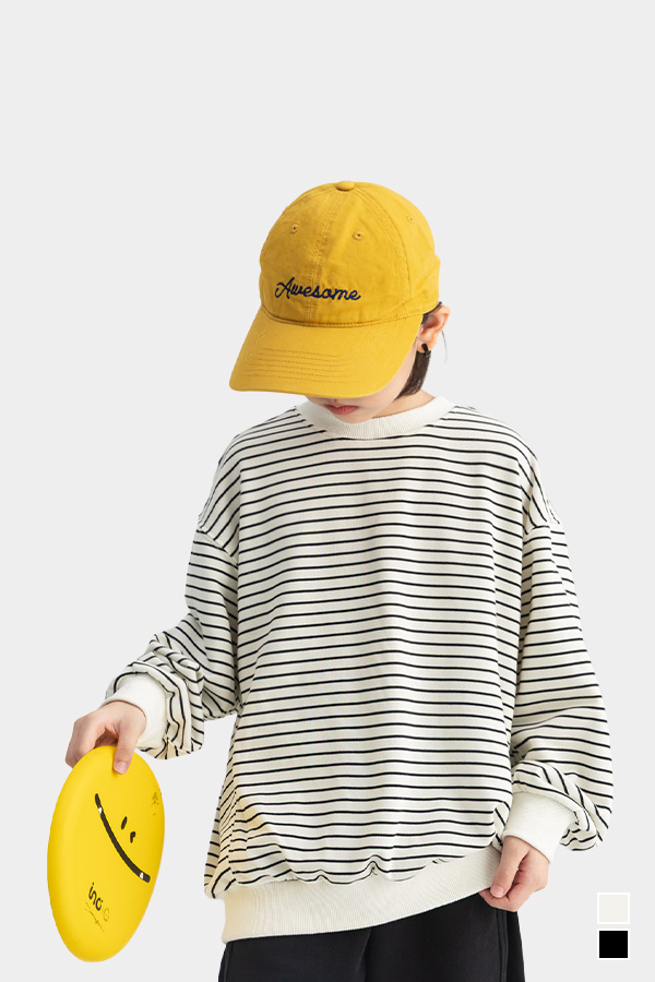 감각적인 스트라이프 패턴을 사용해 트랜디한 맨투맨입니다.