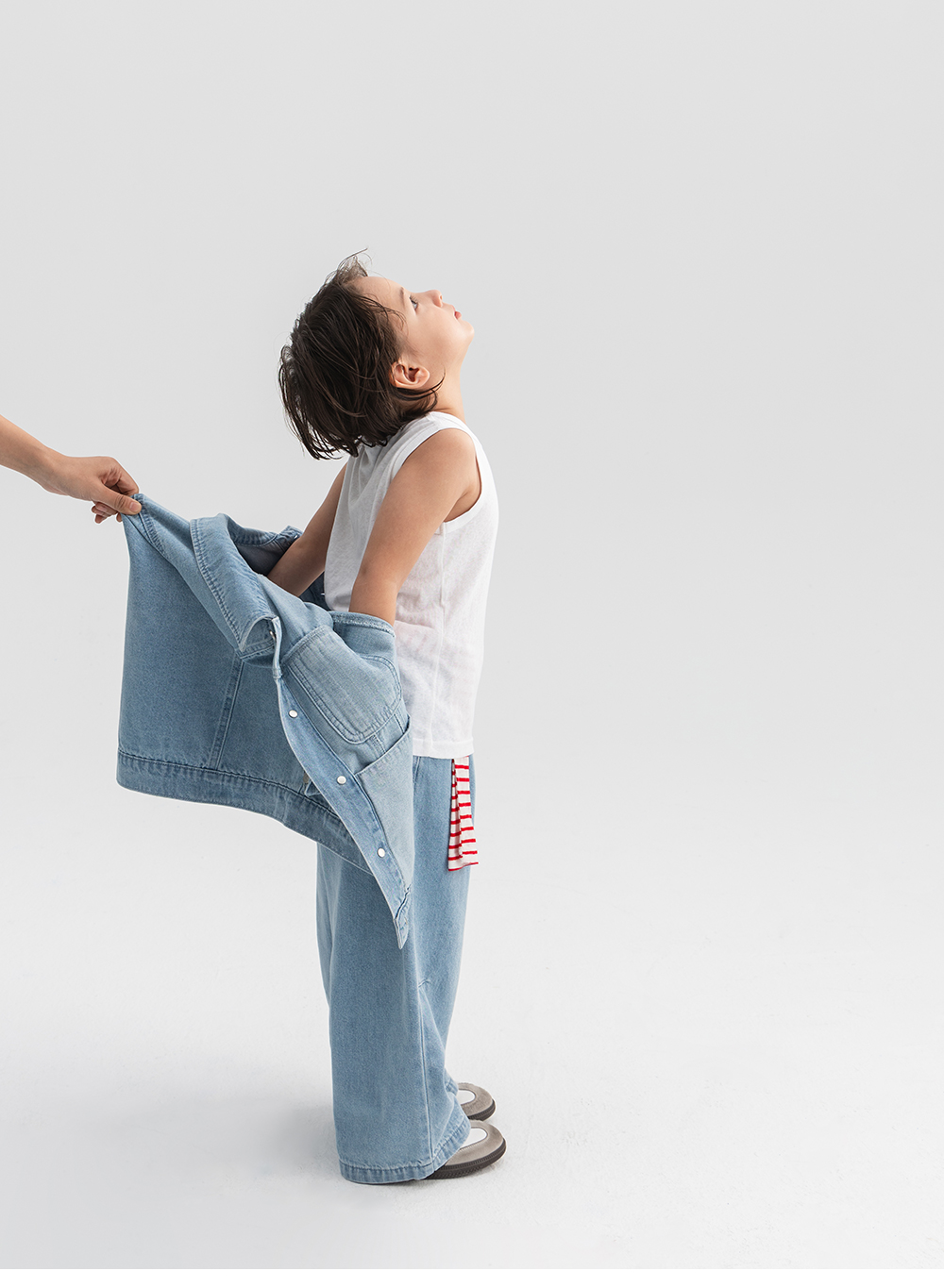 가볍고 부드러운 워싱 데님으로 완성한 상하 세트입니다.