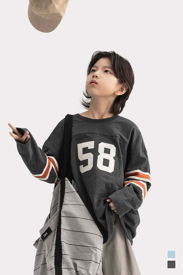 소매의 배색 스트라이프가 레트로한 무드를 더해주는 티셔츠입니다.
