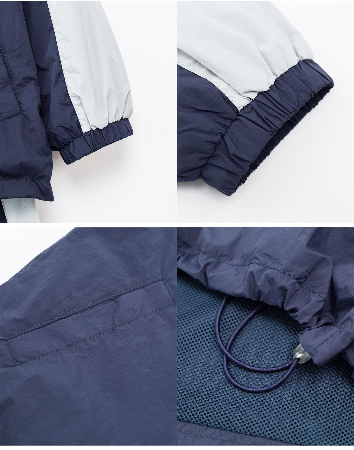 후드와 밑단 스트링, 소매 밴딩으로 실용적인 디테일을 더했고,