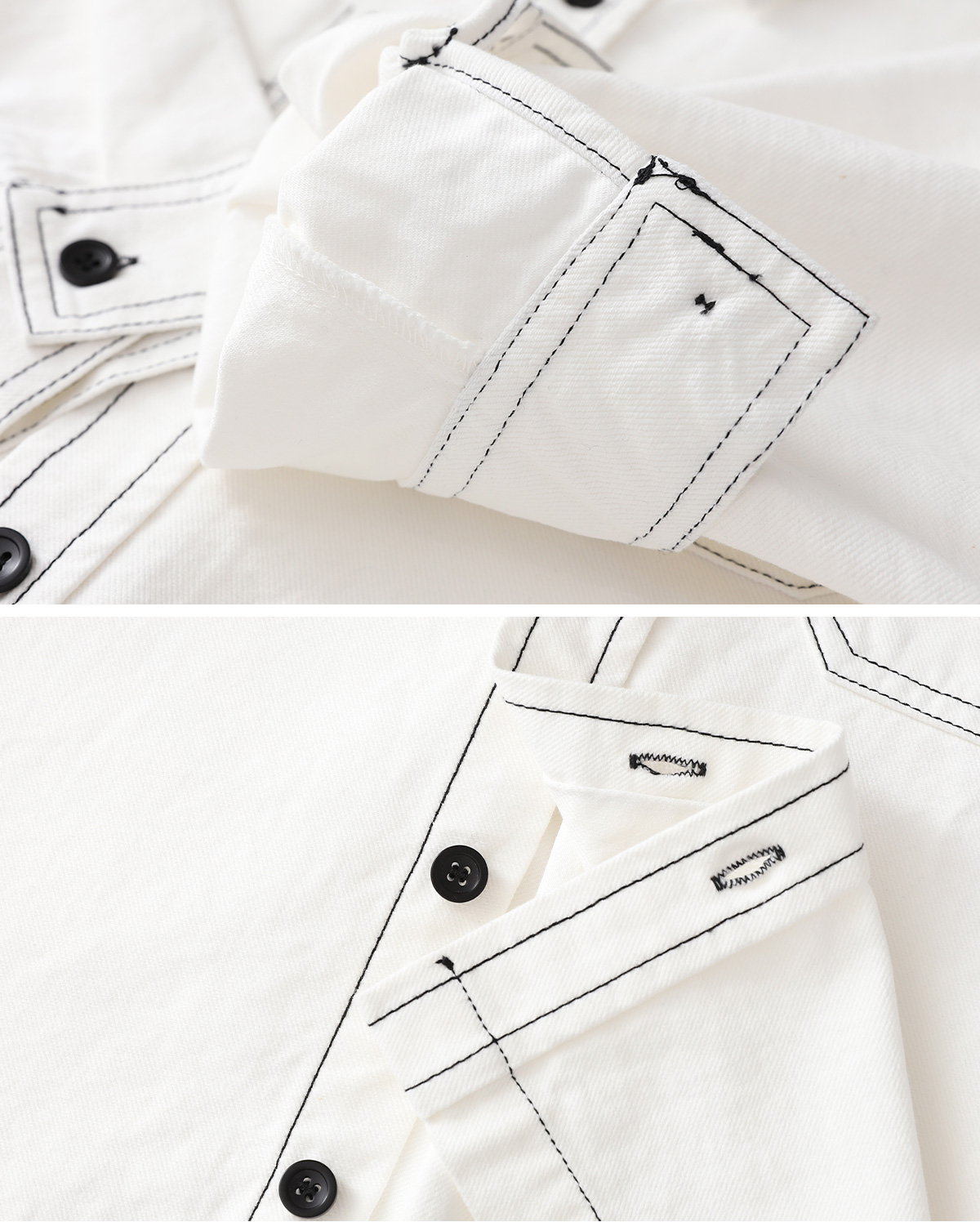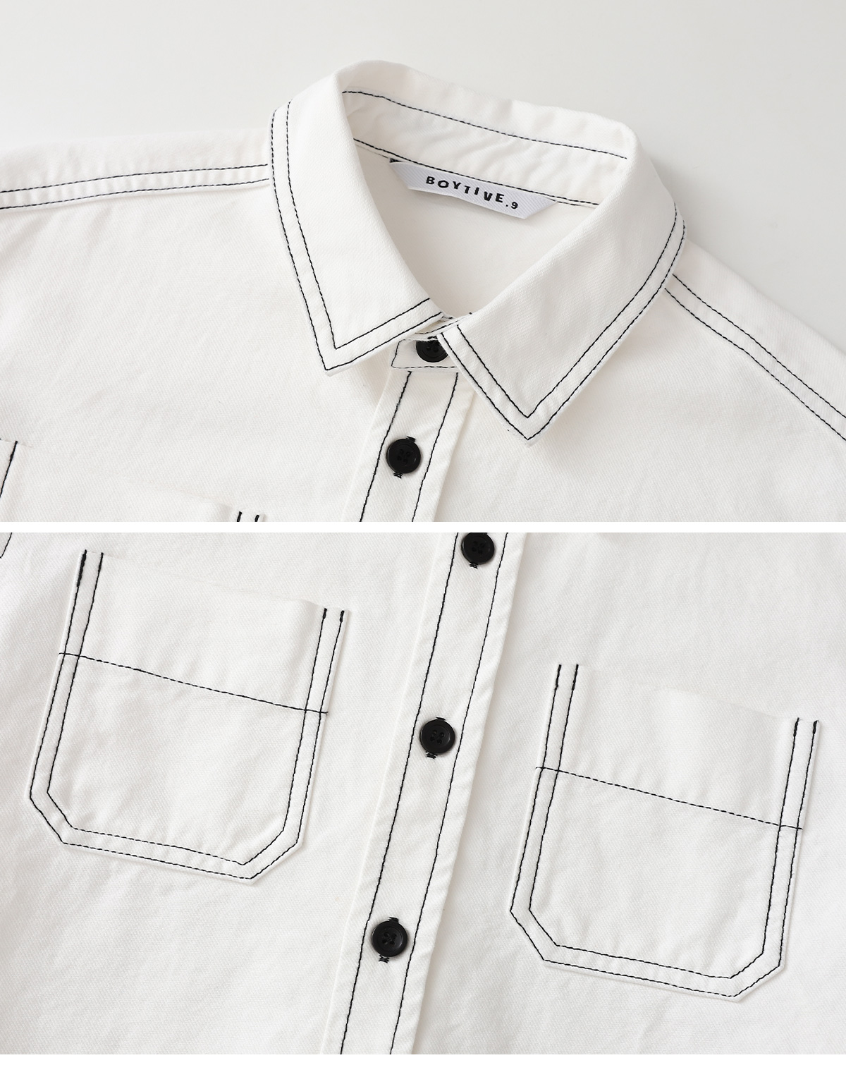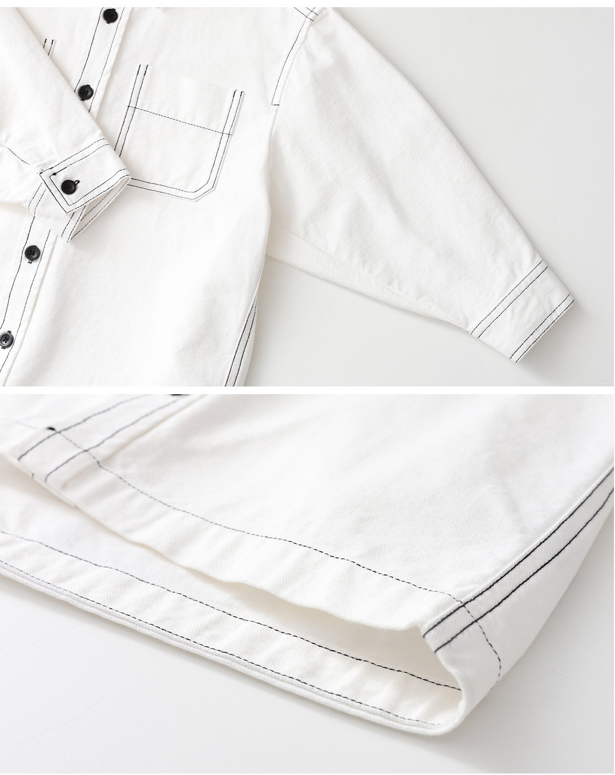 탄탄한 코튼에 배색 스티치로 라인을 살린 셔츠형 자켓이에요.