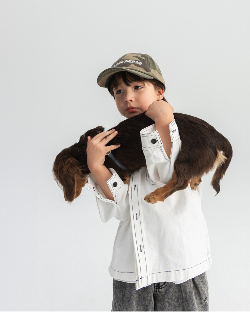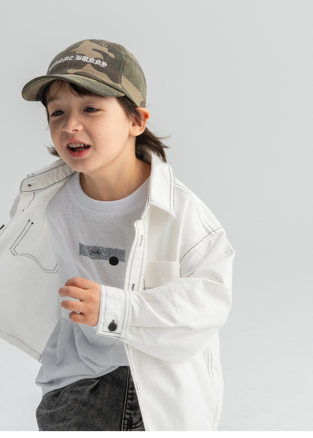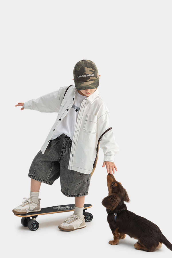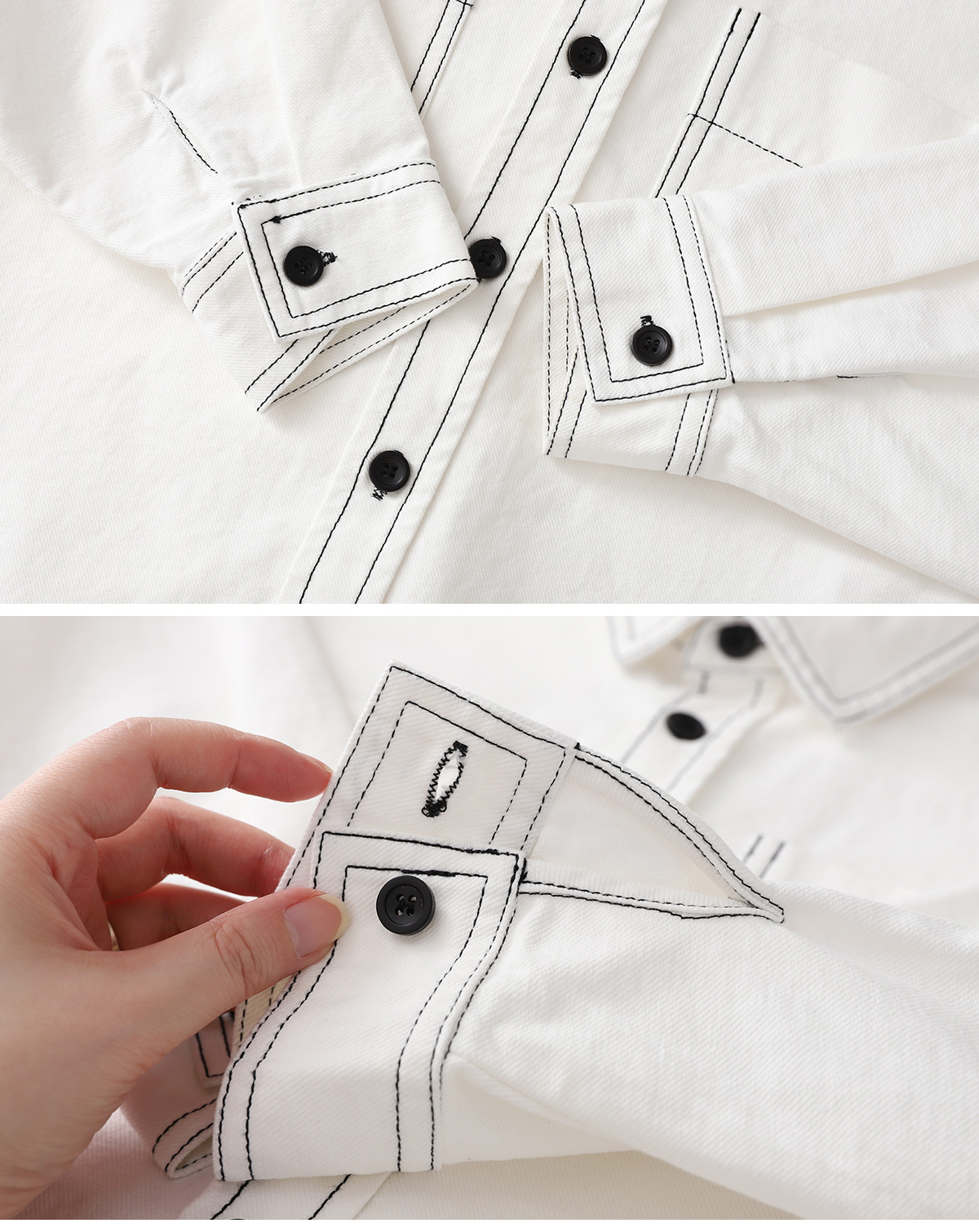 탄탄한 코튼에 배색 스티치로 라인을 살린 셔츠형 자켓이에요.