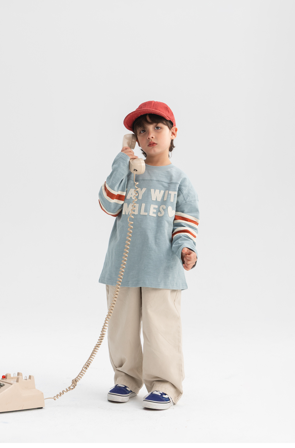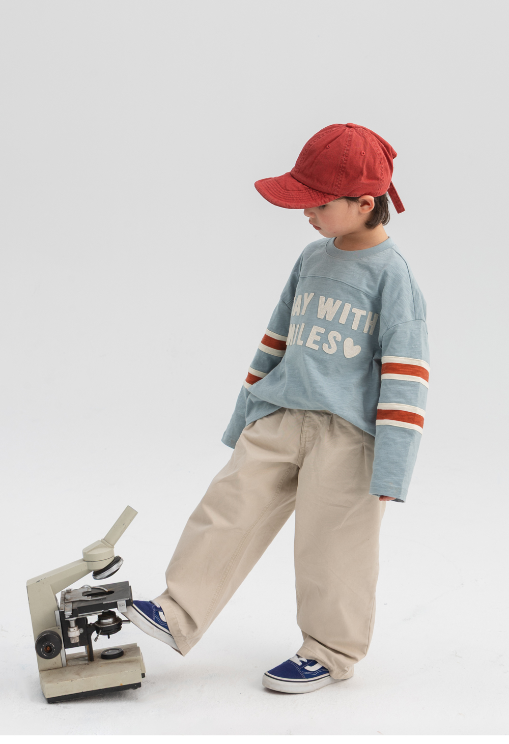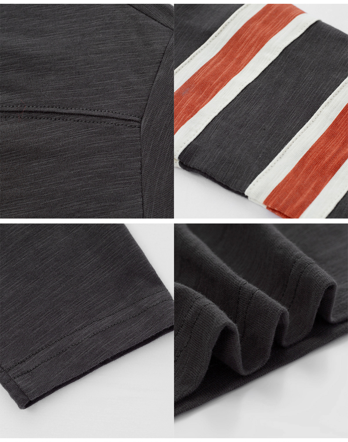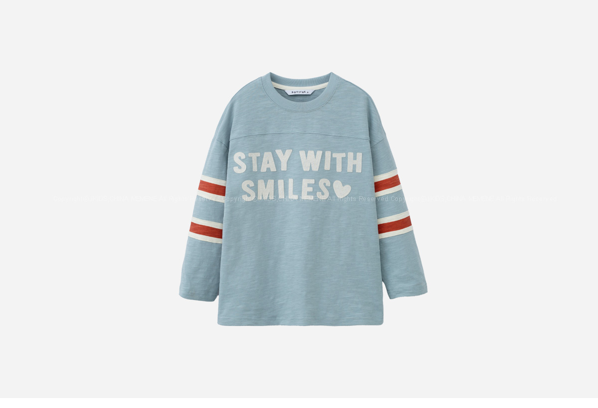 소매의 배색 스트라이프가 레트로한 무드를 더해주는 티셔츠입니다.
