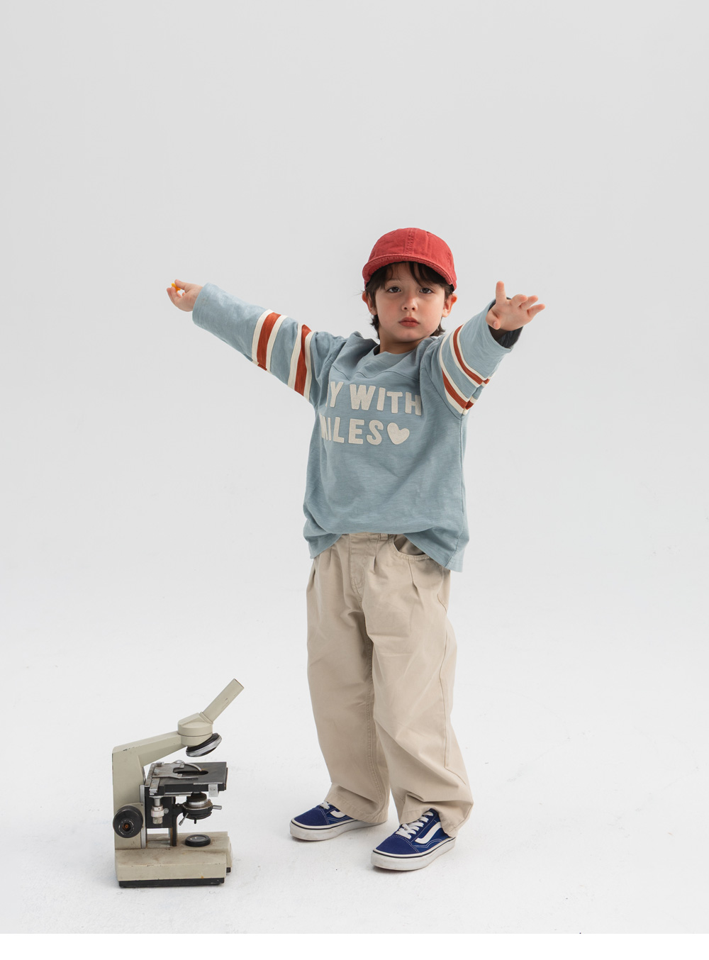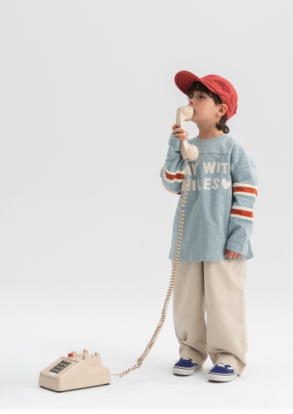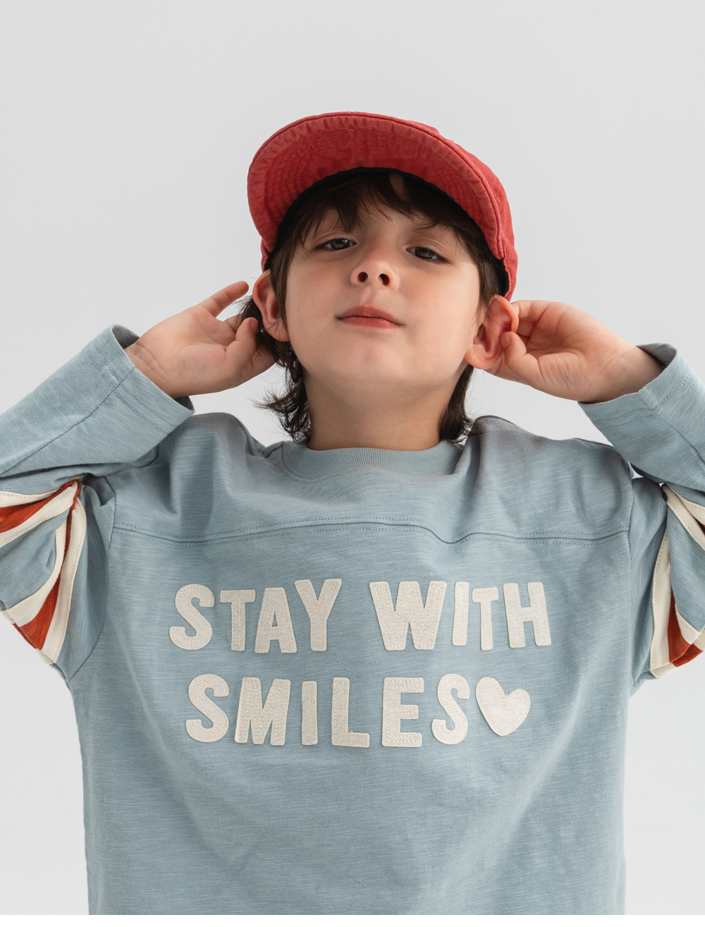 소매의 배색 스트라이프가 레트로한 무드를 더해주는 티셔츠입니다.