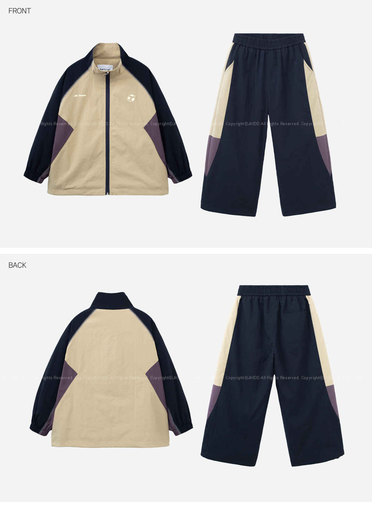 활동적인 하루를 위한 가벼운 우븐집업세트입니다.