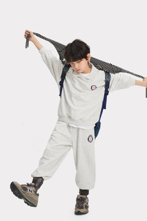 카라 디테일과 심플한 로고가 더해진 상의는 세련된 분위기를 내고,