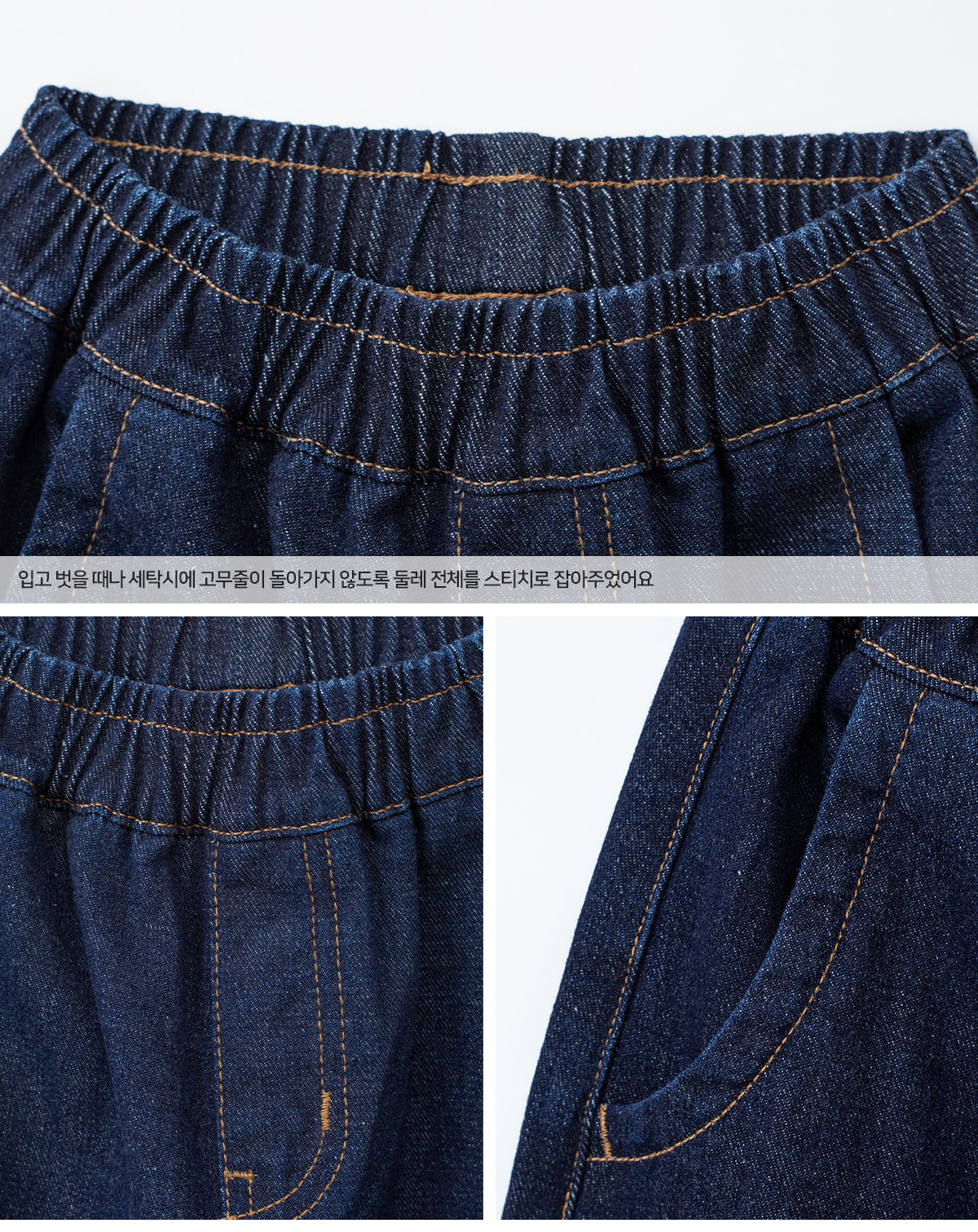 탄탄한 데님 소재에 넉넉한 핏으로 제작되어 편안하면서도