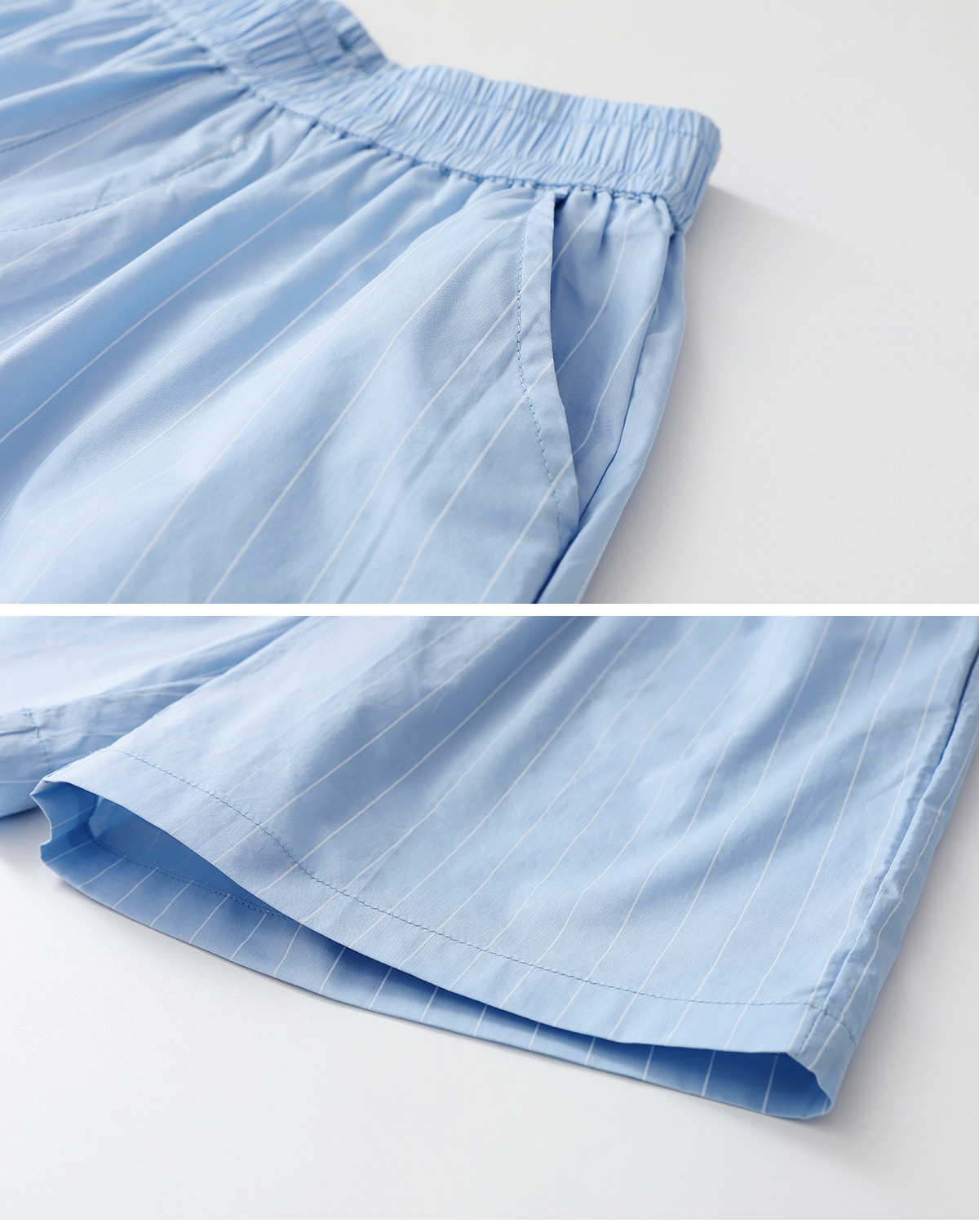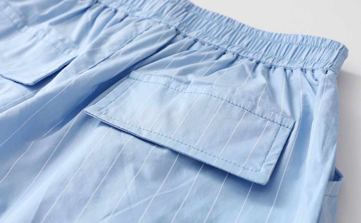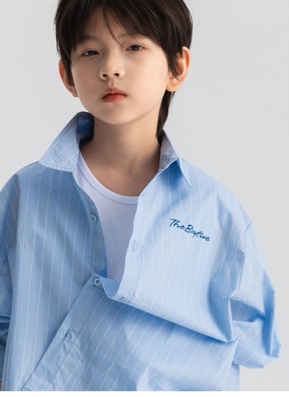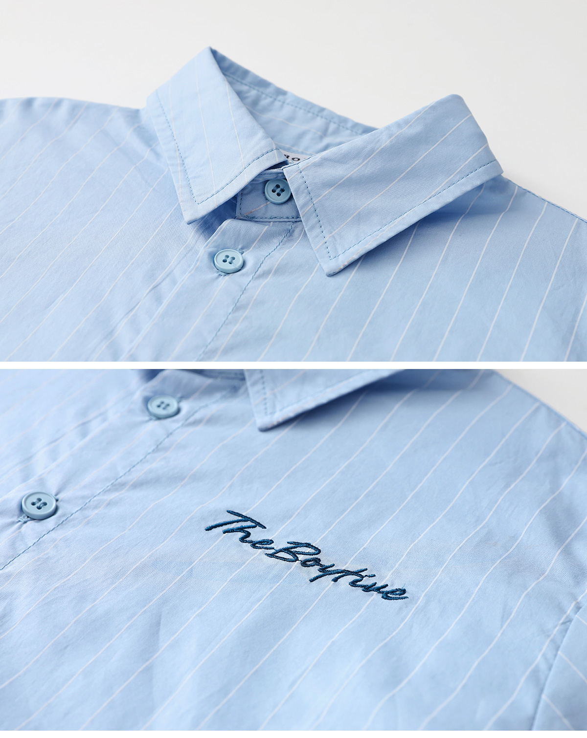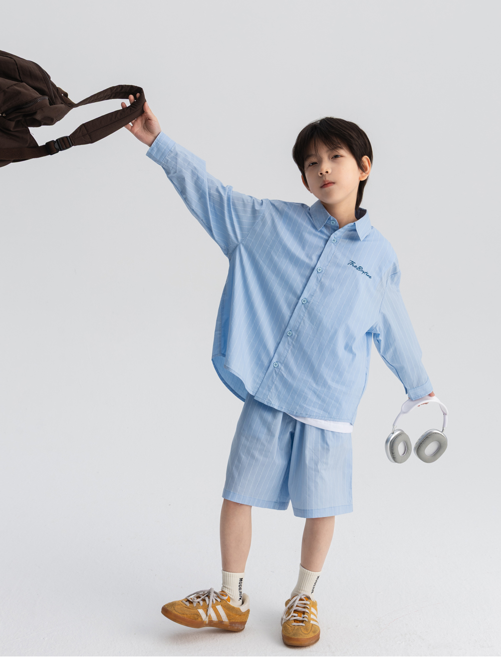 가느다란 스트라이프 결이 더해진 셔츠 세트입니다.
