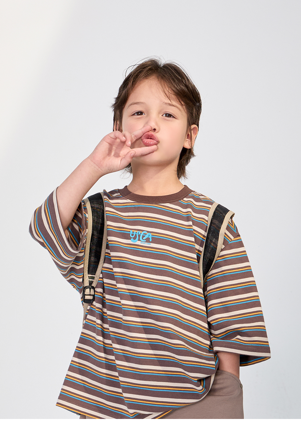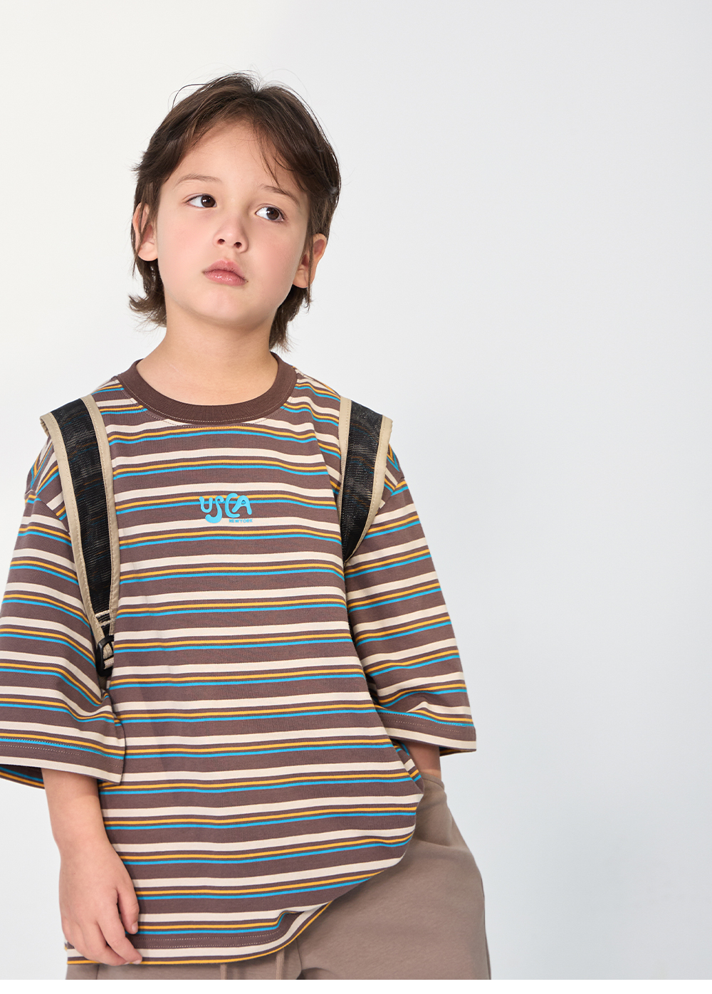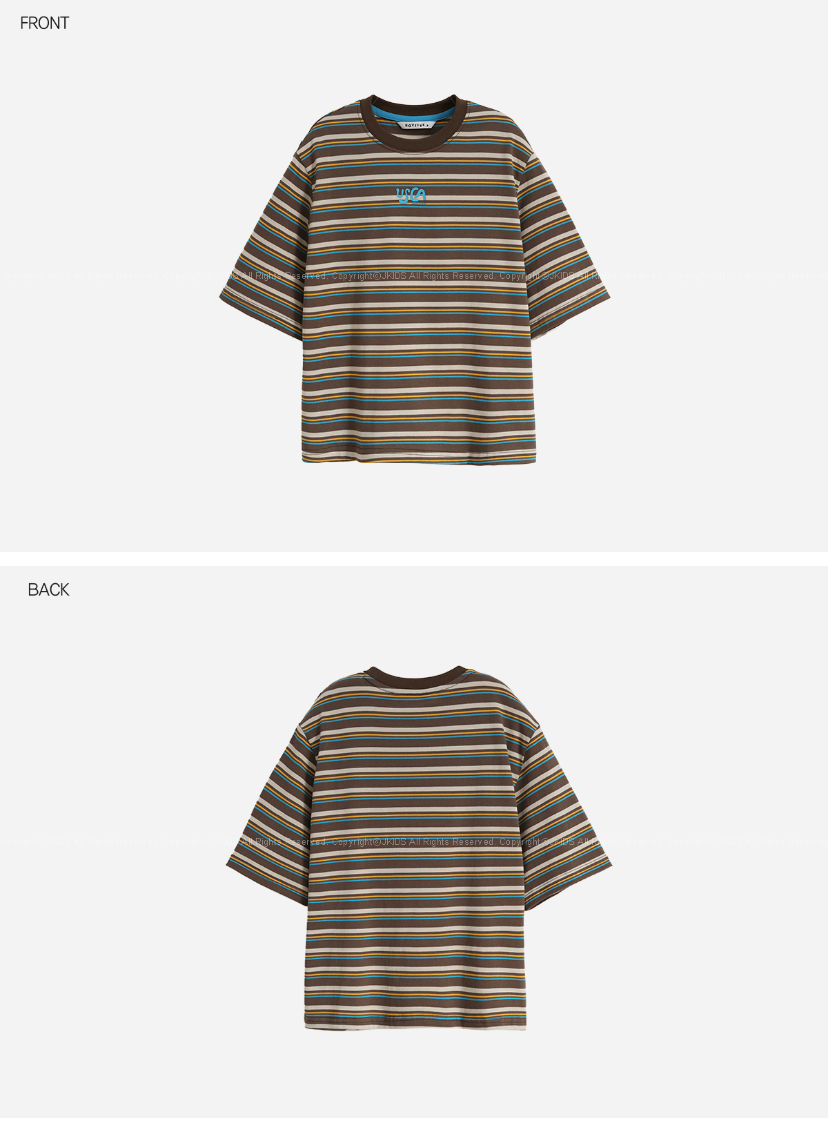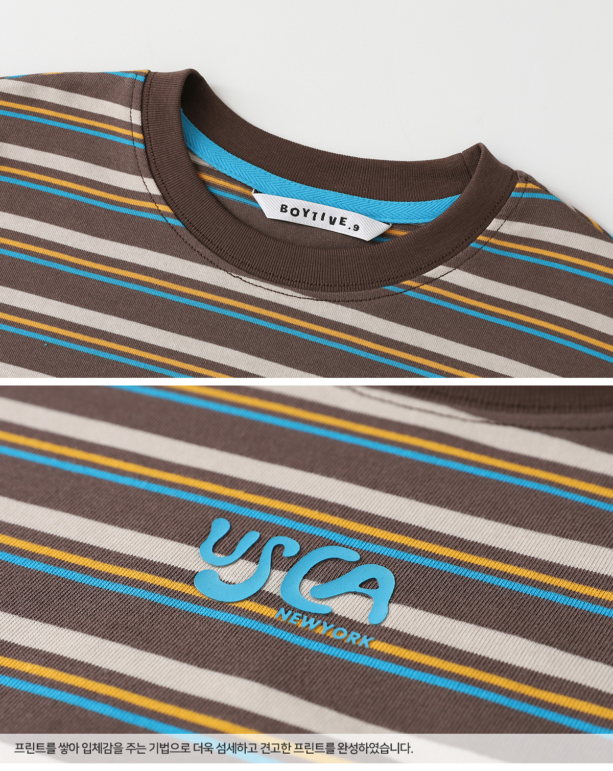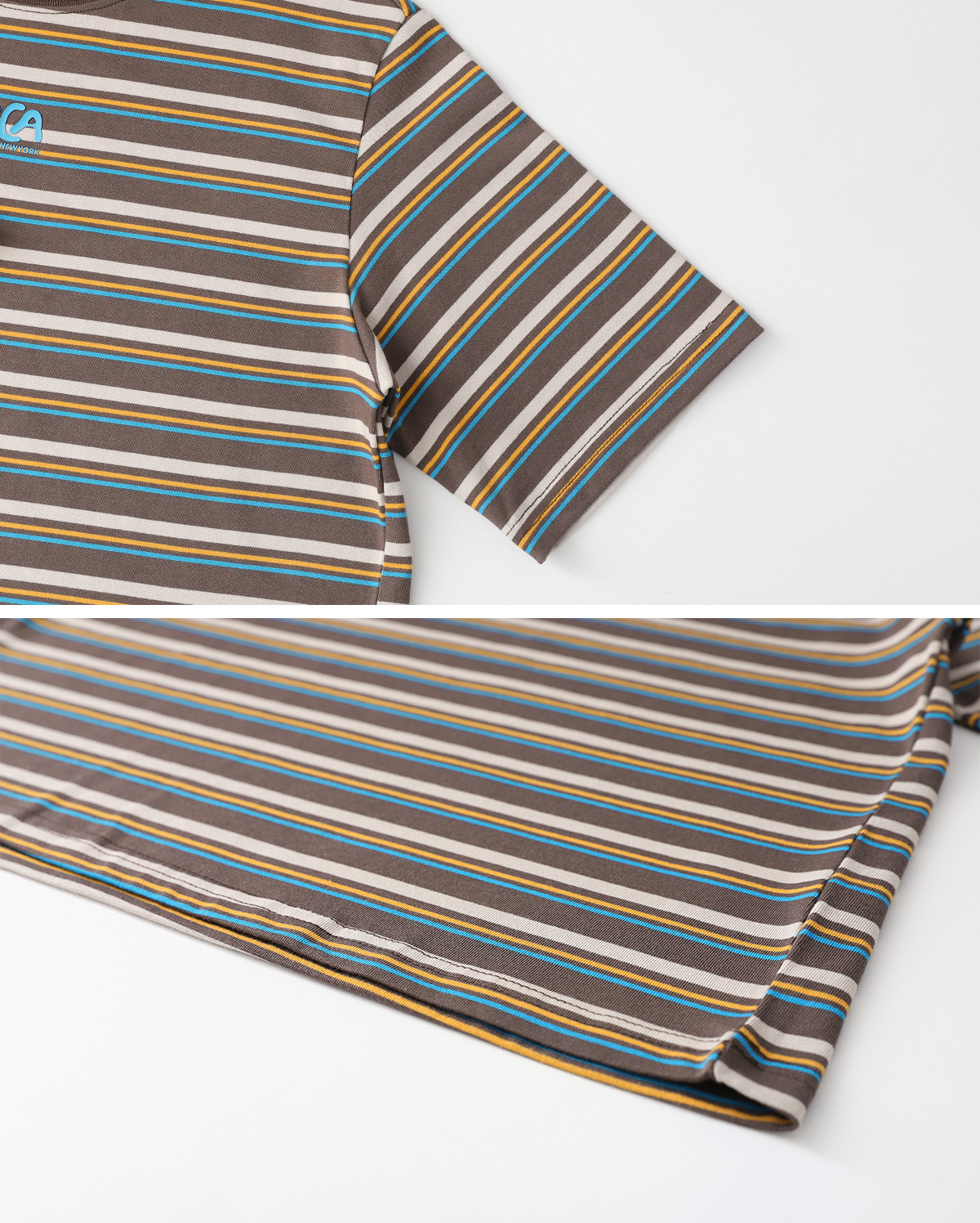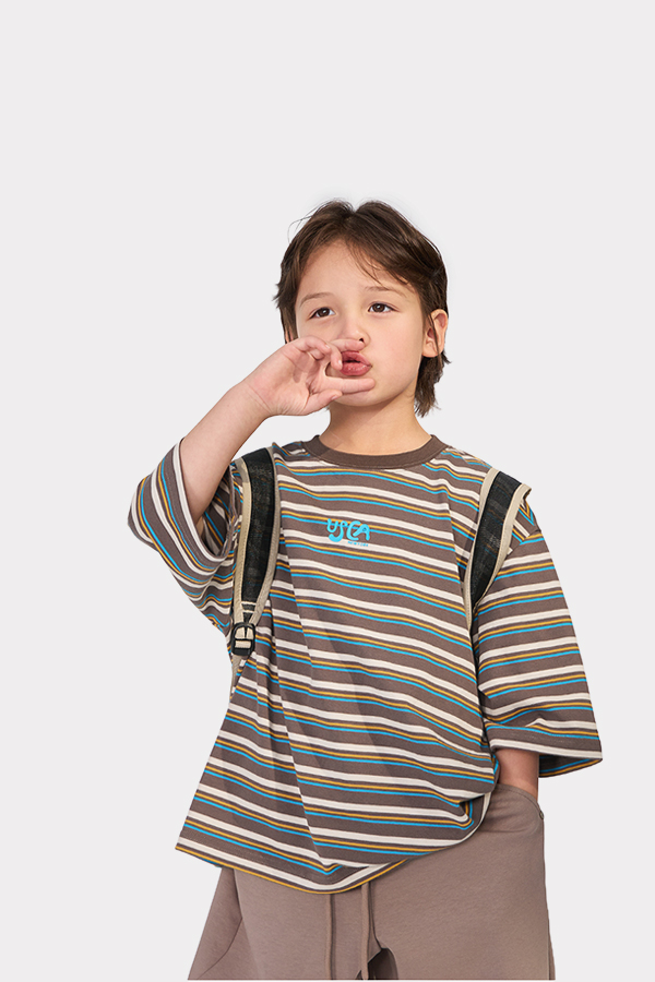 경쾌한 스트라이프 패턴에 입체감있는 포인트를 더한 티셔츠입니다.