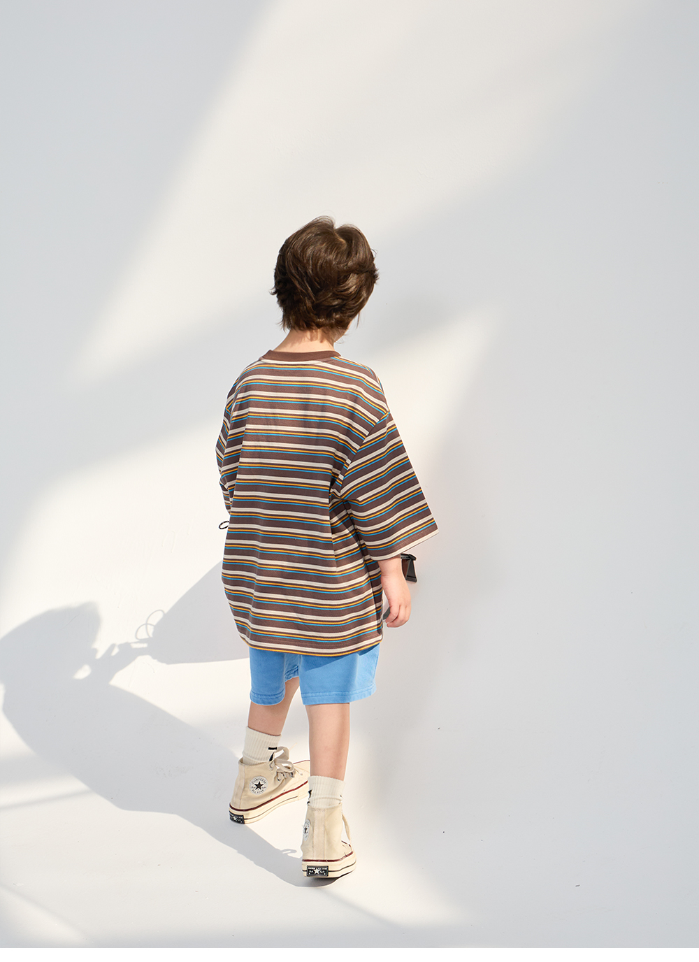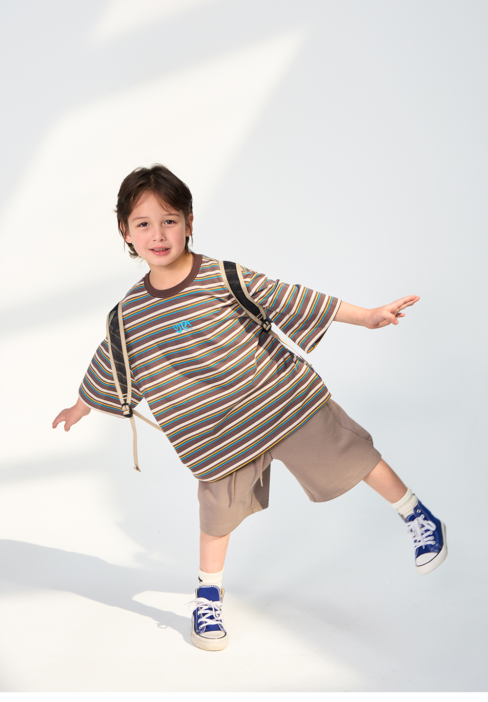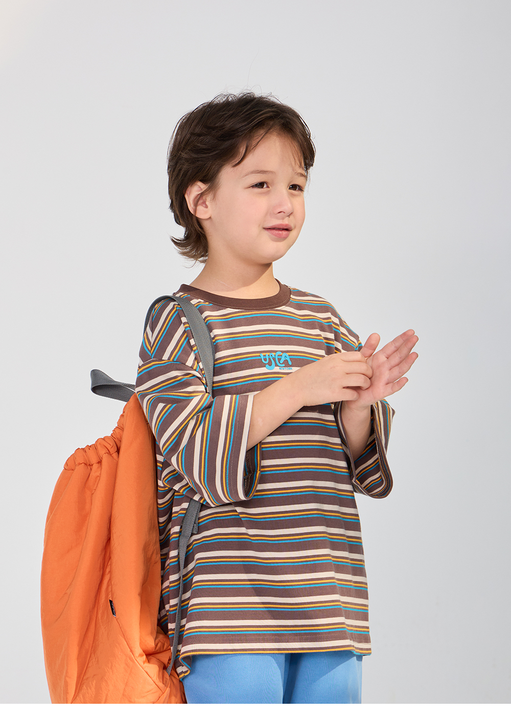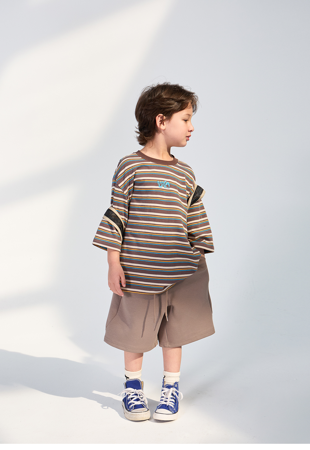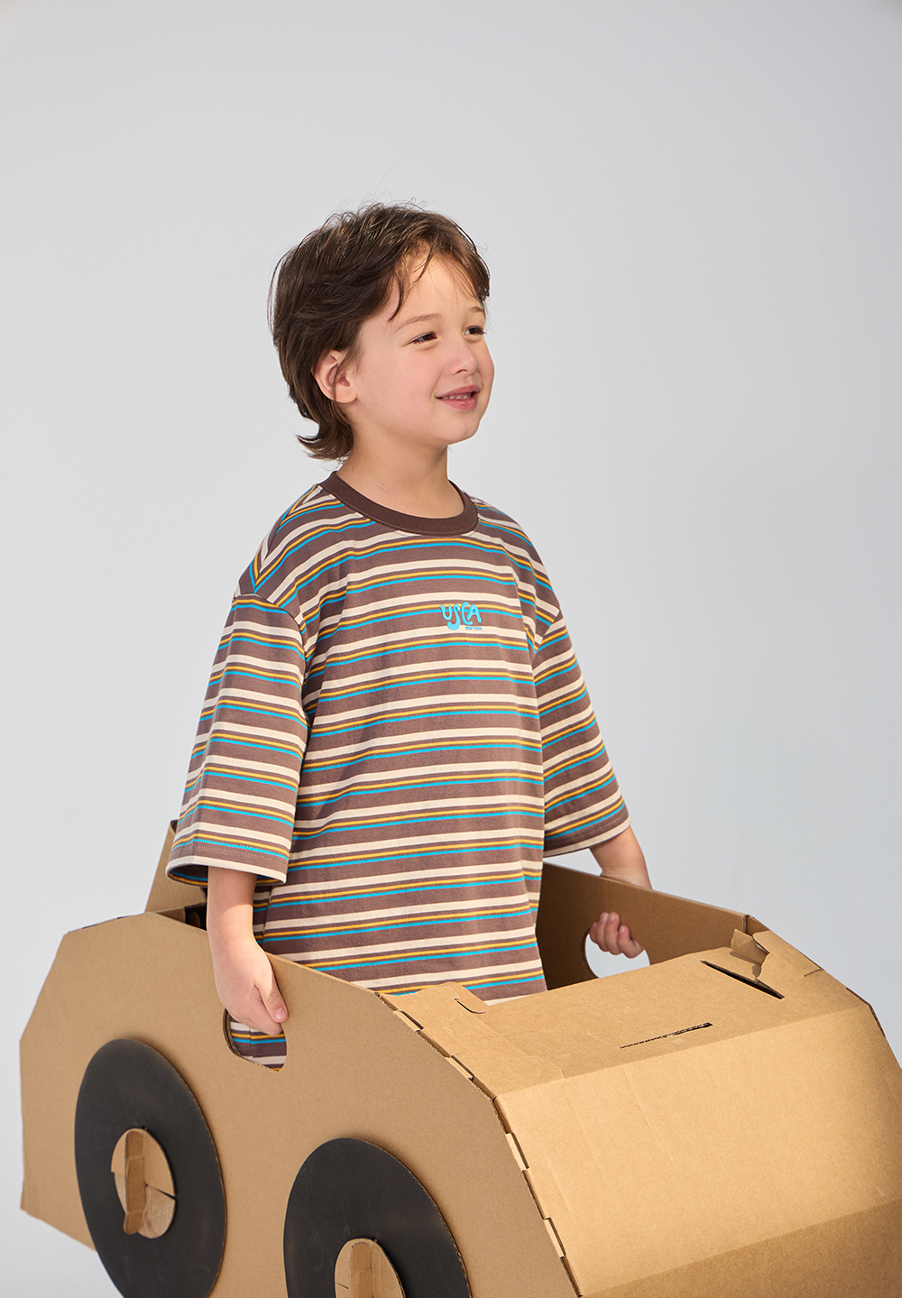 경쾌한 스트라이프 패턴에 입체감있는 포인트를 더한 티셔츠입니다.