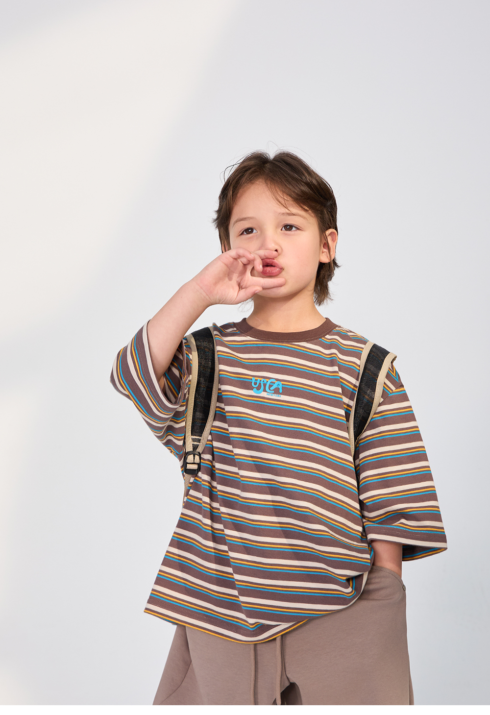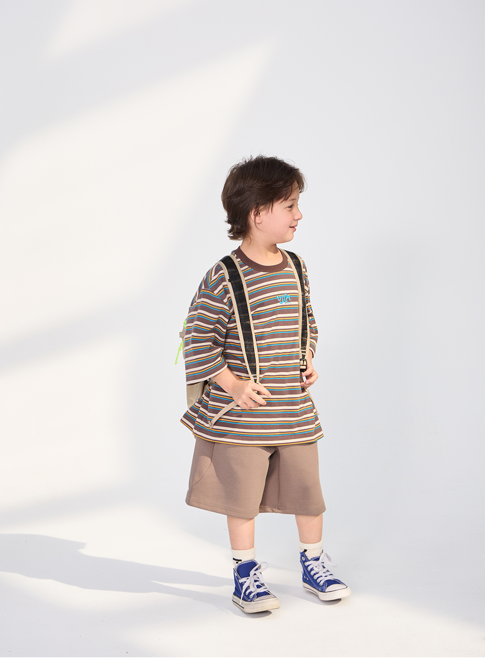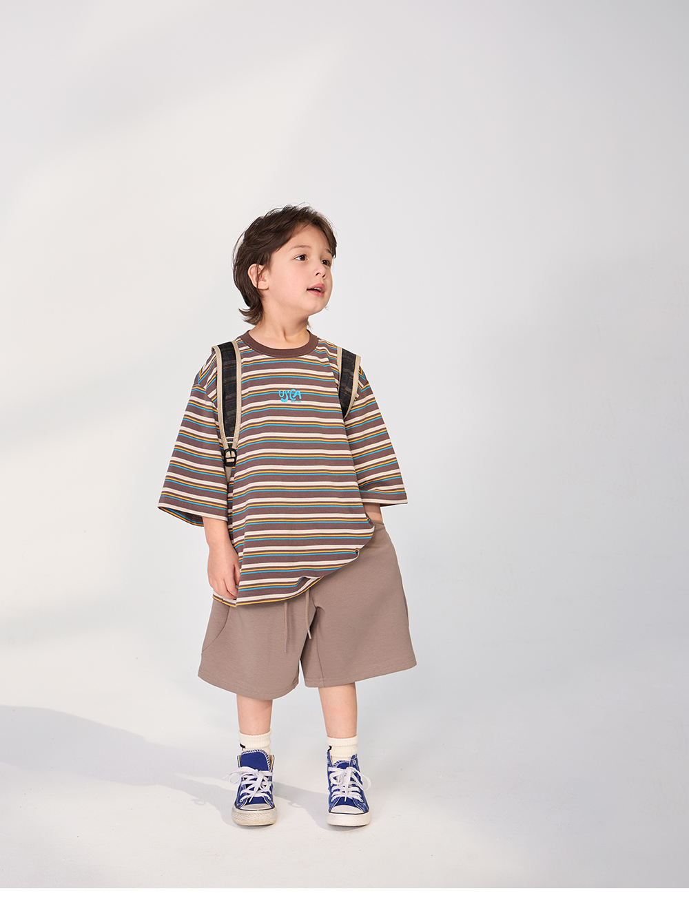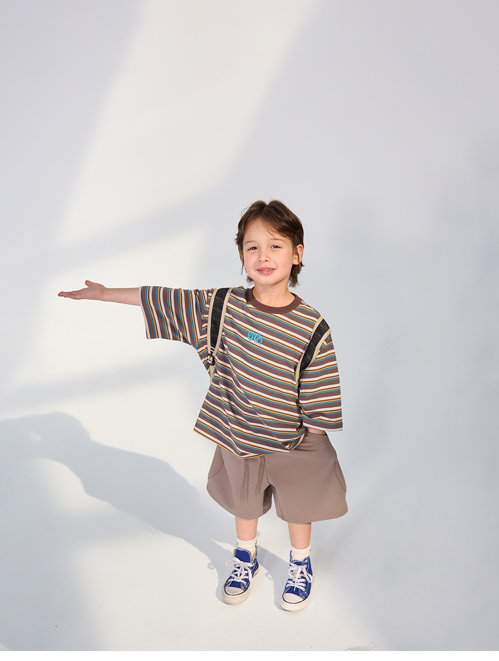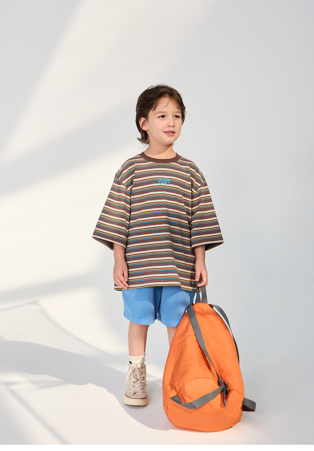 경쾌한 스트라이프 패턴에 입체감있는 포인트를 더한 티셔츠입니다.